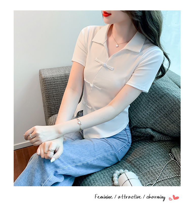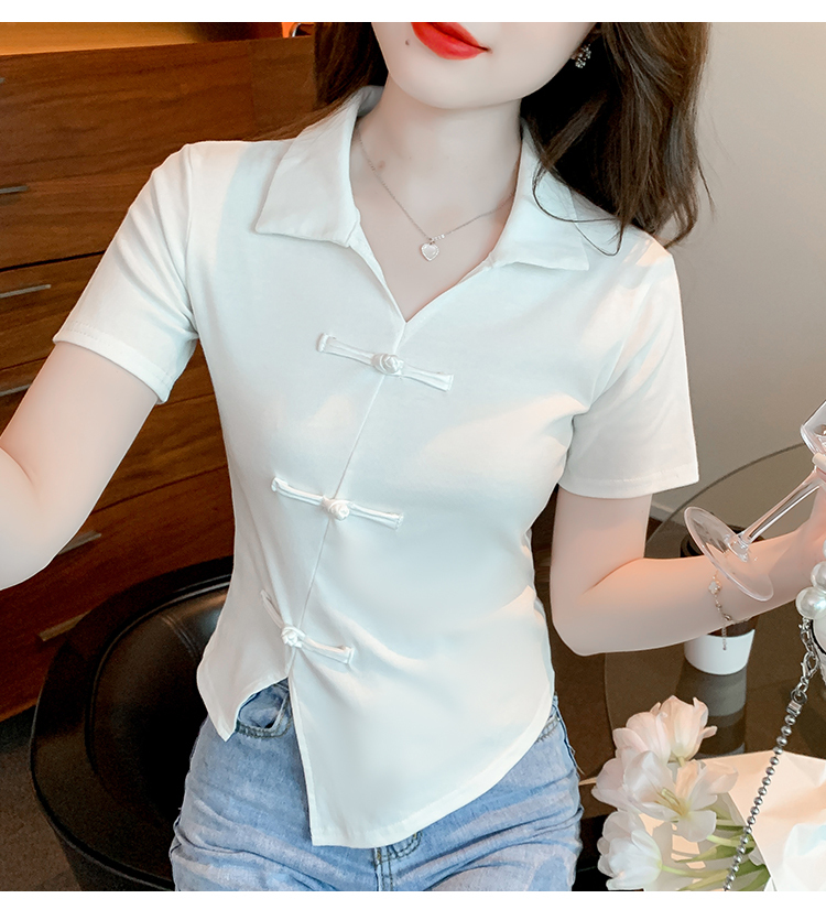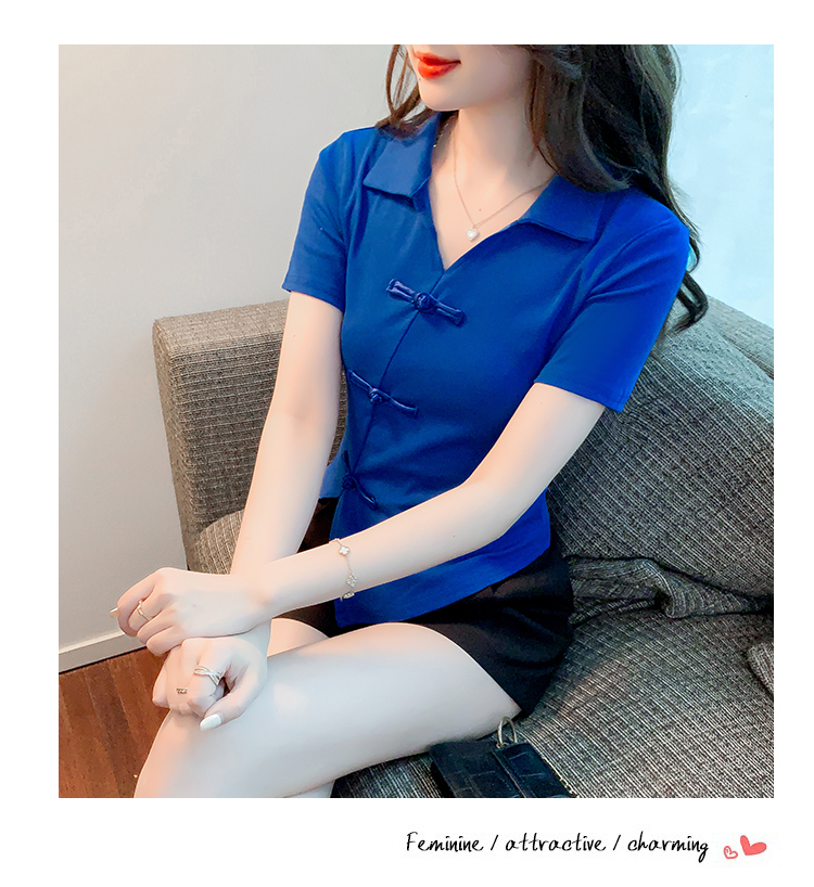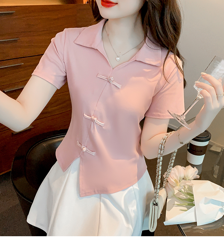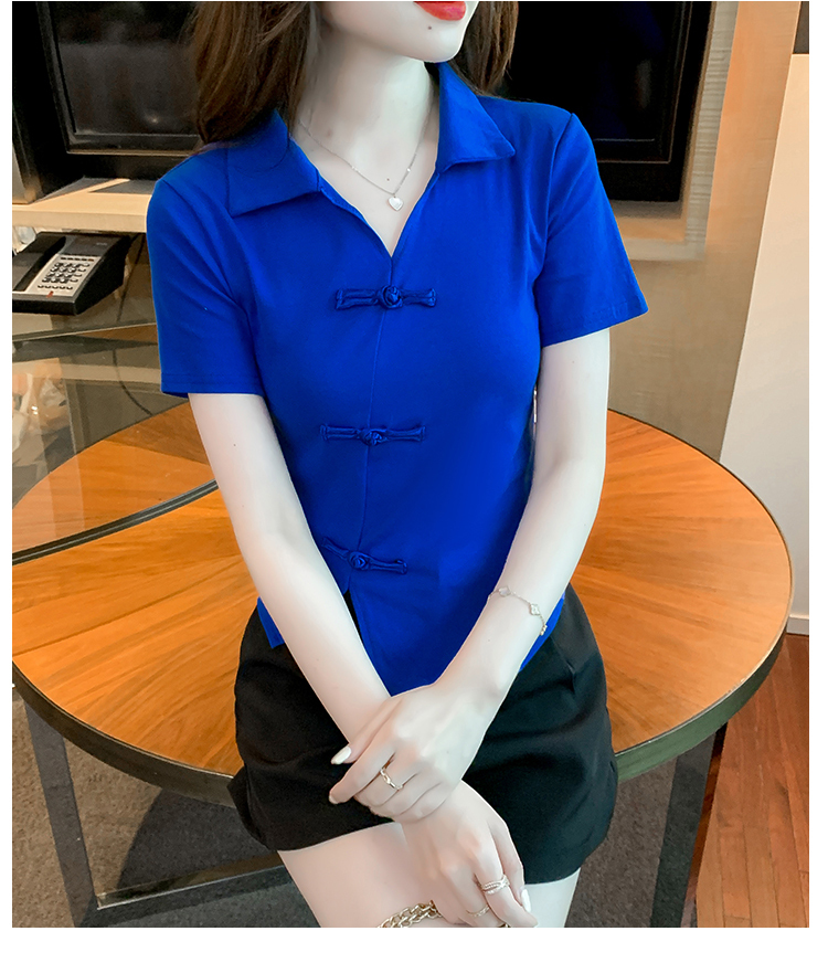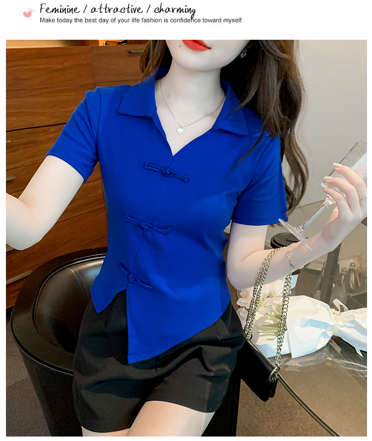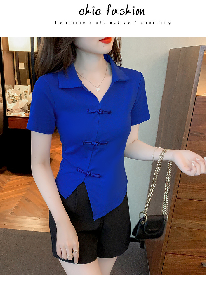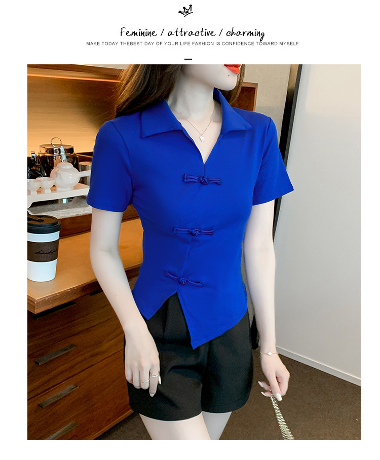 限量特惠|舒適盤釦造型不規則V領T恤-3色(03H3118)