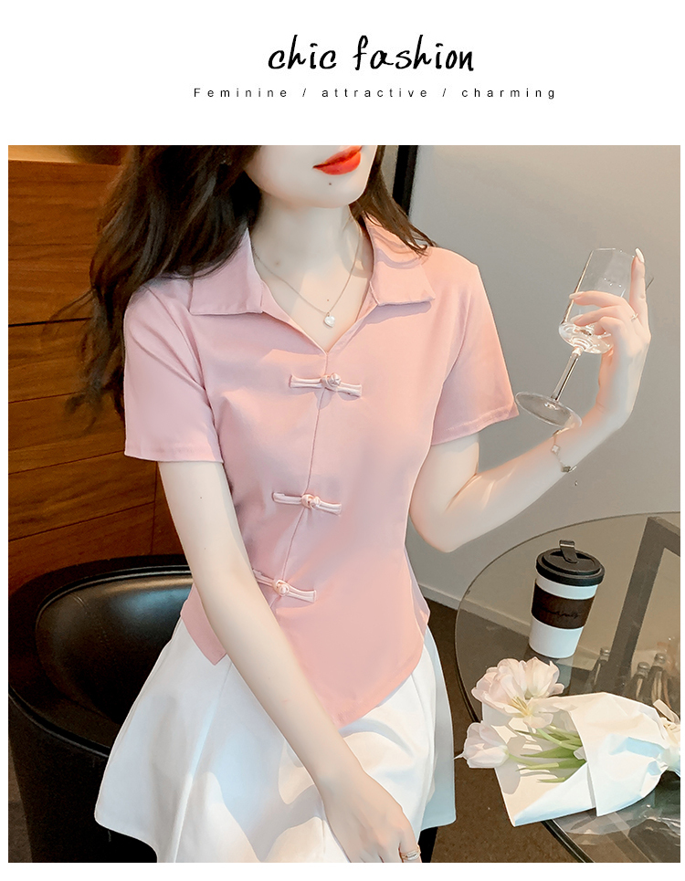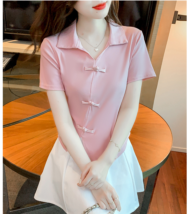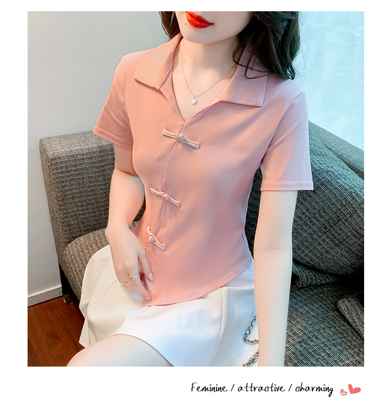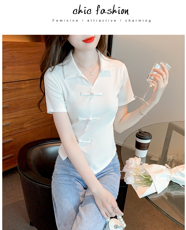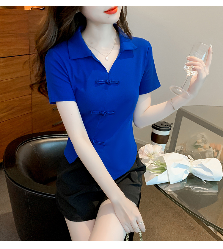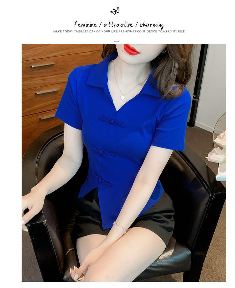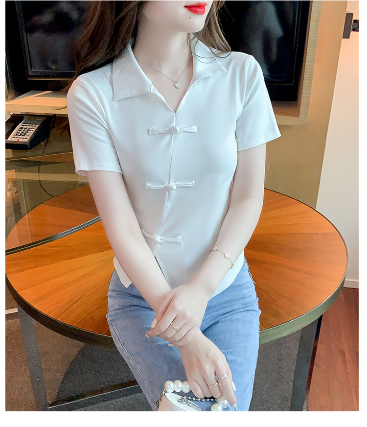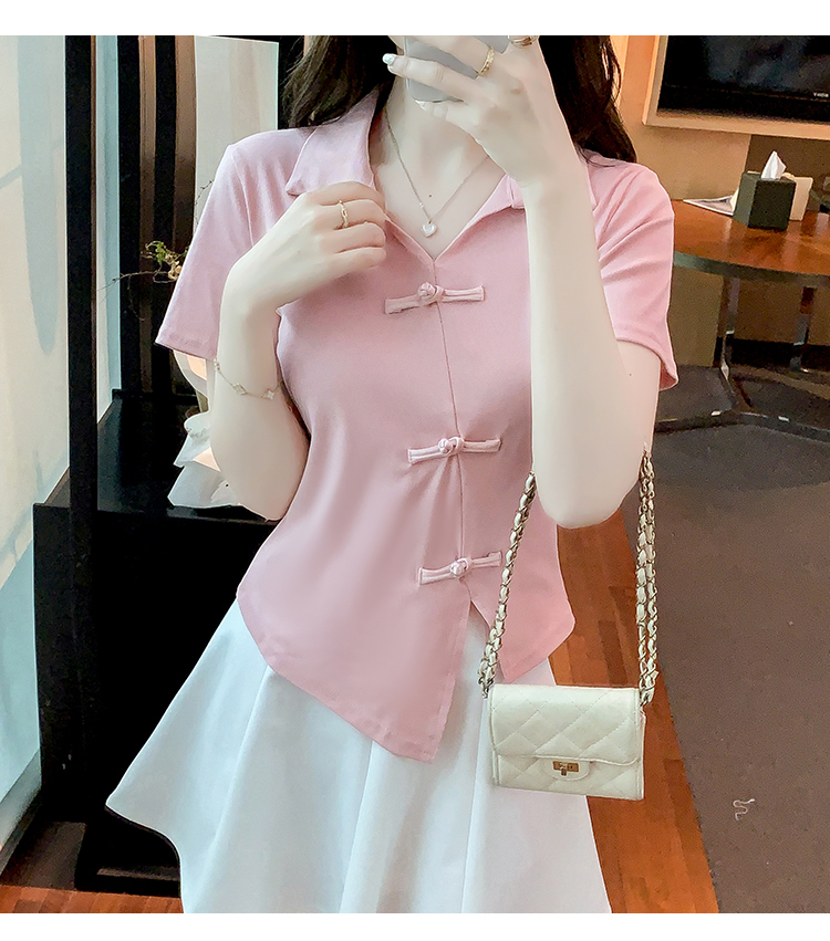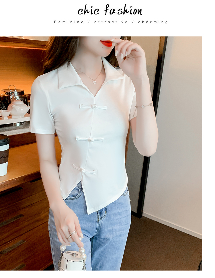 限量特惠|舒適盤釦造型不規則V領T恤-3色(03H3118)