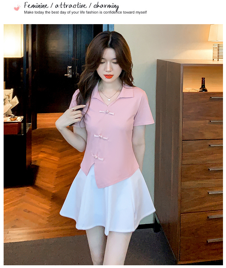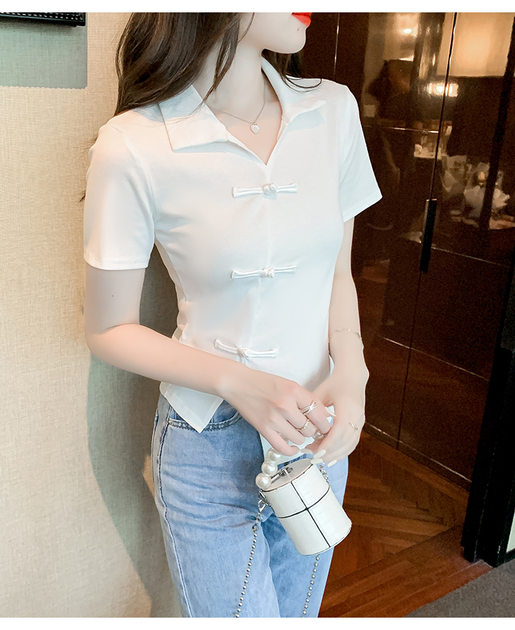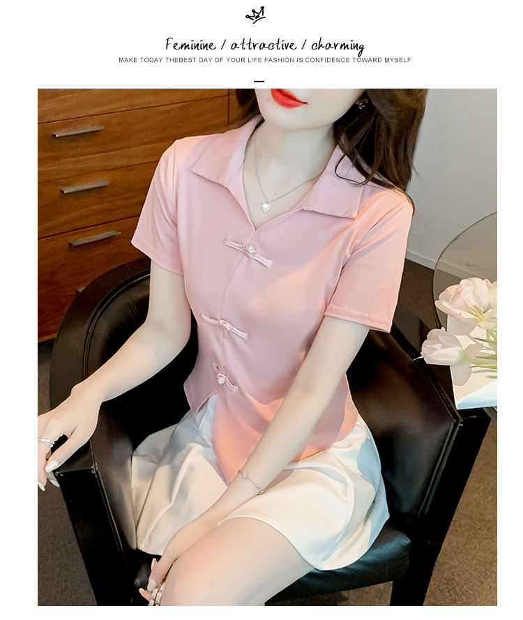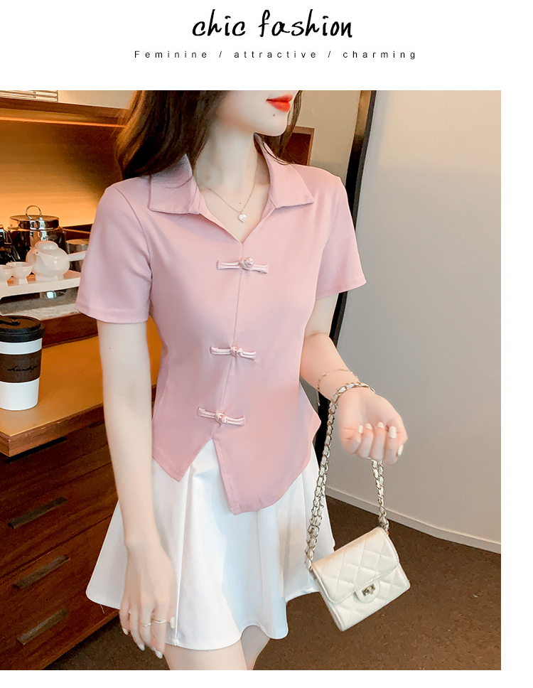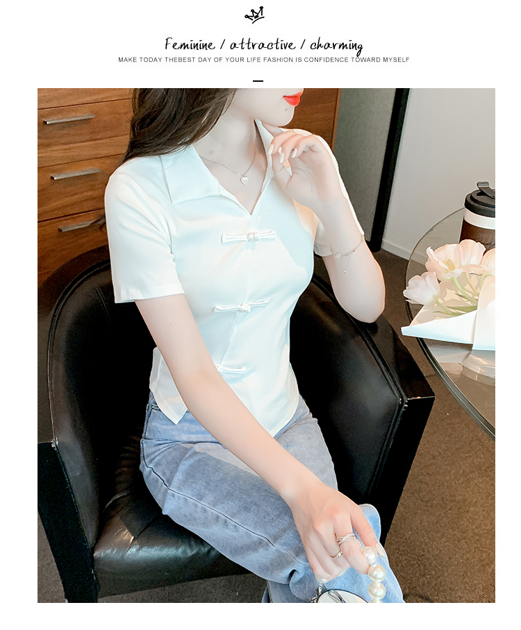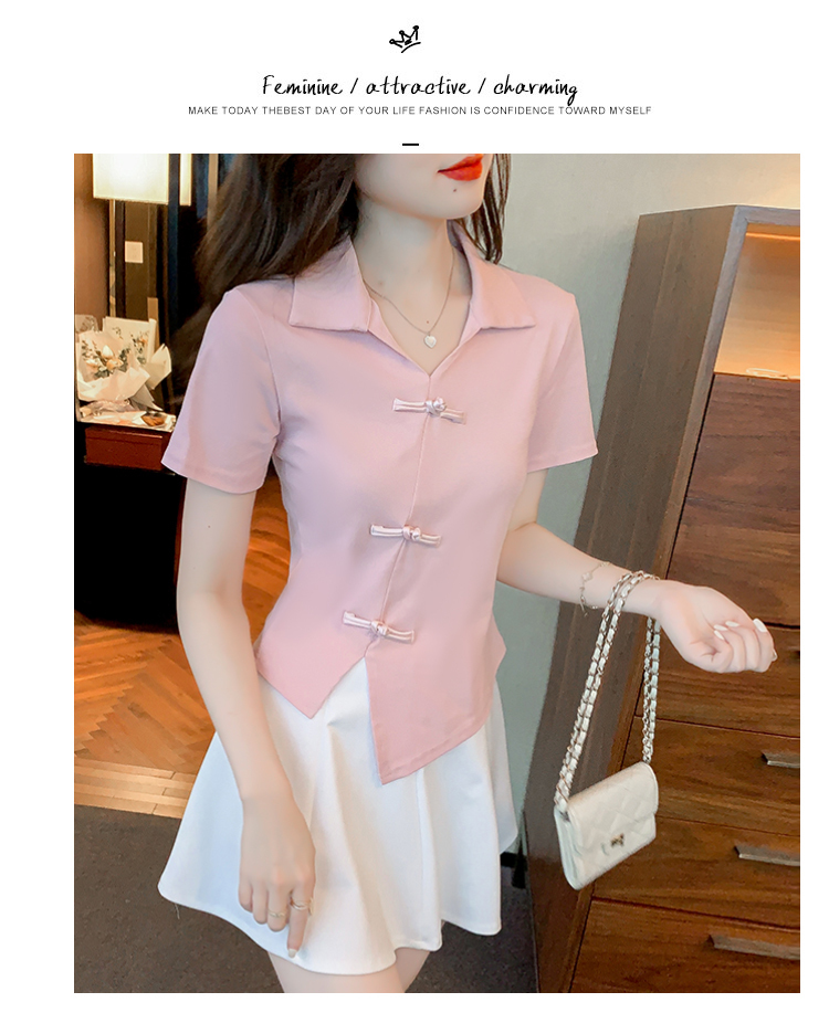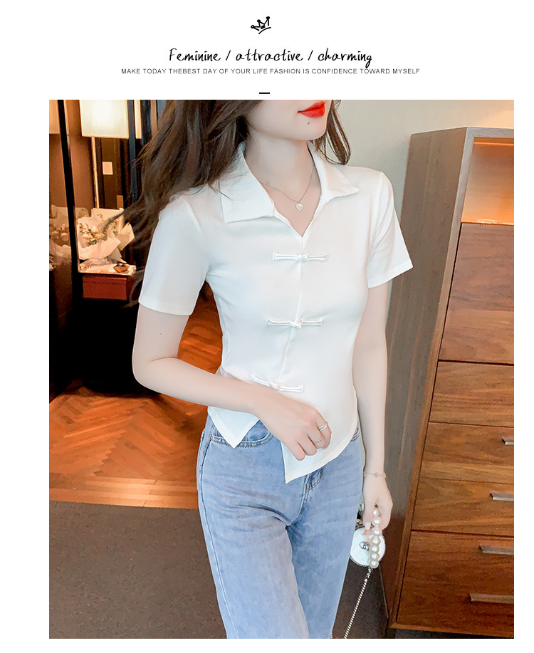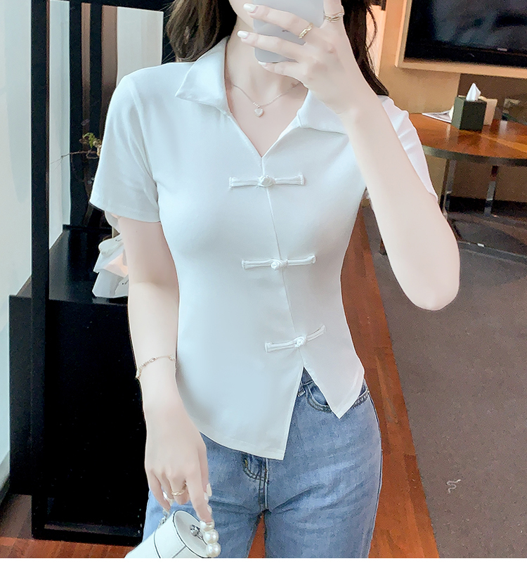 限量特惠|舒適盤釦造型不規則V領T恤-3色(03H3118)