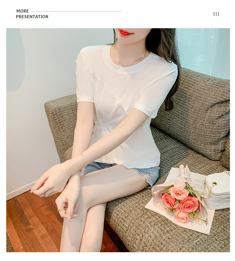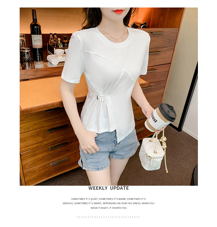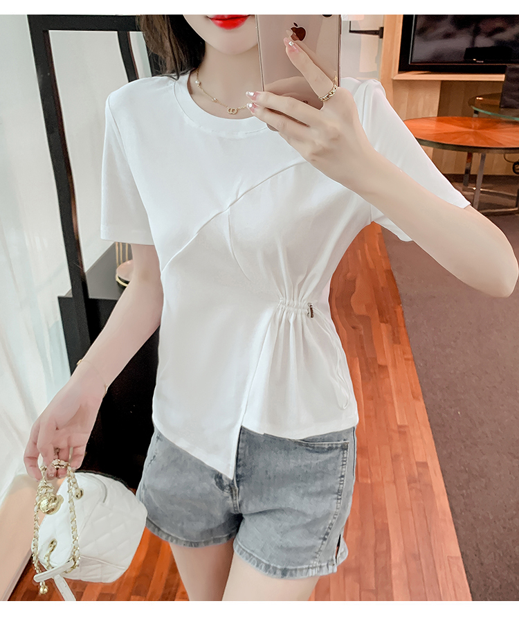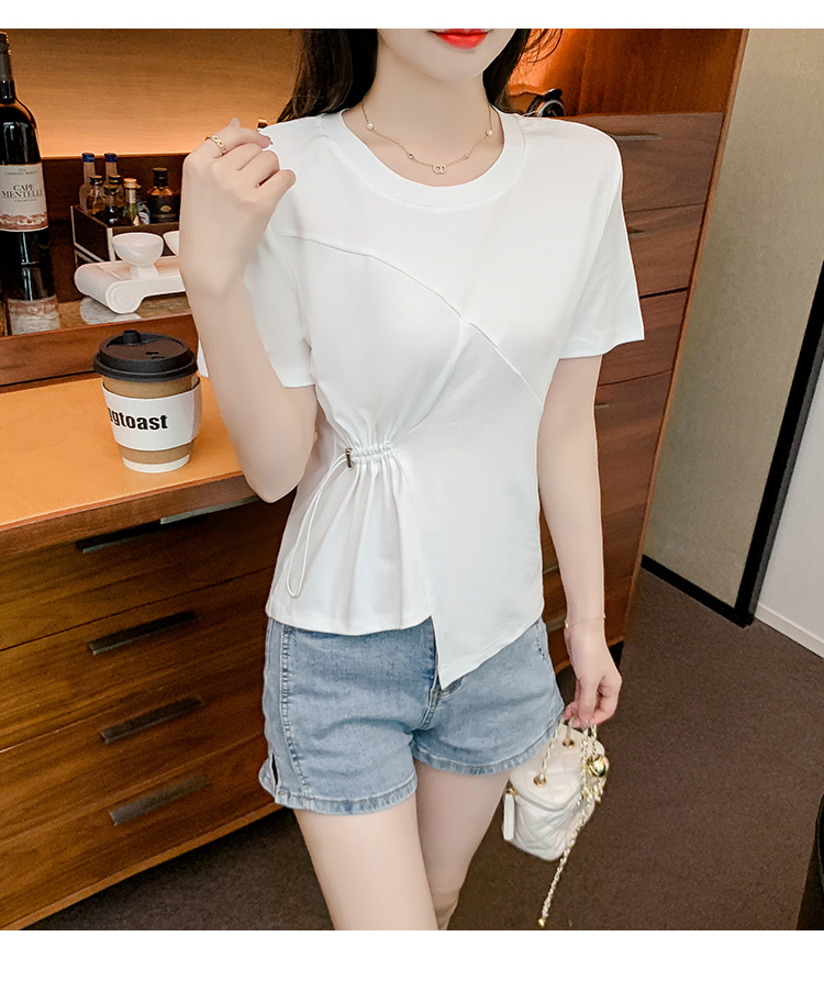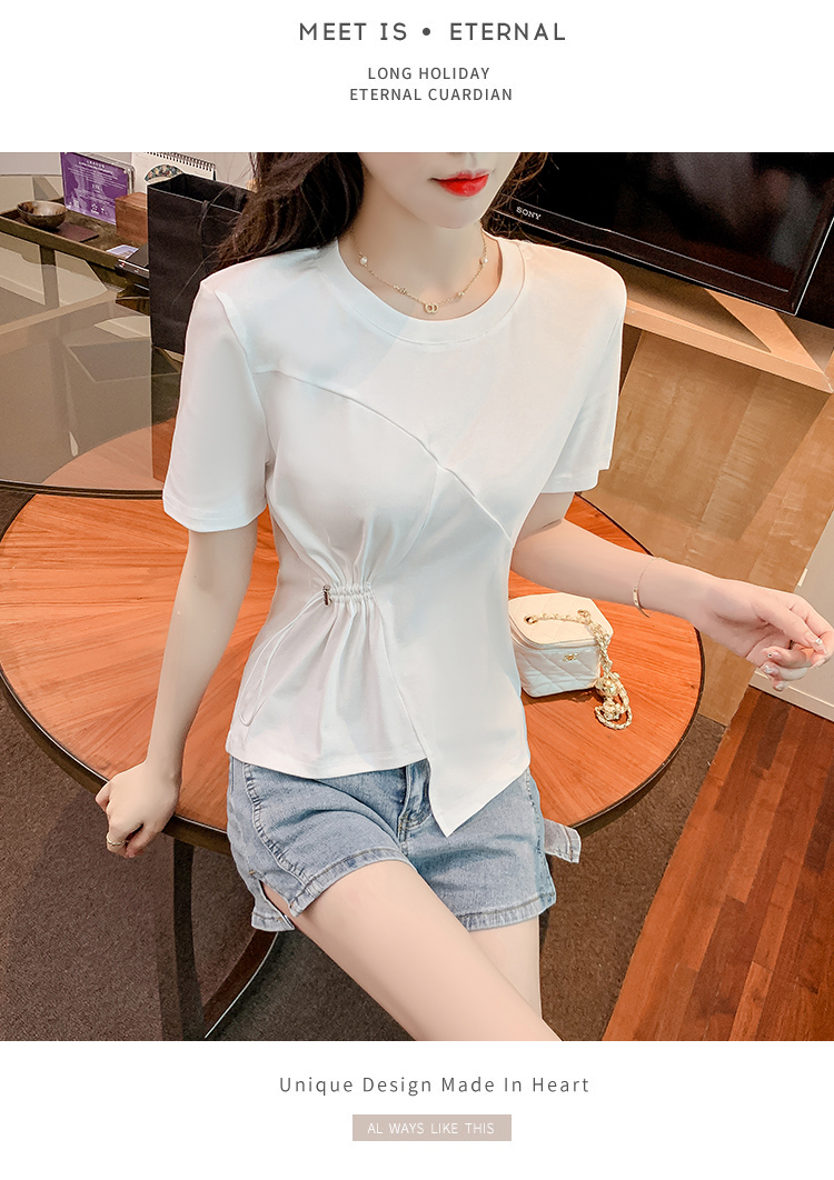 限量特惠|簡約純色不規則抽繩收腰T恤(03H3129)