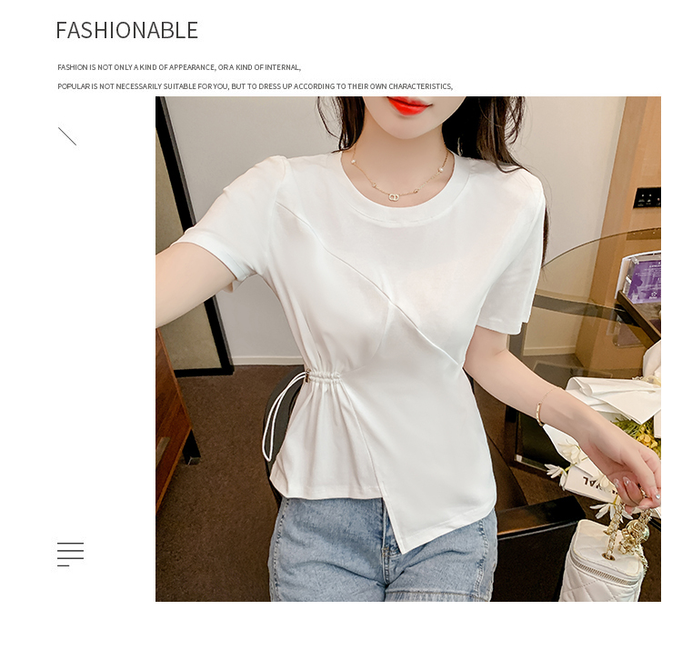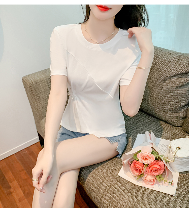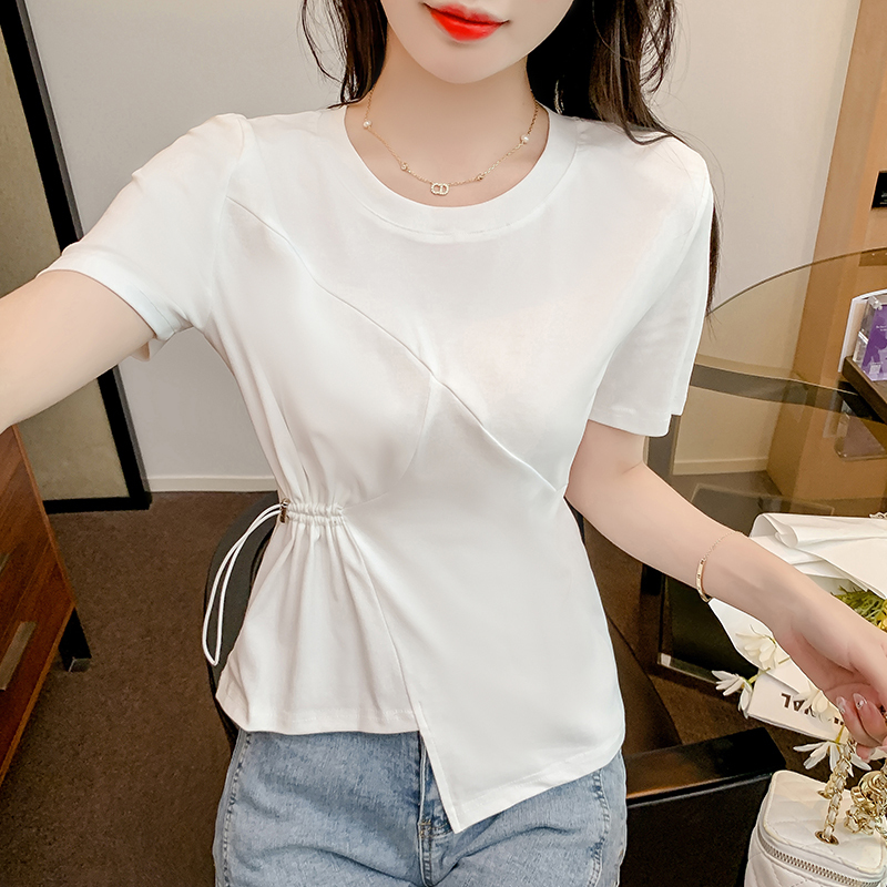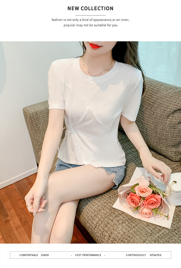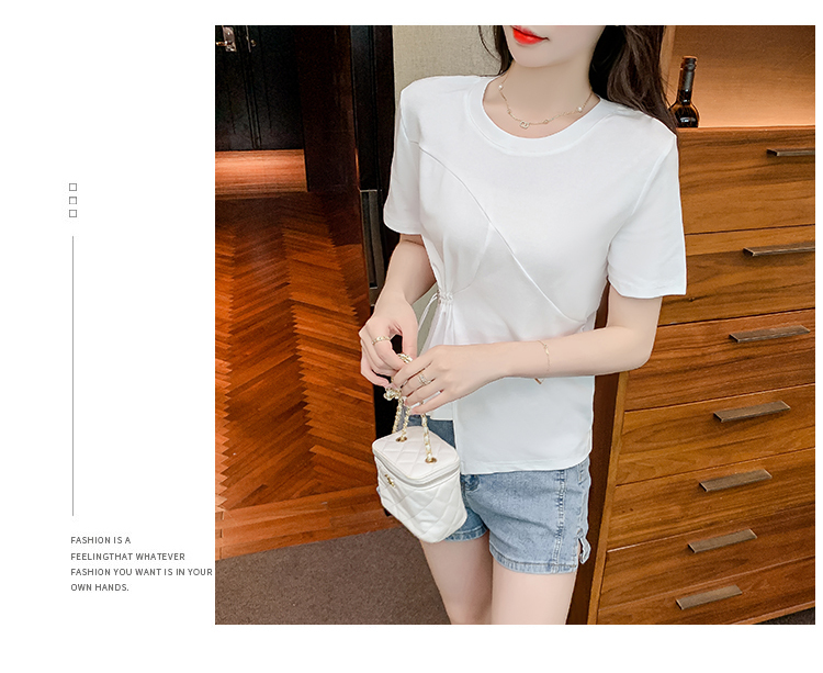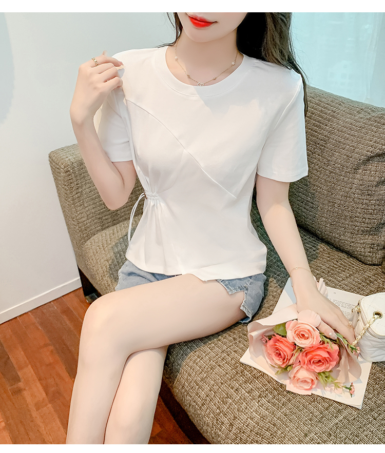 限量特惠|簡約純色不規則抽繩收腰T恤(03H3129)