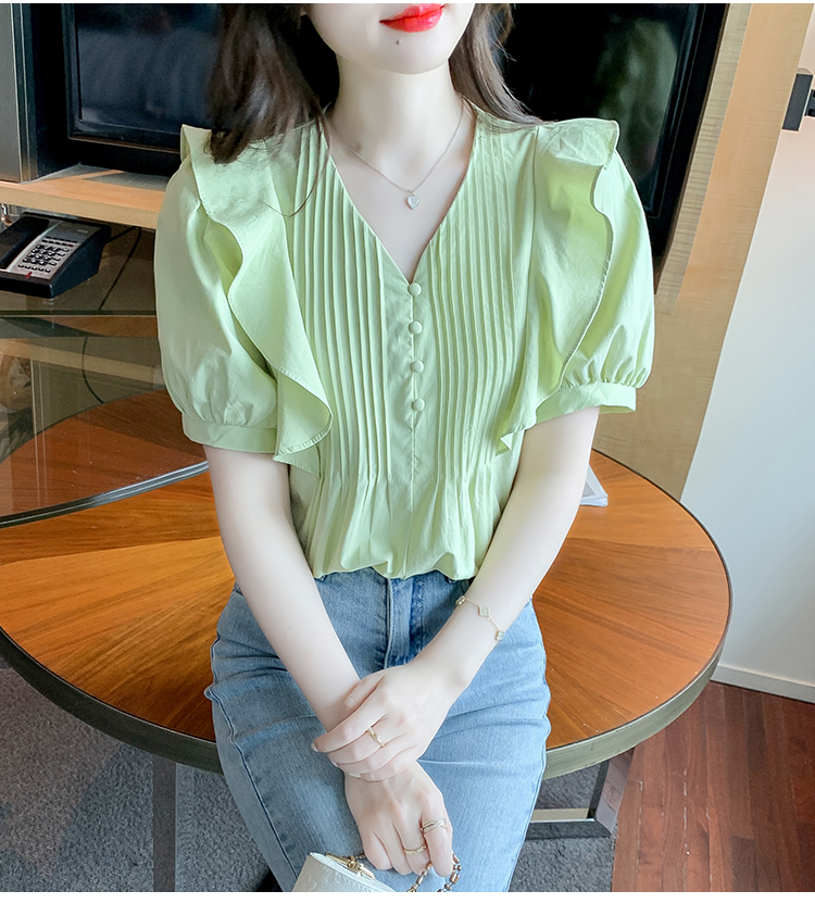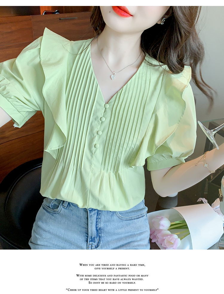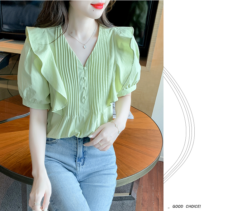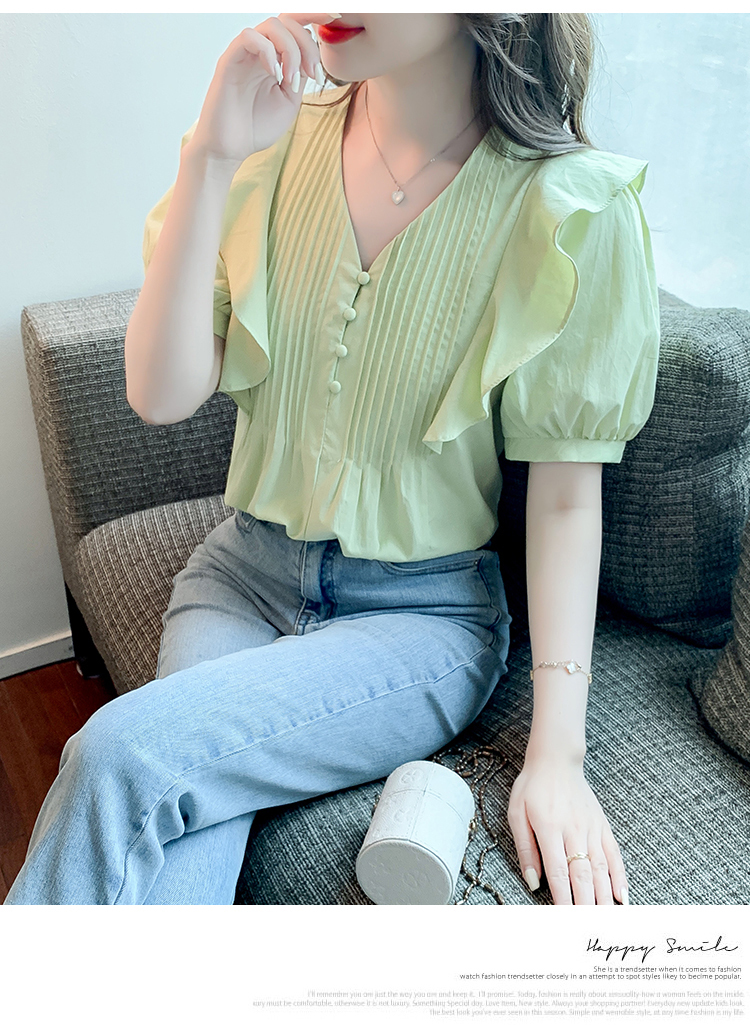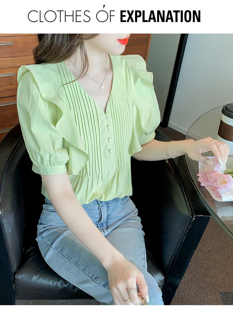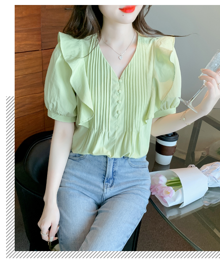 限量特惠|法式V領荷葉邊風琴造型雪紡衫(03H3132)