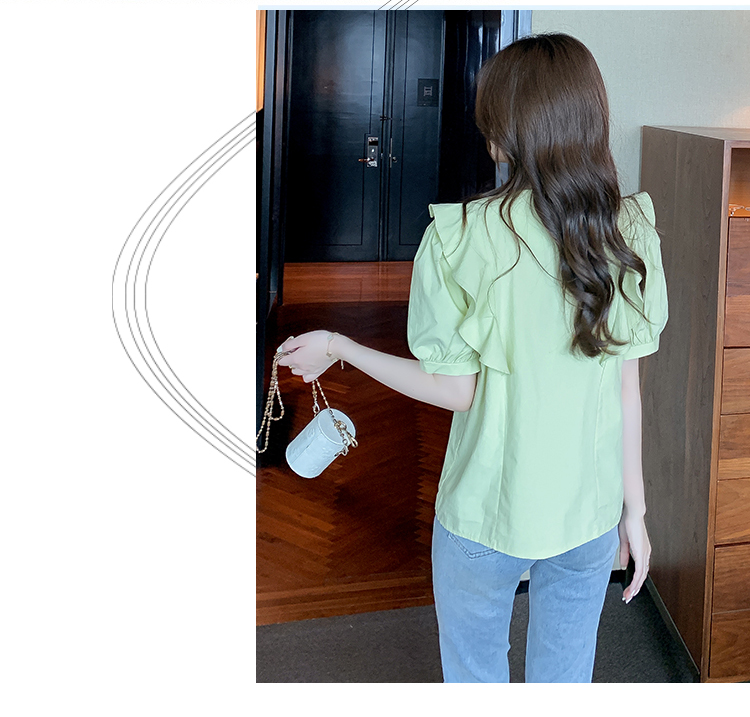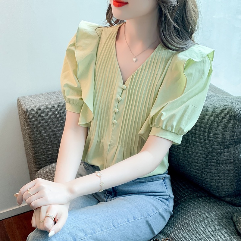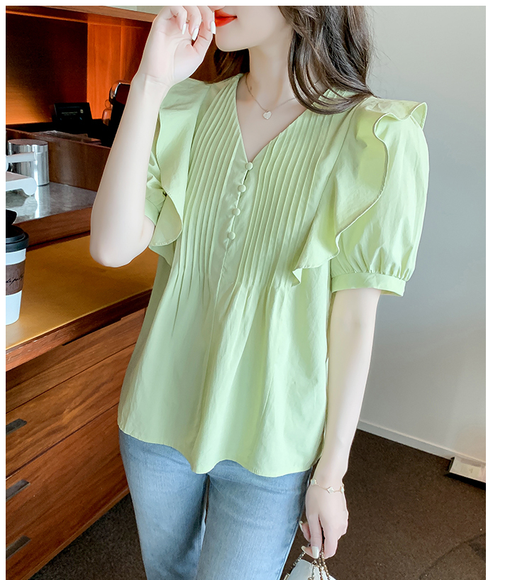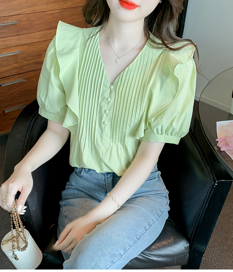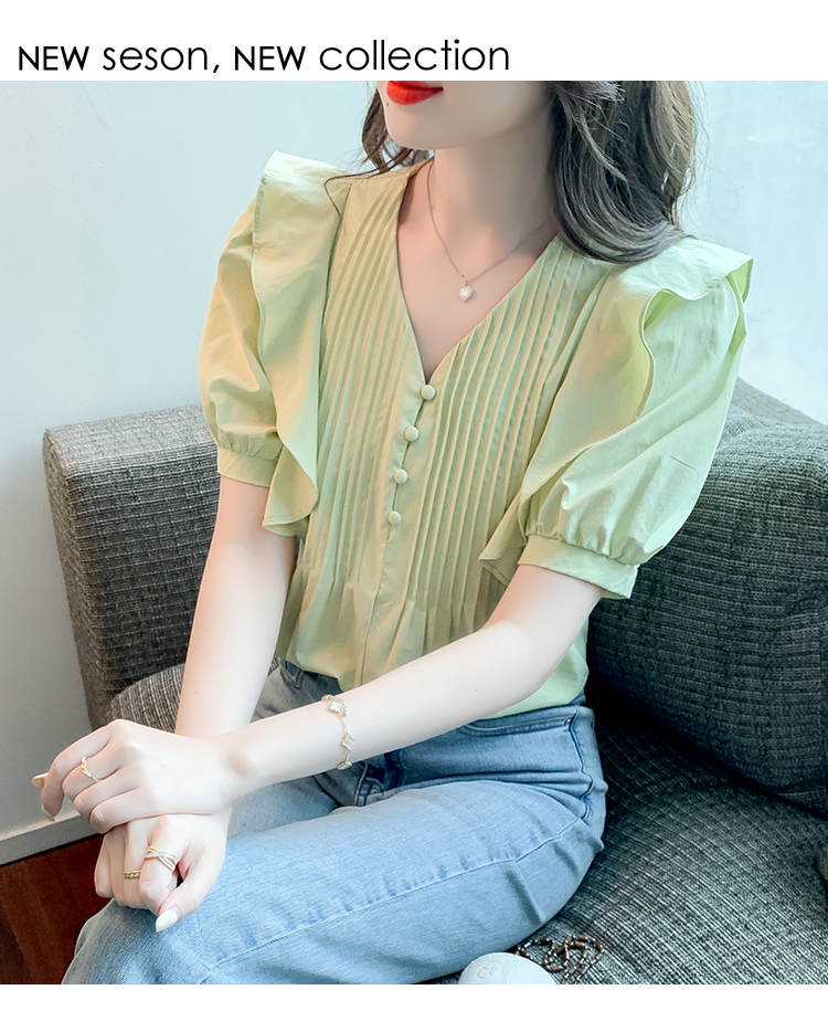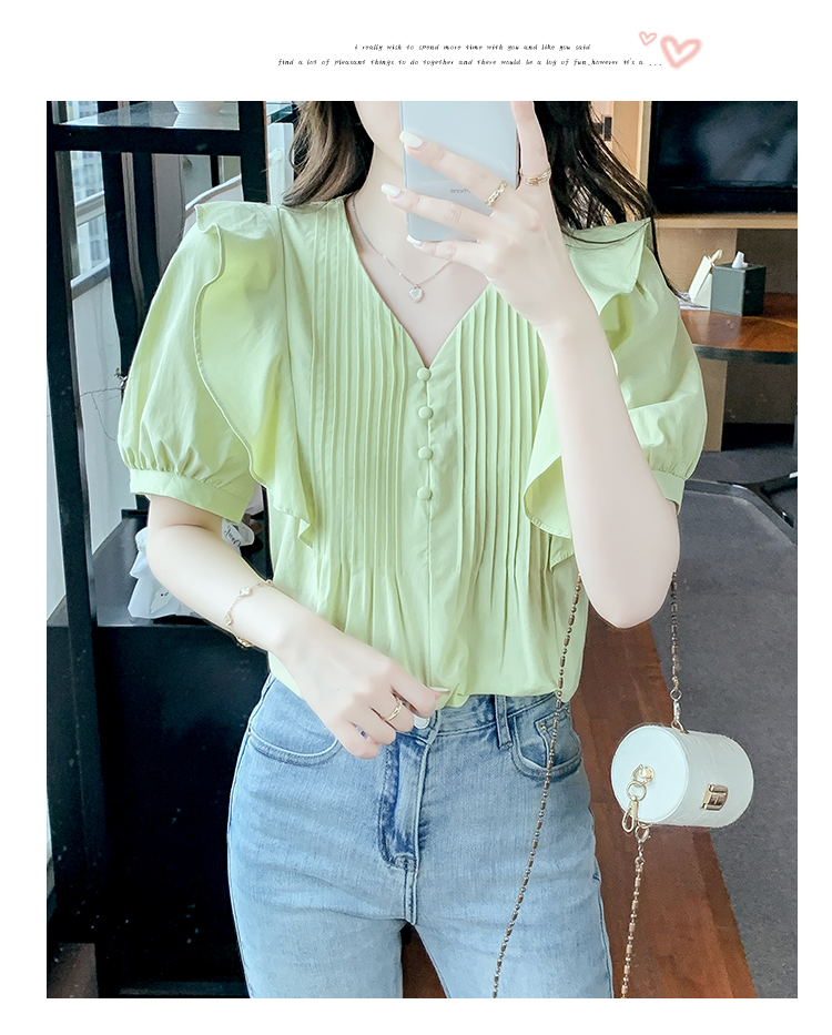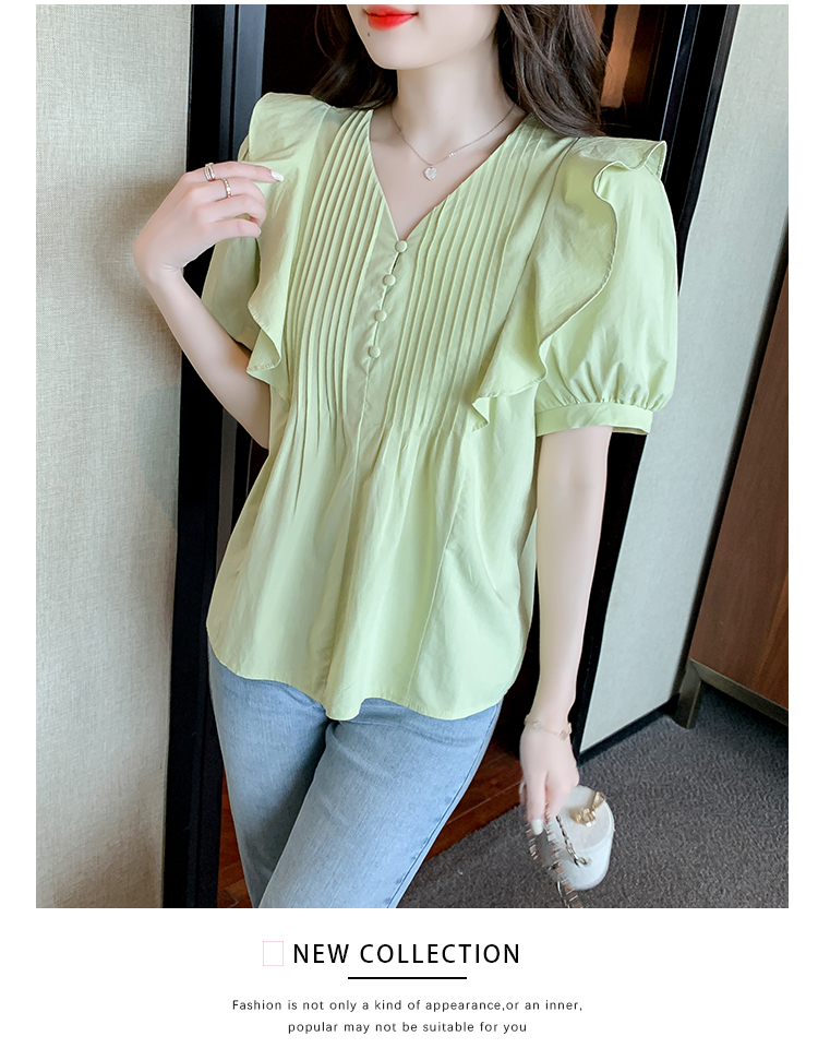 限量特惠|法式V領荷葉邊風琴造型雪紡衫(03H3132)