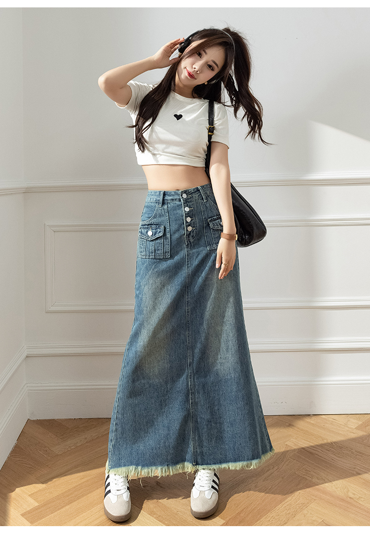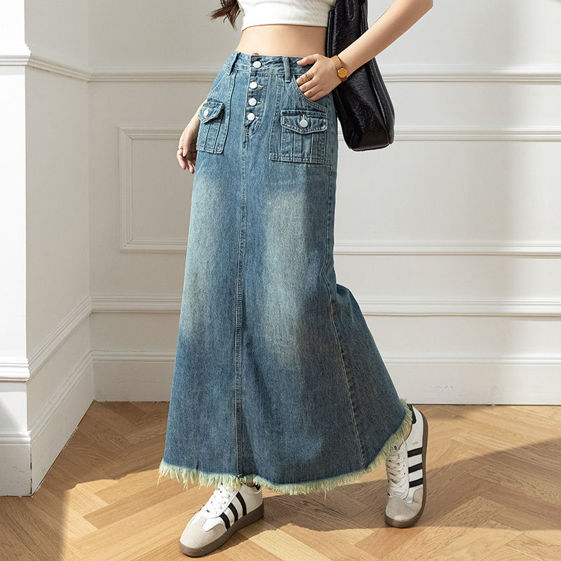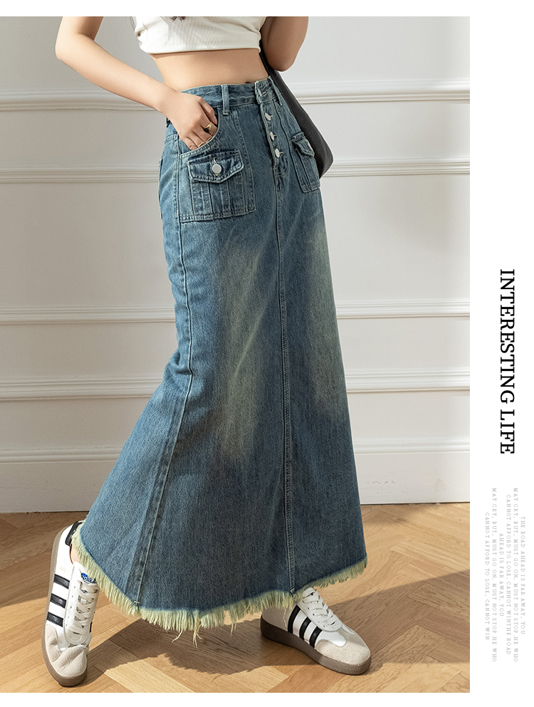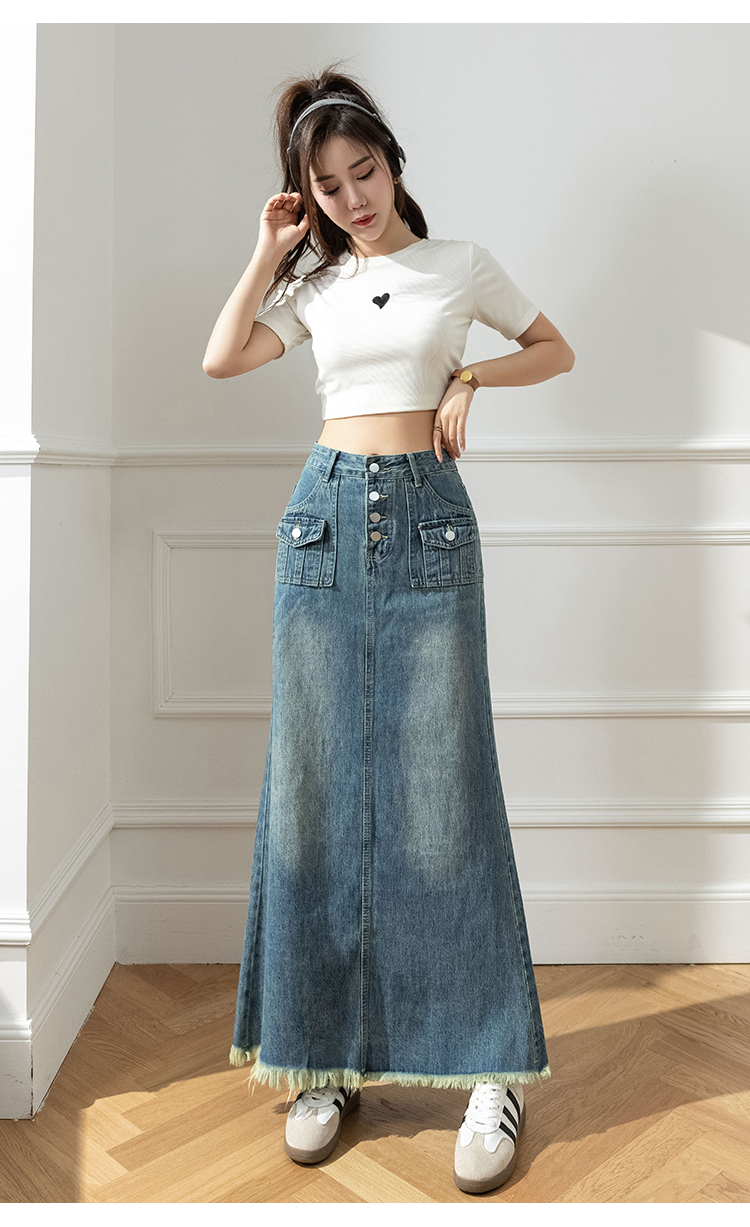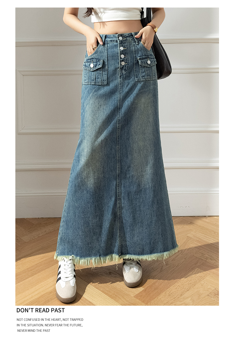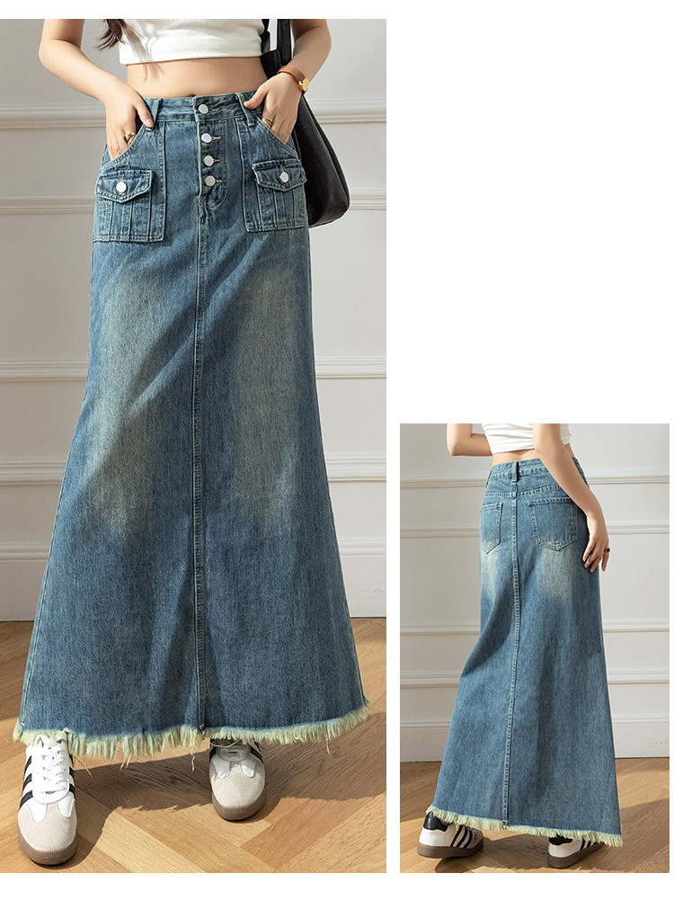 限量特惠|個性刷色毛邊A字牛仔裙(03H3142)