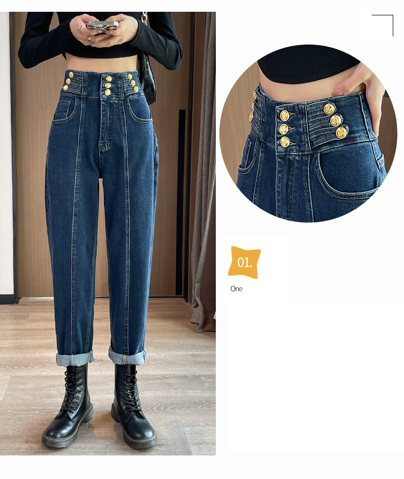 限量特惠|舒適百搭排釦造型牛仔哈倫褲-2色(03H3145)