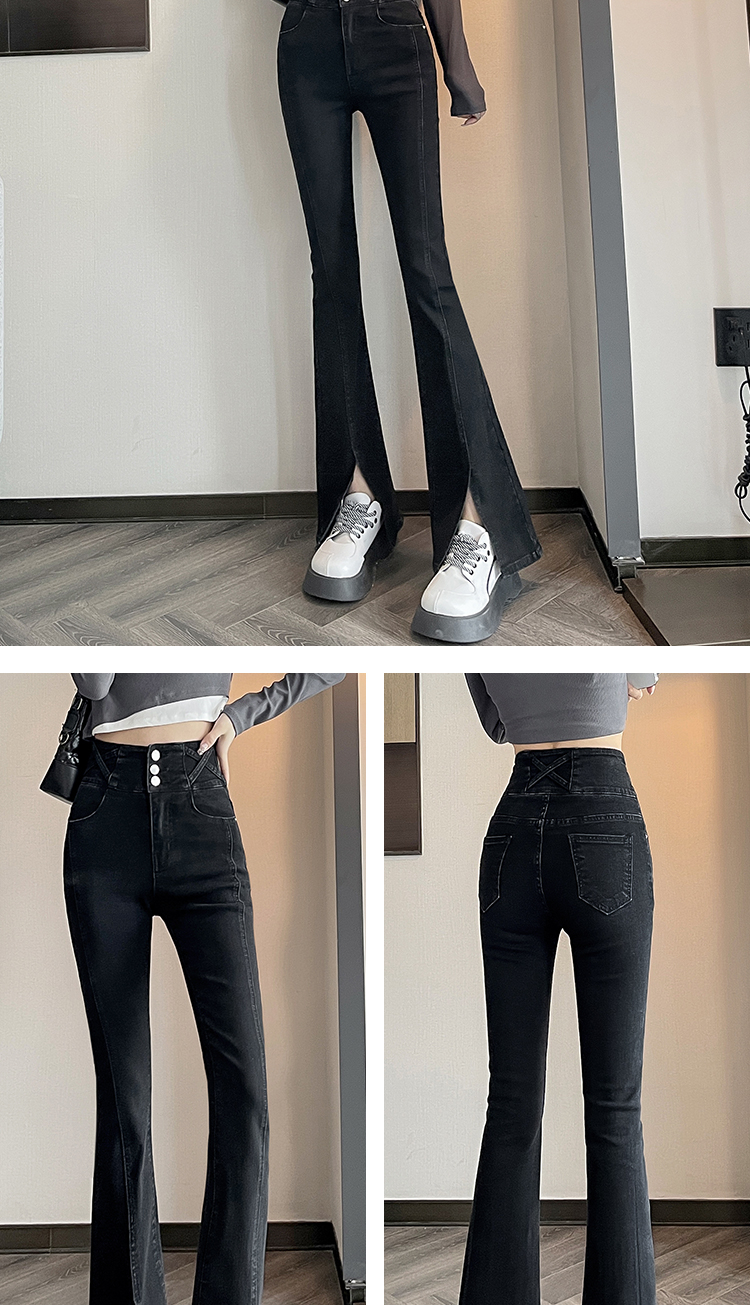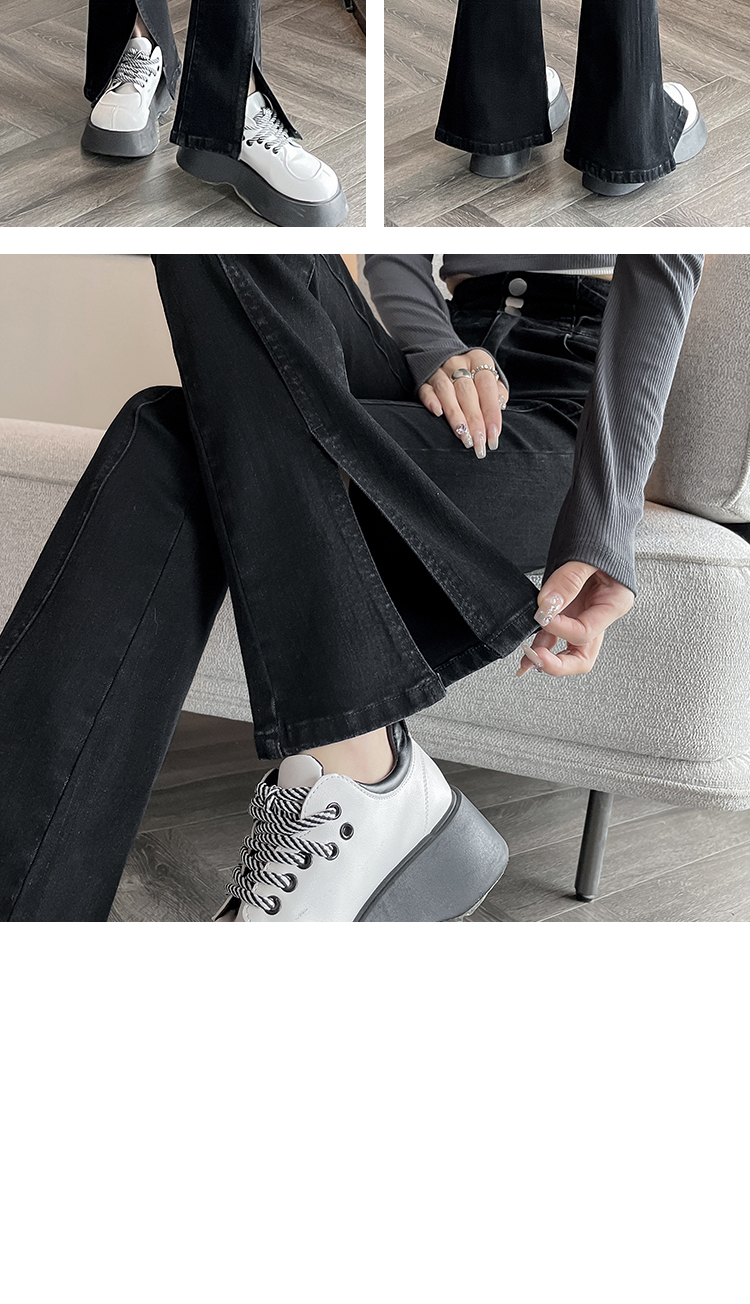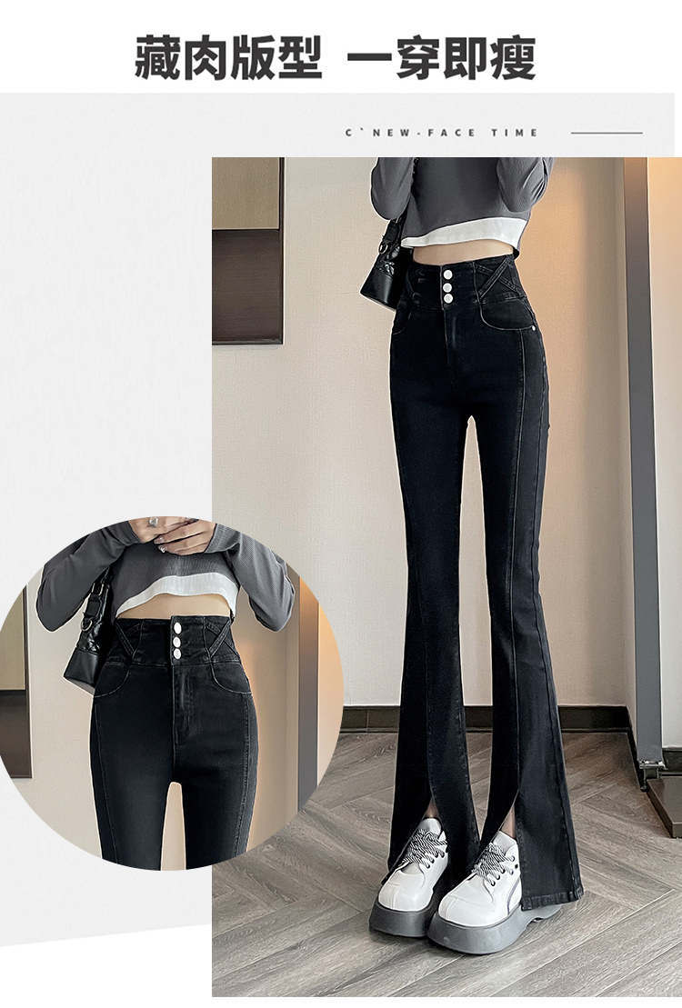 限量特惠|舒適百搭修身開叉喇叭褲-3色(03H3148)