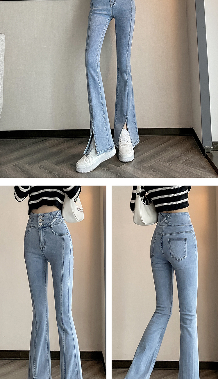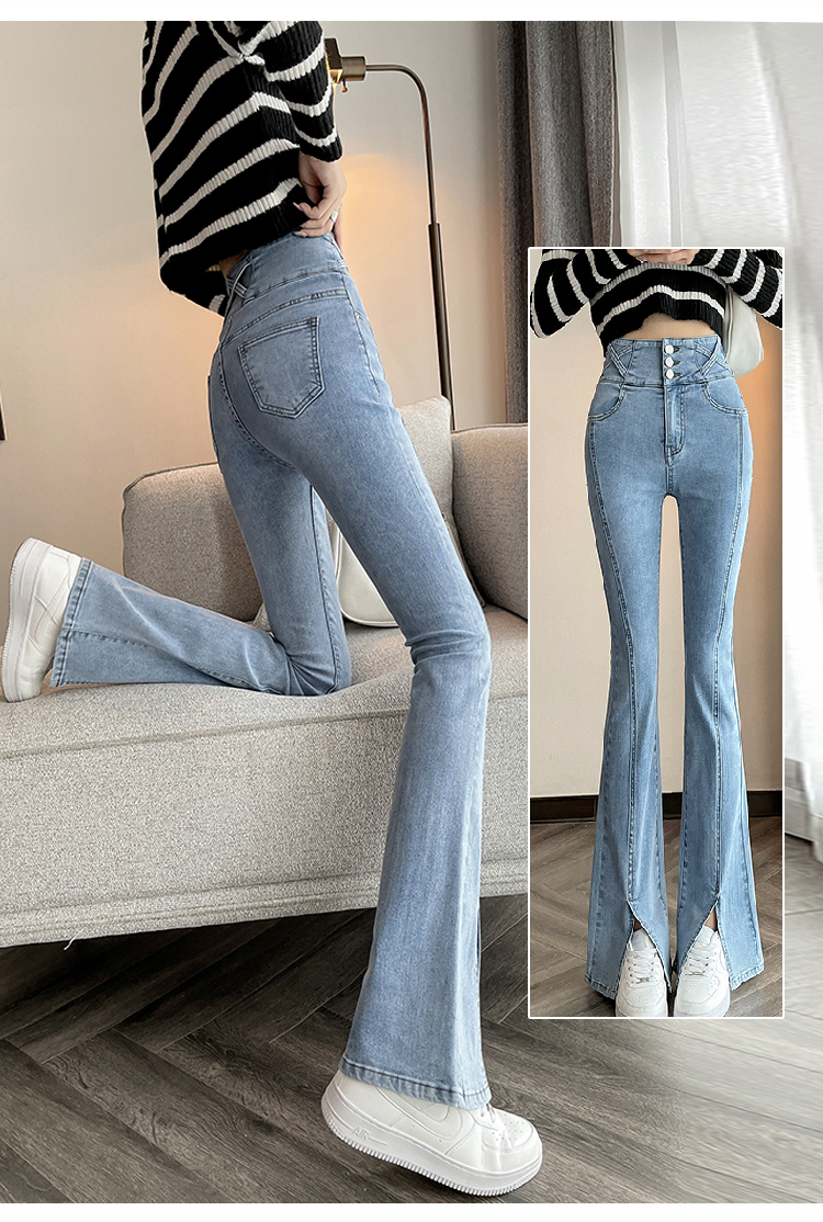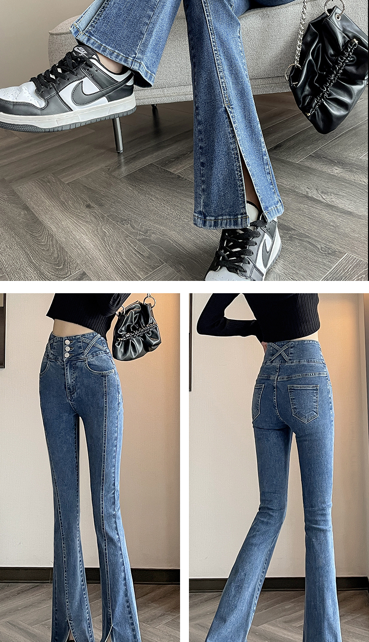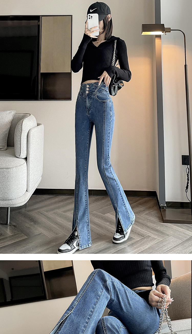 限量特惠|舒適百搭修身開叉喇叭褲-3色(03H3148)
