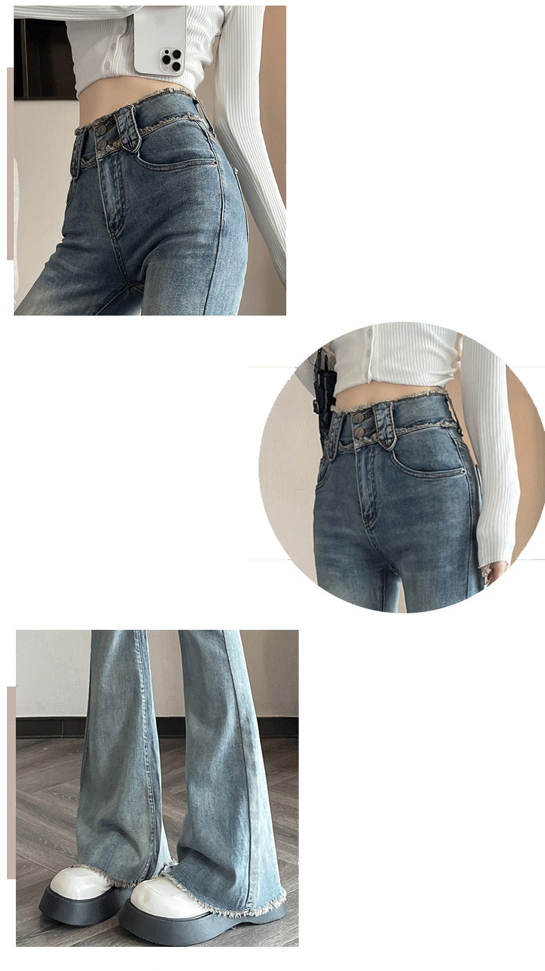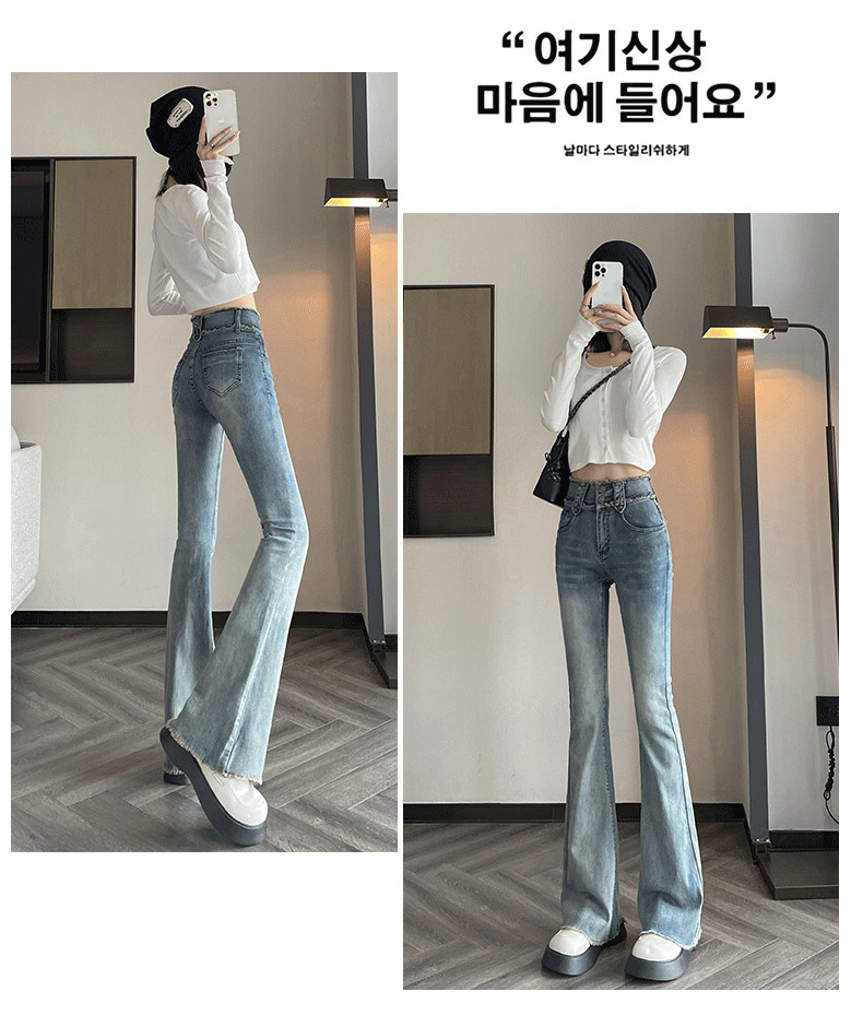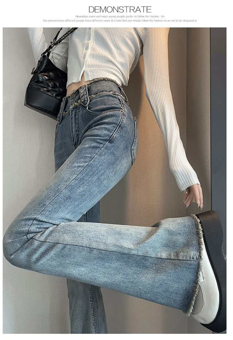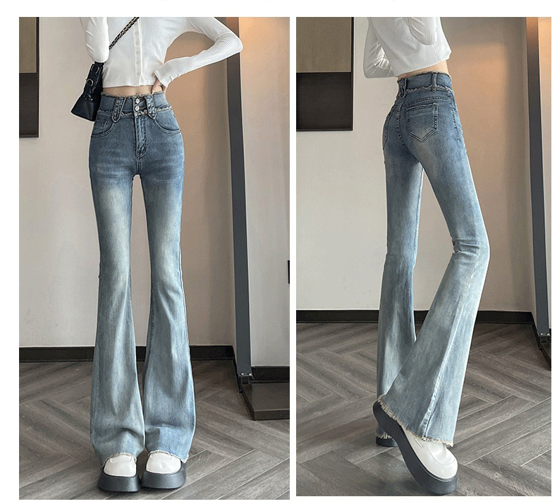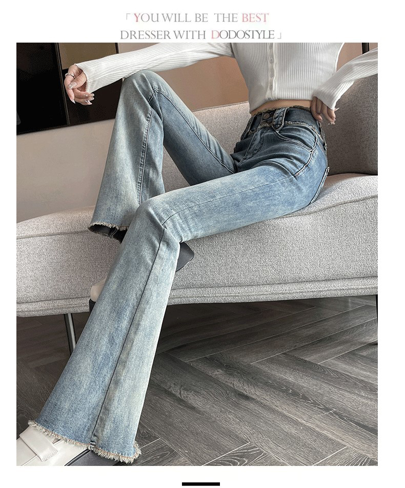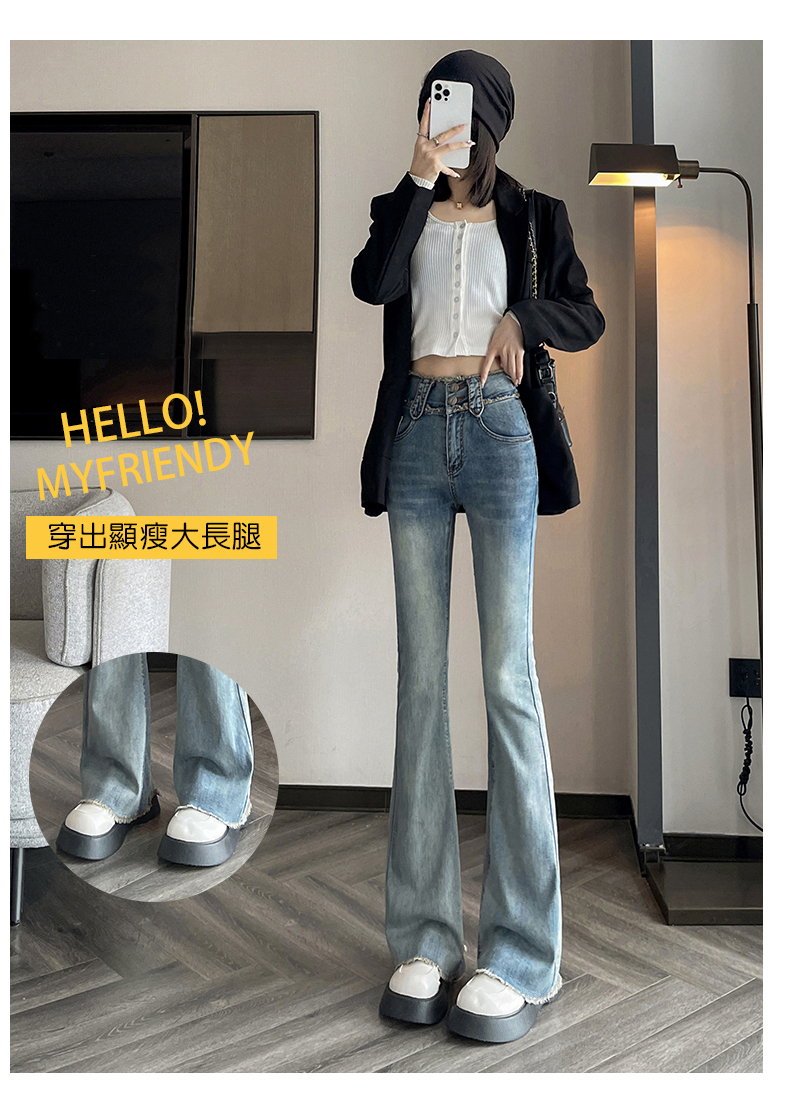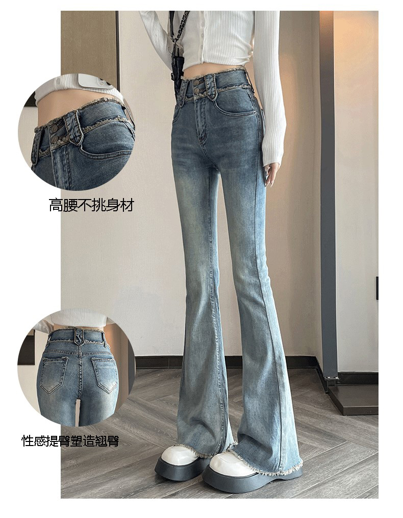 限量特惠|舒適百搭復古修身刷毛邊牛仔喇叭褲(03H3150)
