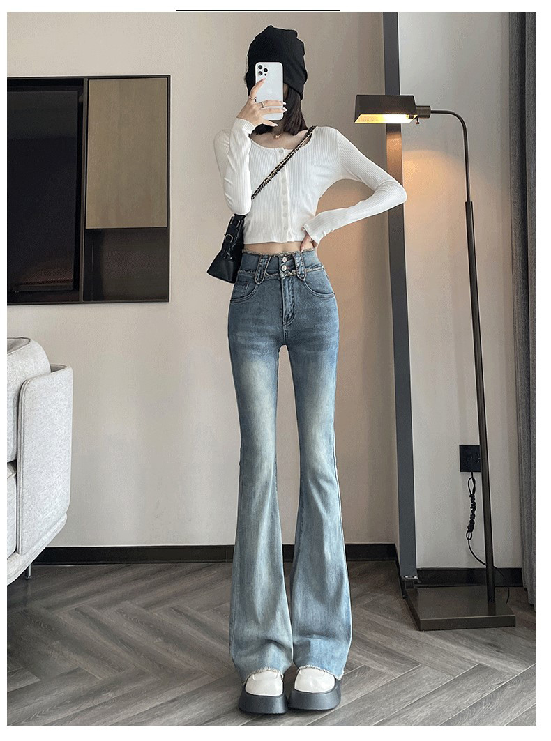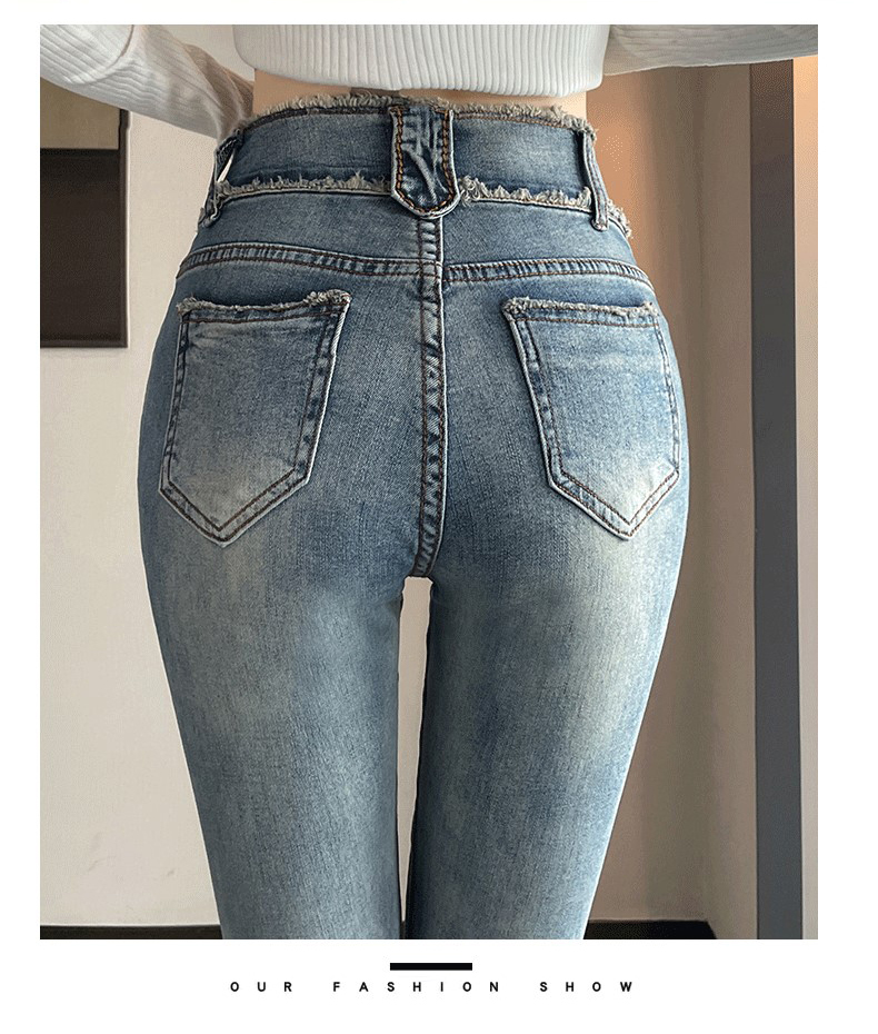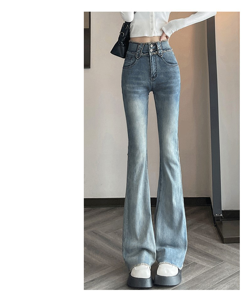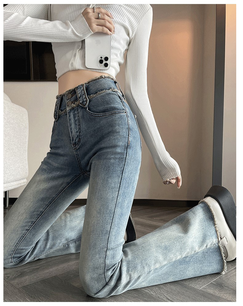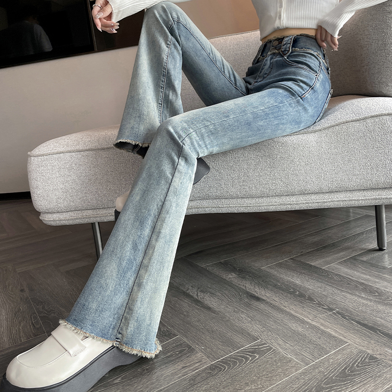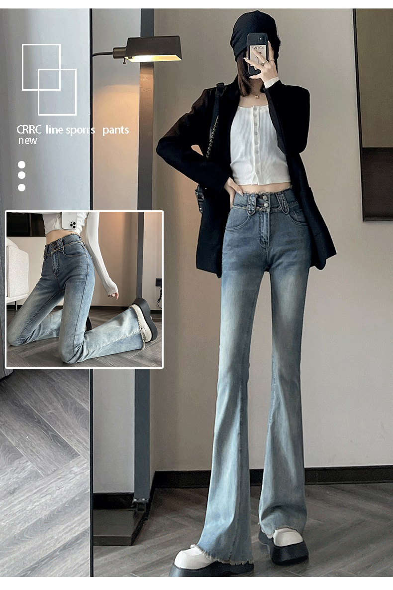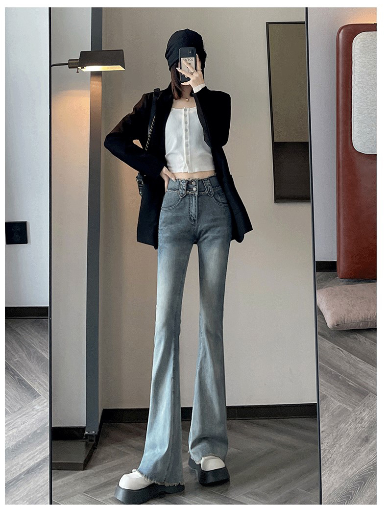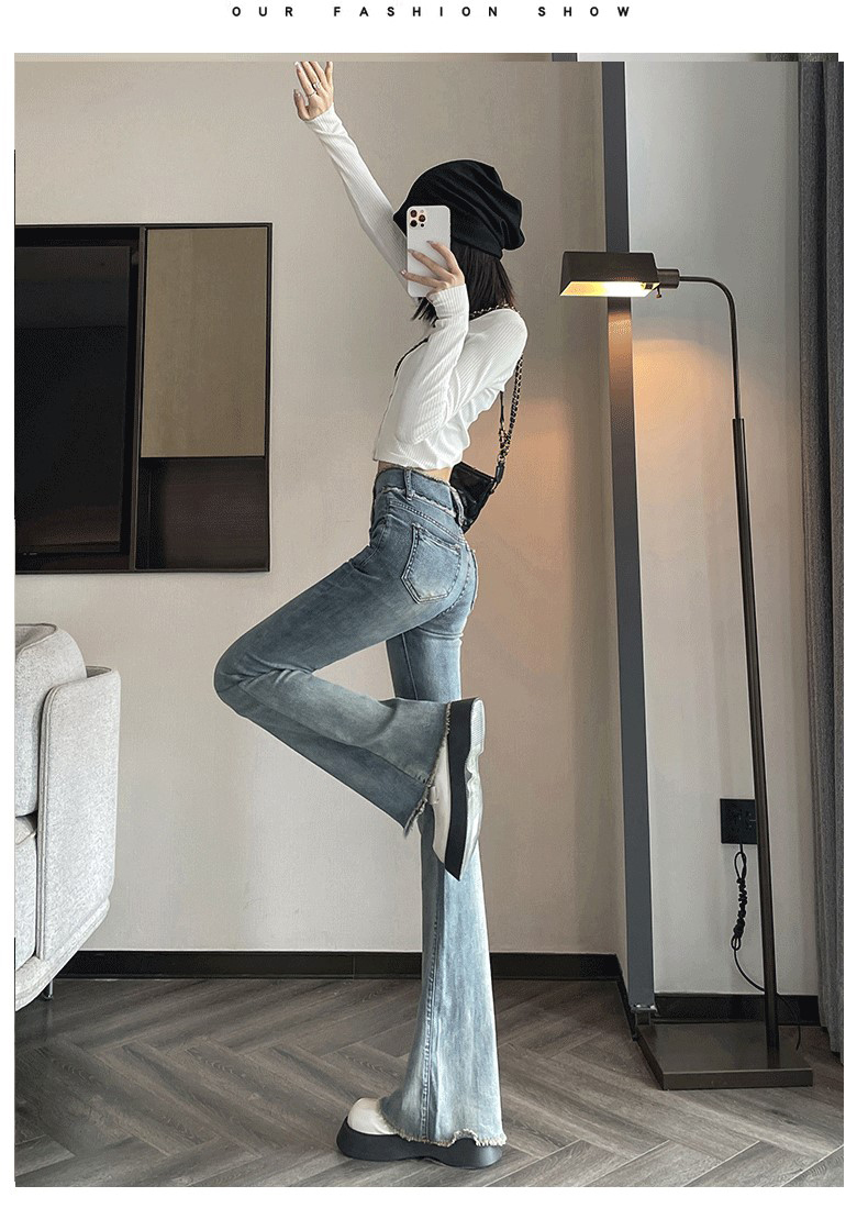 限量特惠|舒適百搭復古修身刷毛邊牛仔喇叭褲(03H3150)