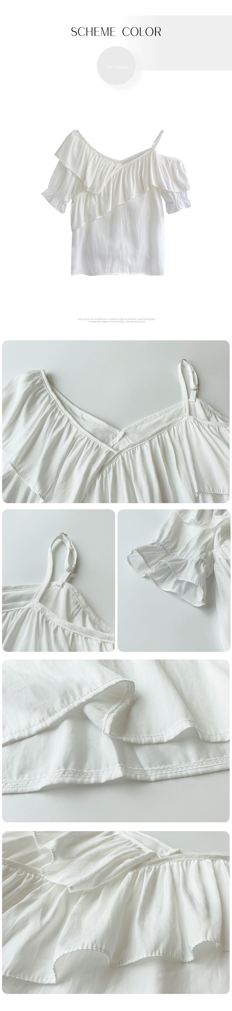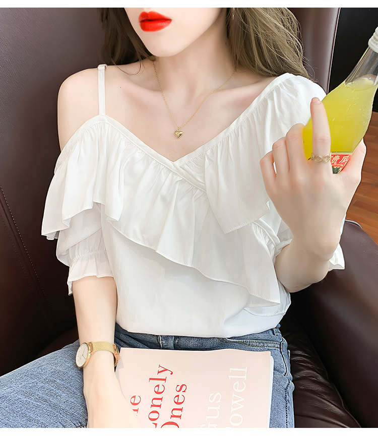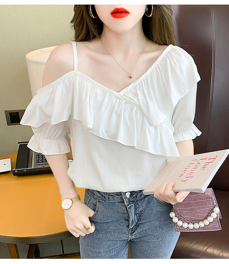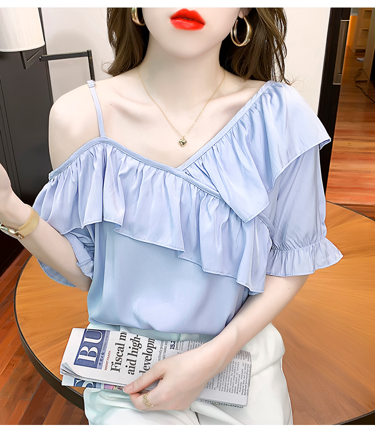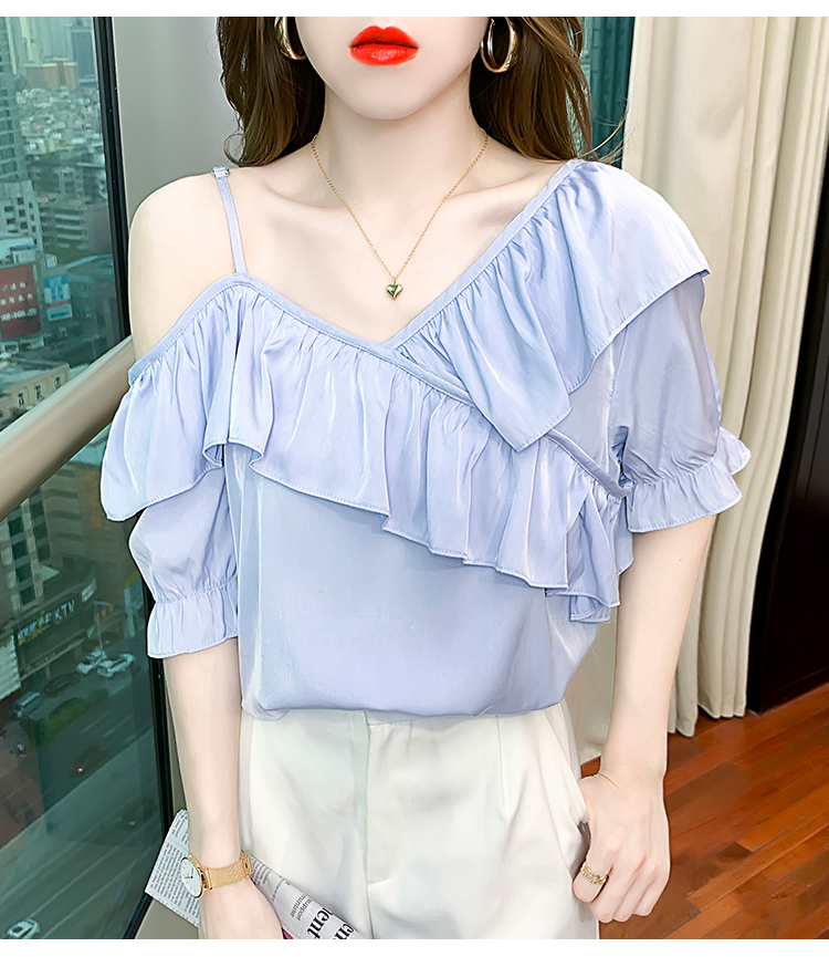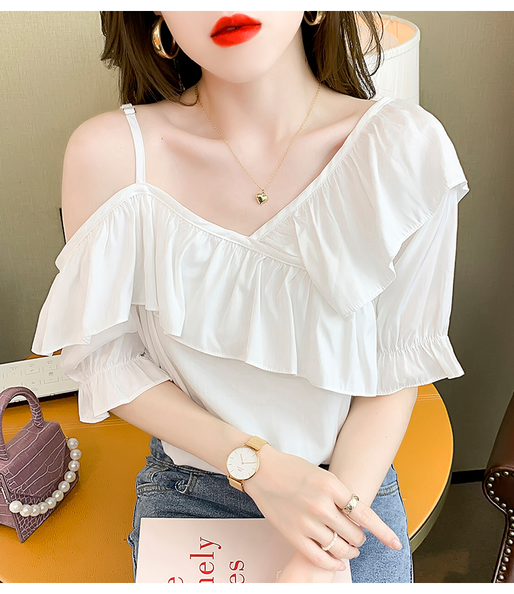 限量特惠|甜美不規則荷葉邊一字斜肩吊帶雪紡衫-2色(03H3175)