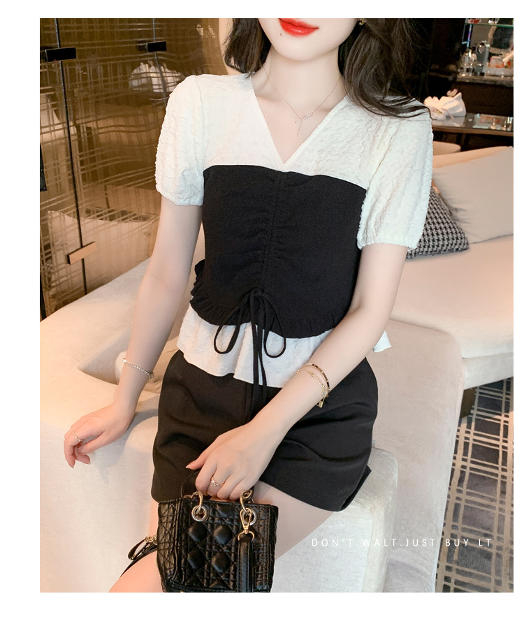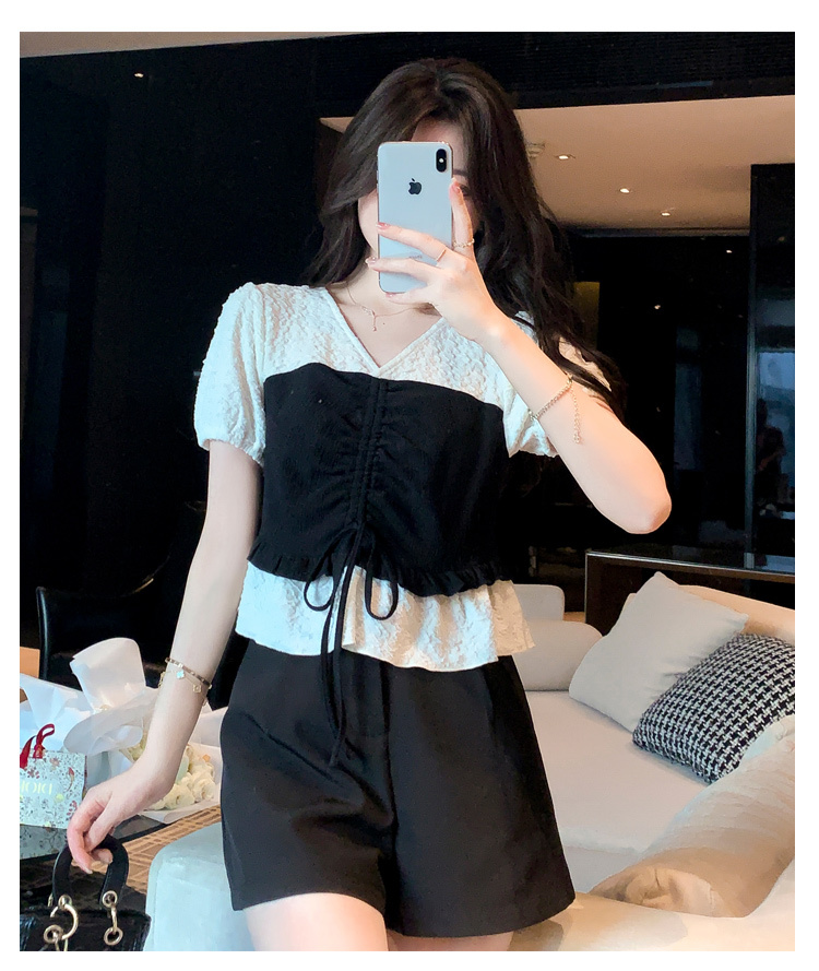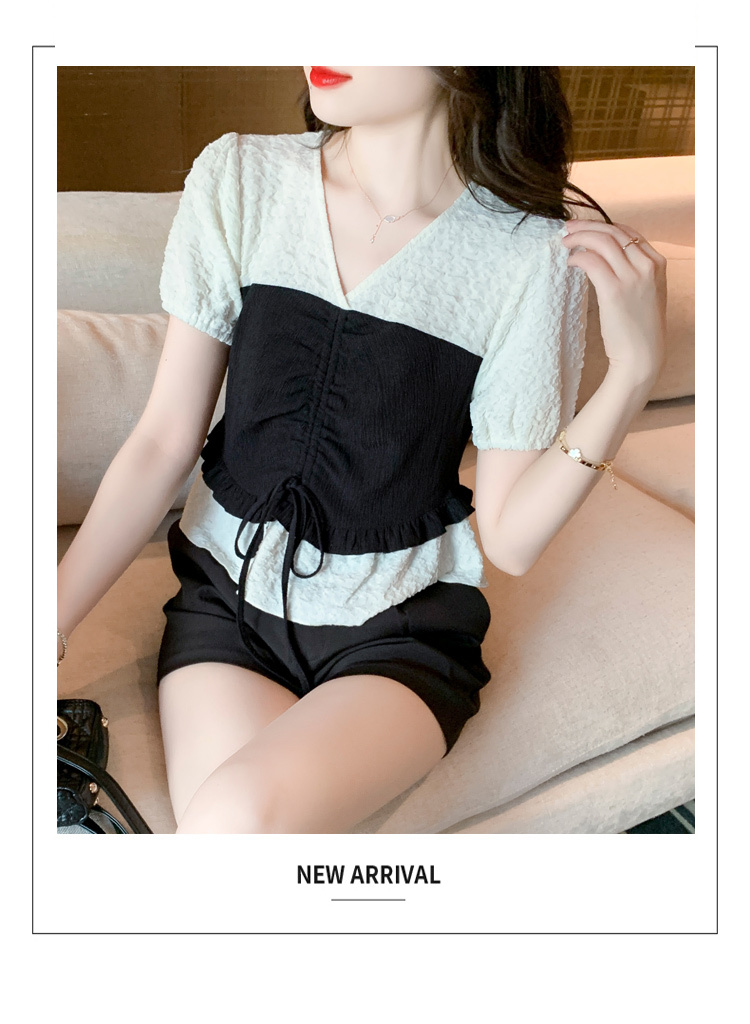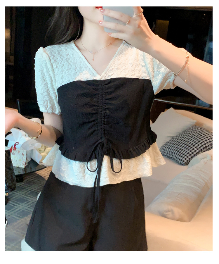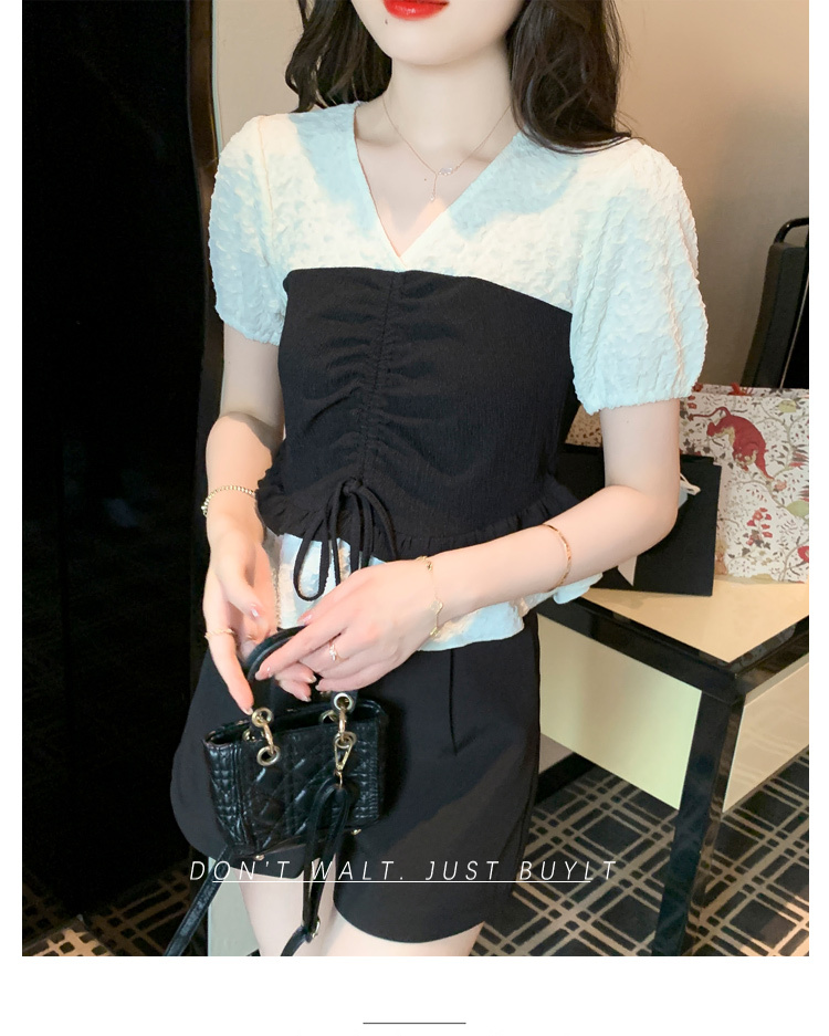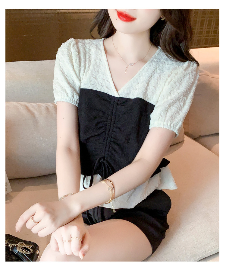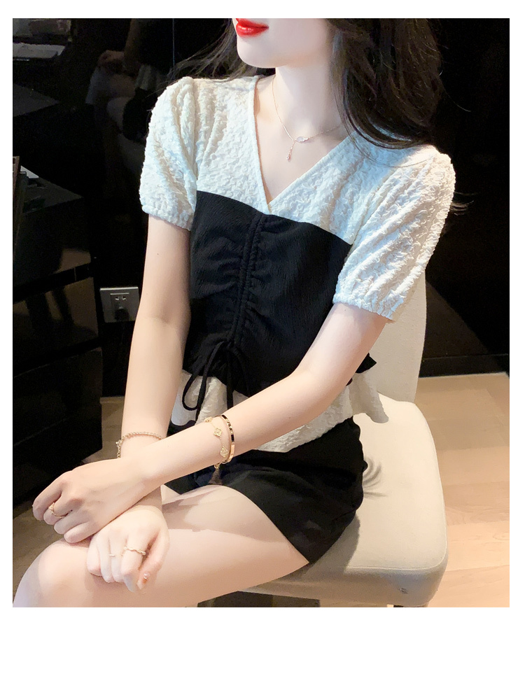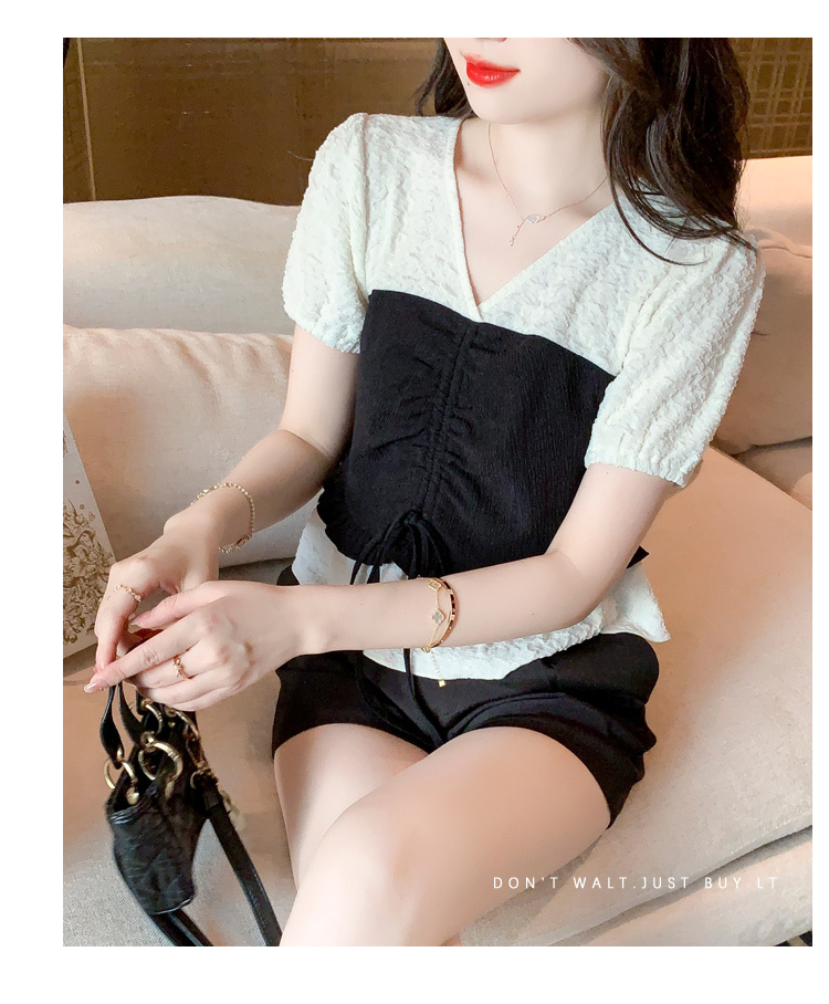 限量特惠|甜美拼接撞色抽繩褶皺雪紡衫(03H3181)