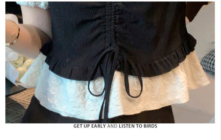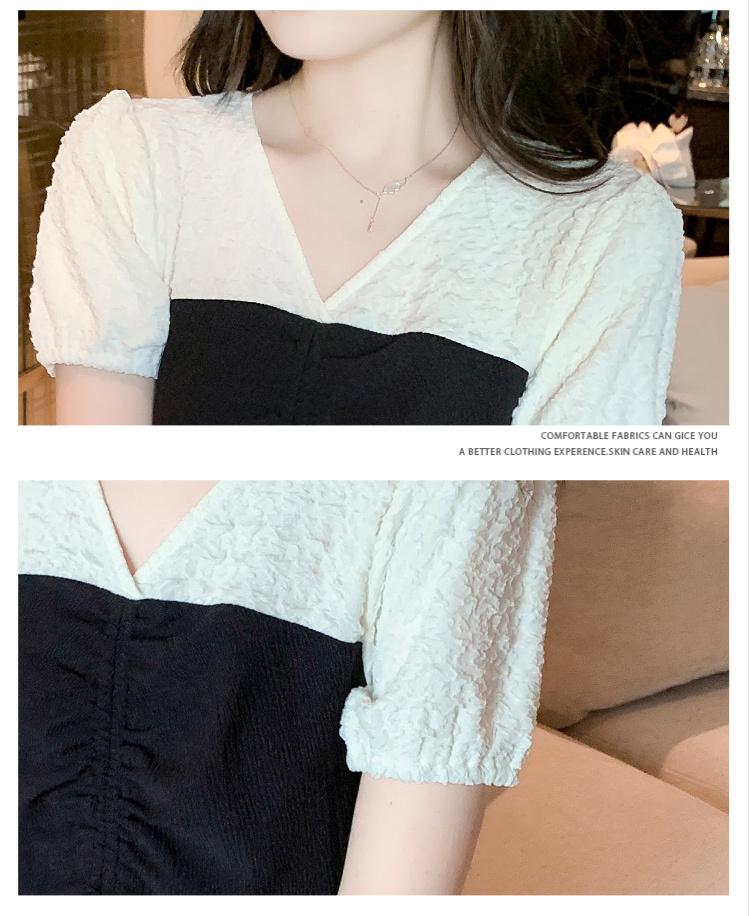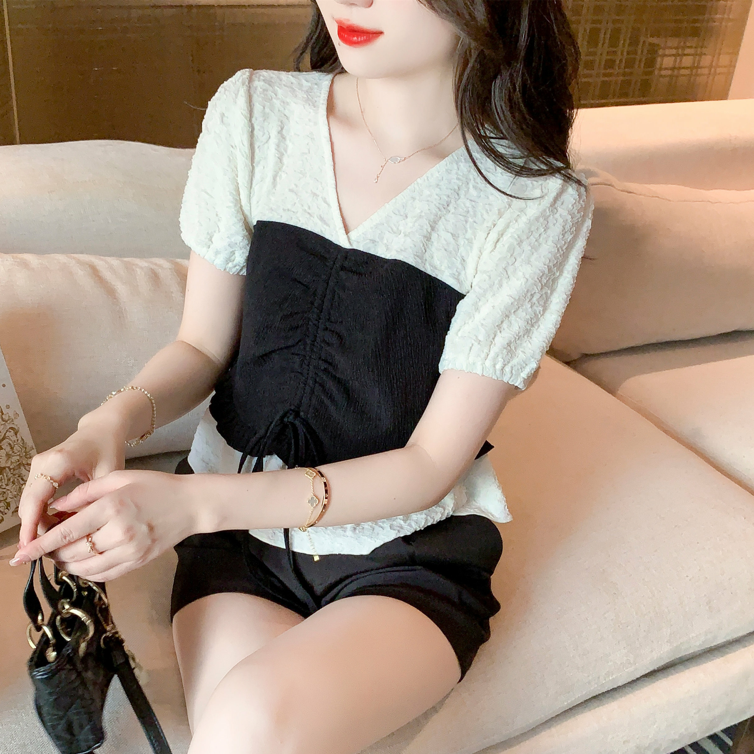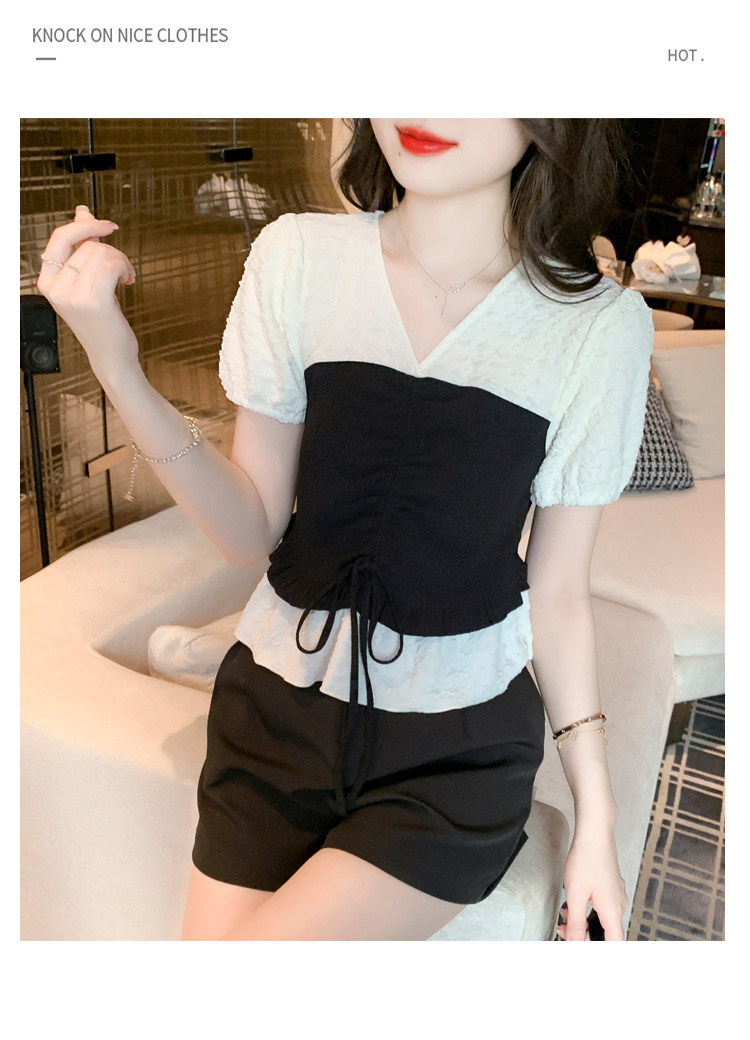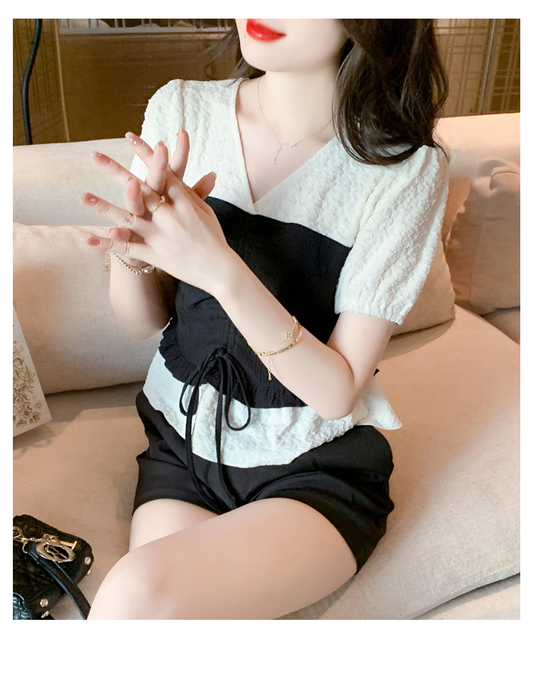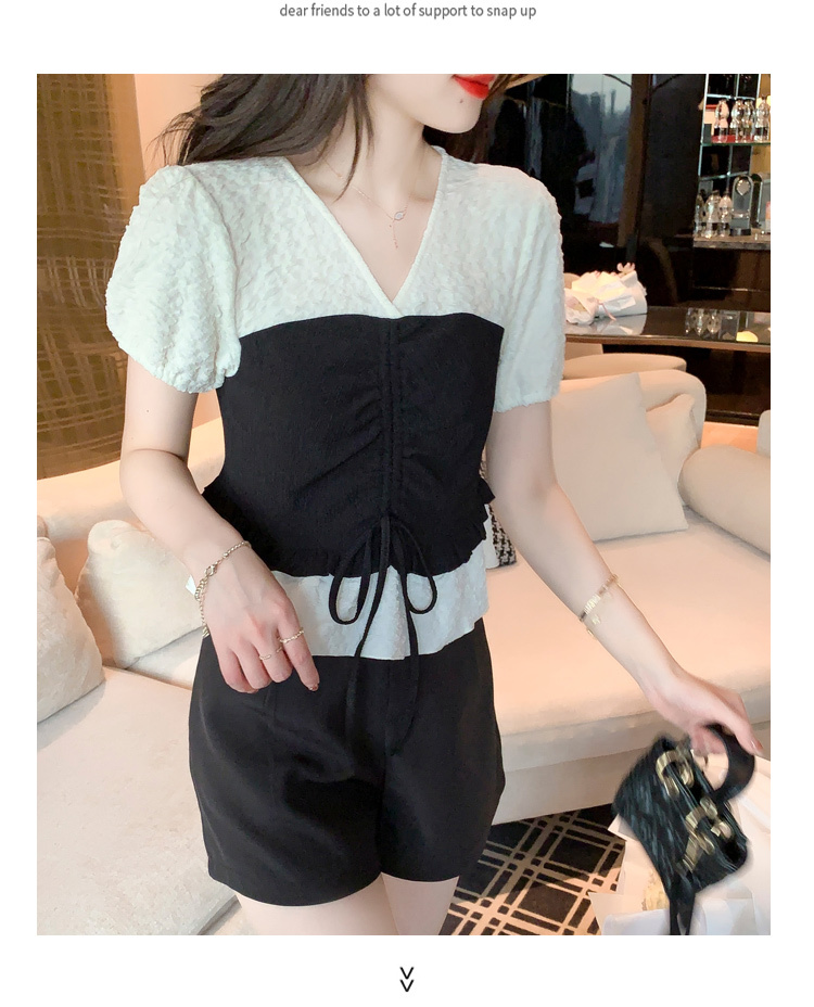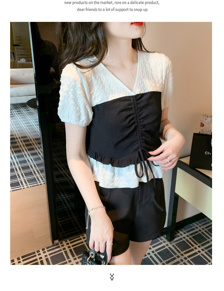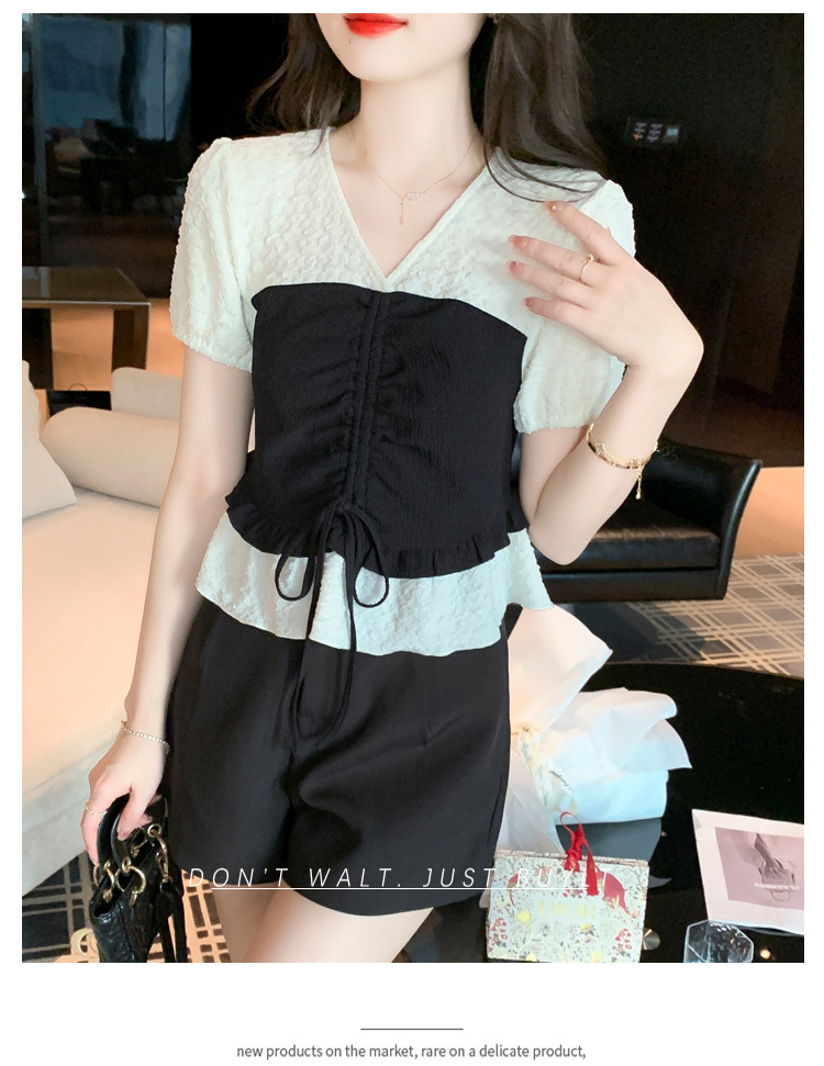 限量特惠|甜美拼接撞色抽繩褶皺雪紡衫(03H3181)