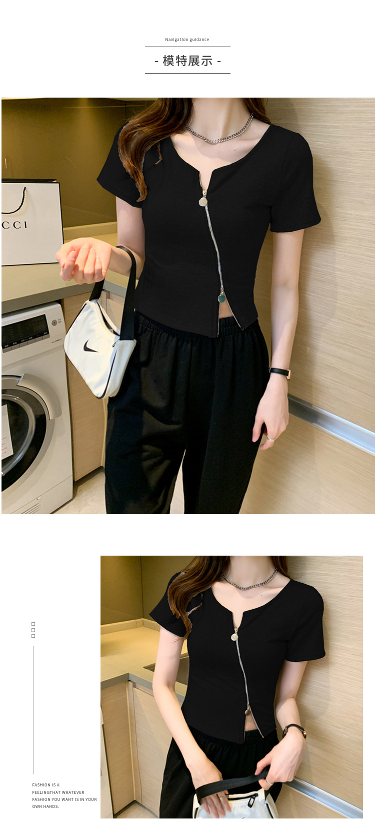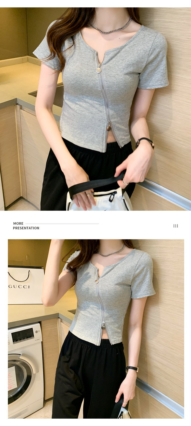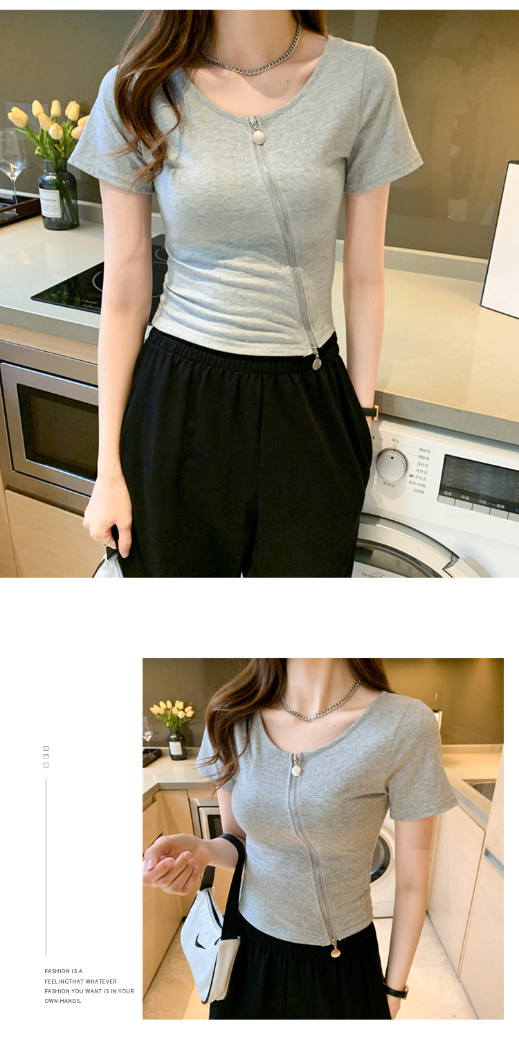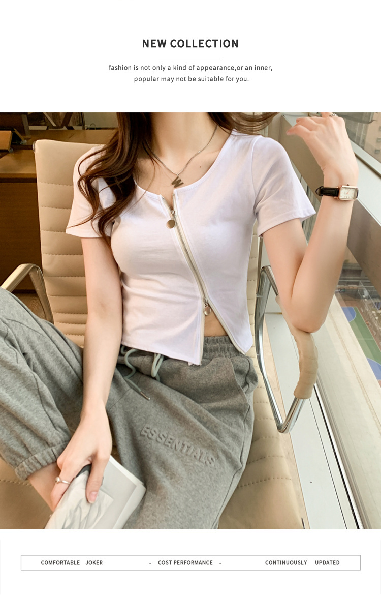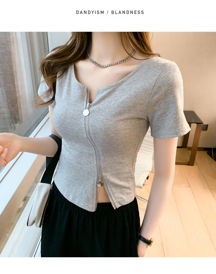 限量特惠|心機舒適拉鍊開叉純棉T恤-3色(03H3208)