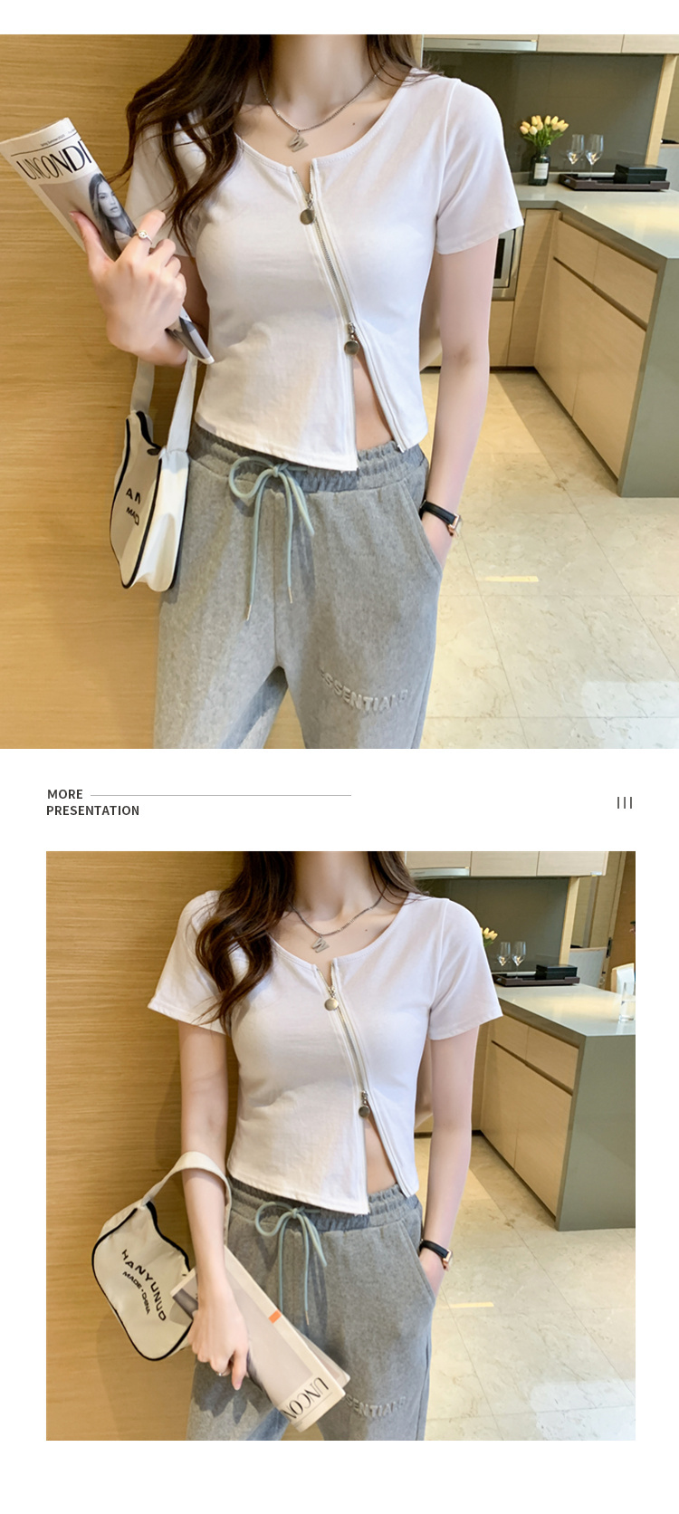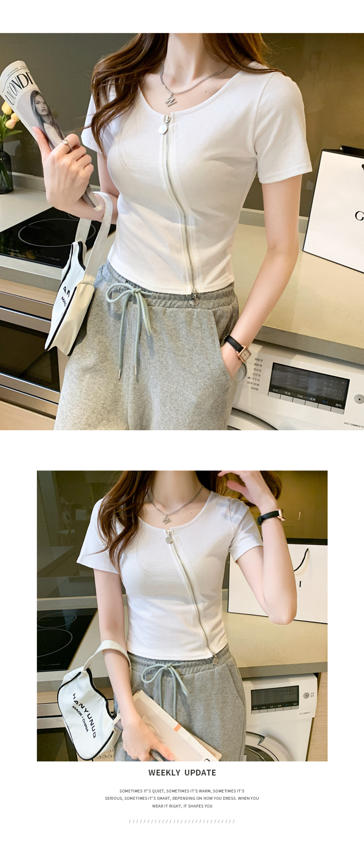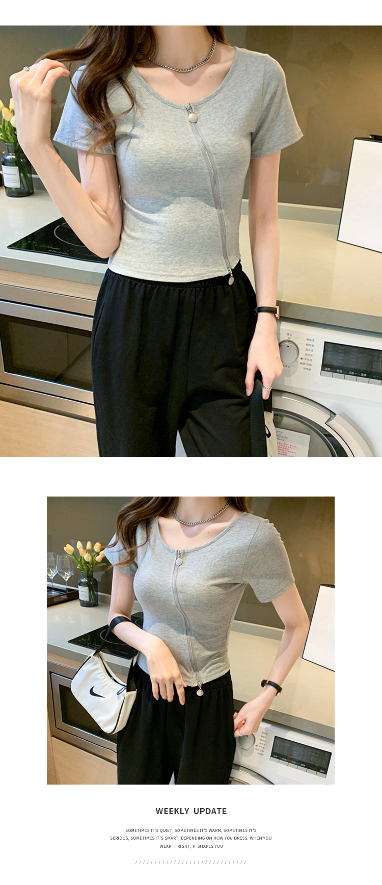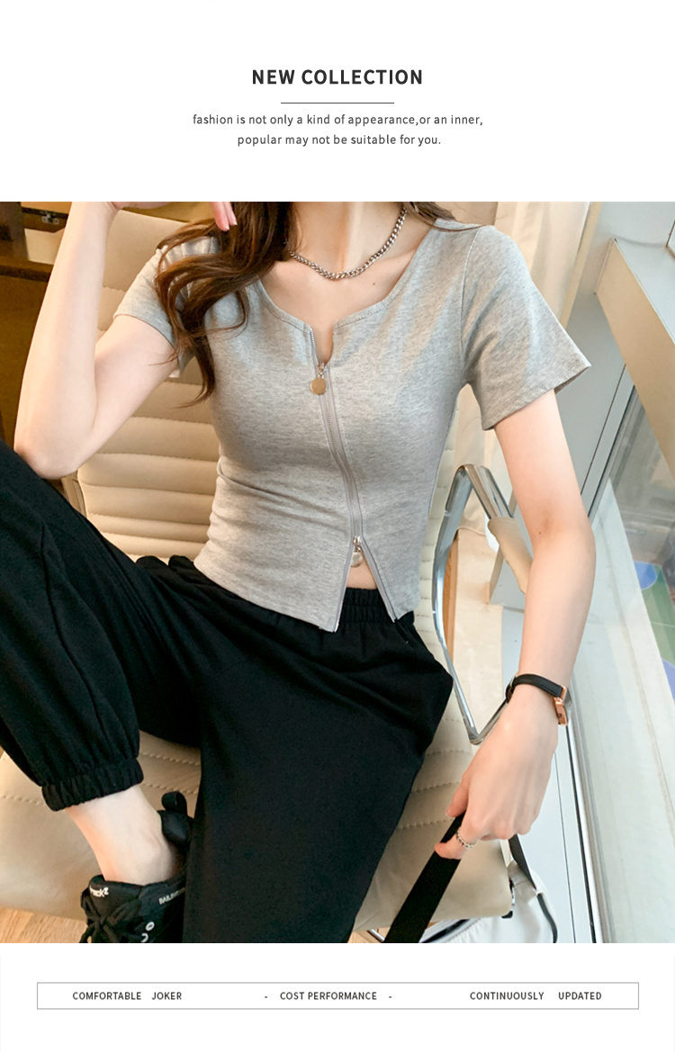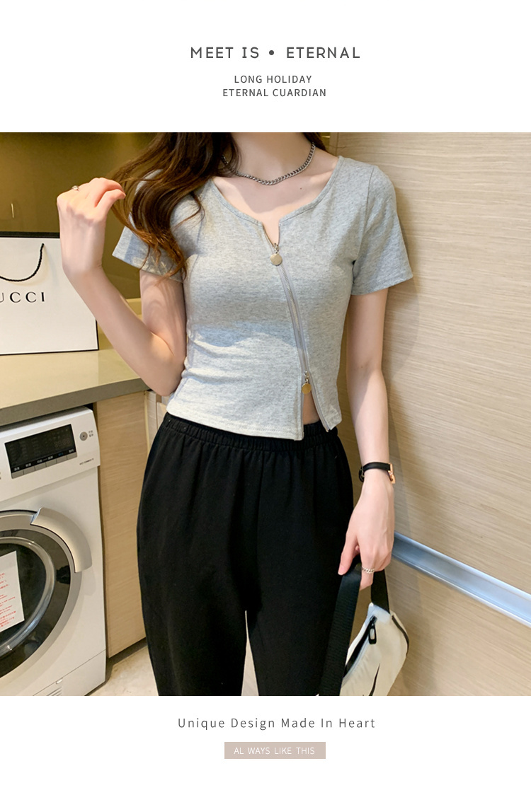 限量特惠|心機舒適拉鍊開叉純棉T恤-3色(03H3208)