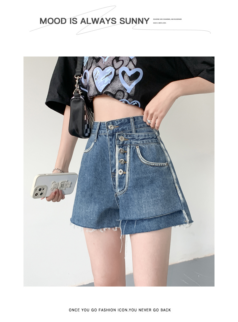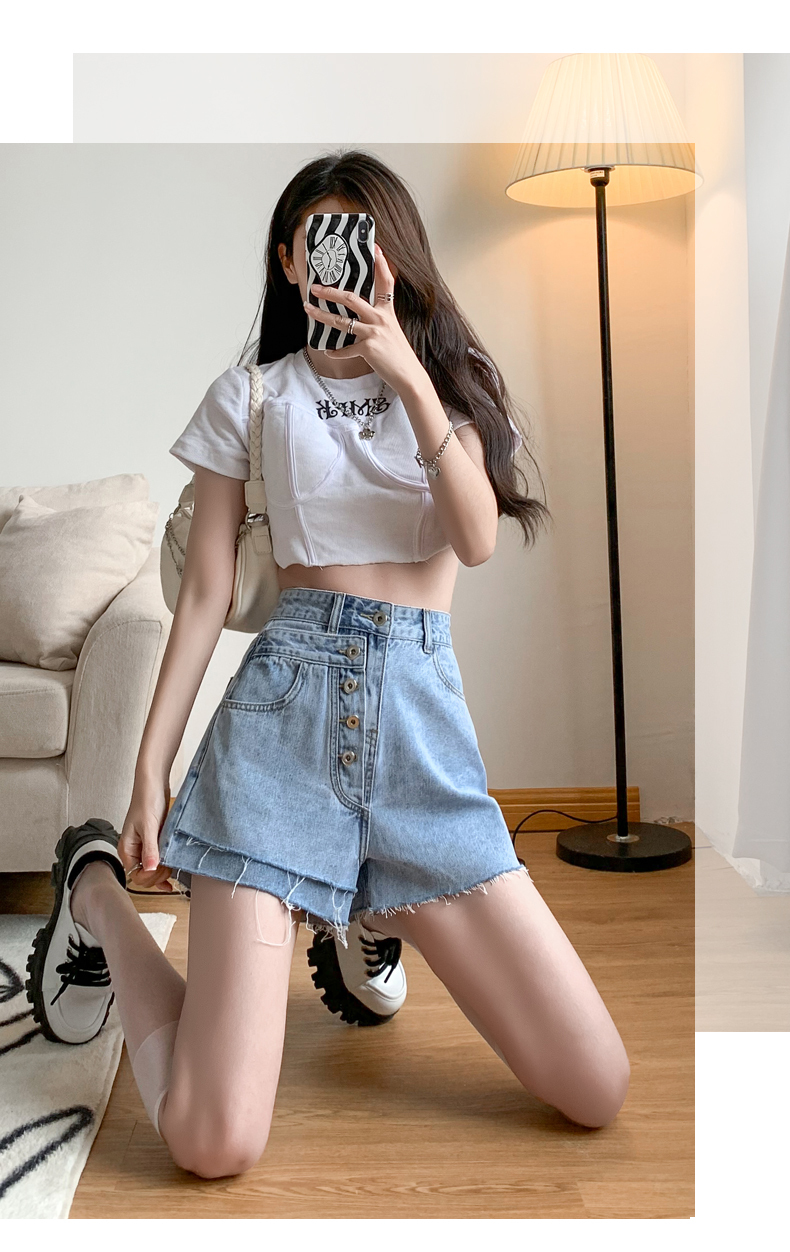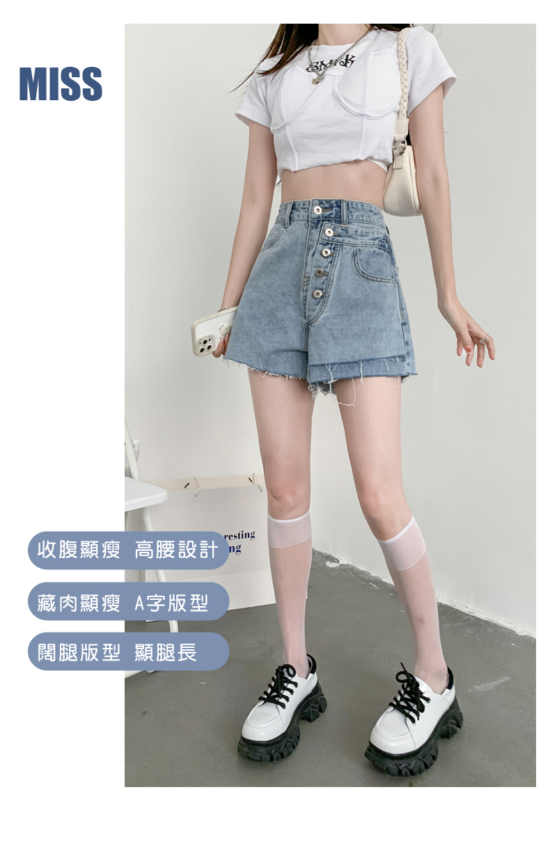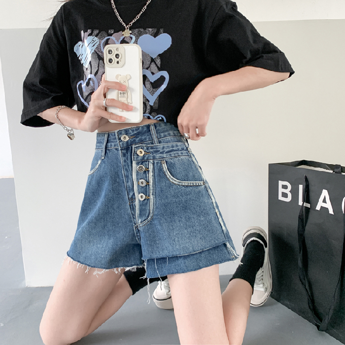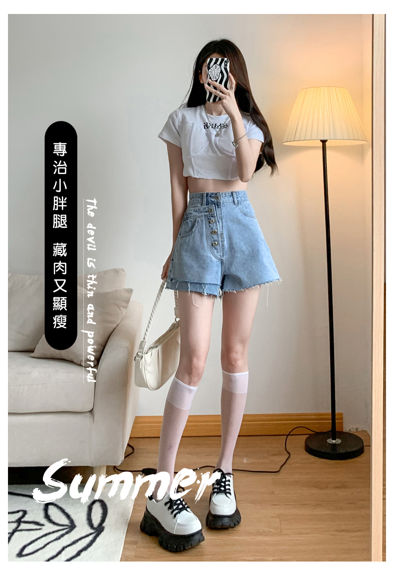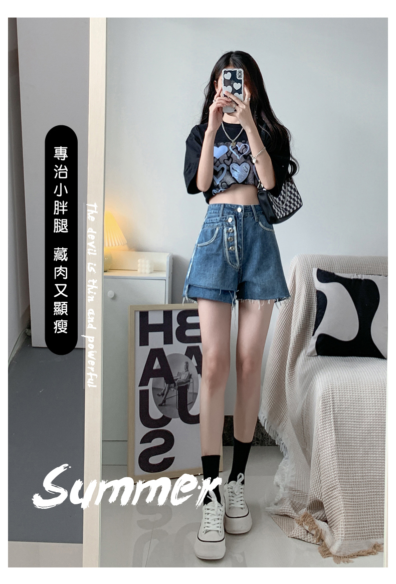 限量特惠|美式不規則拼接排扣闊腿牛仔褲-2色(03H3211)