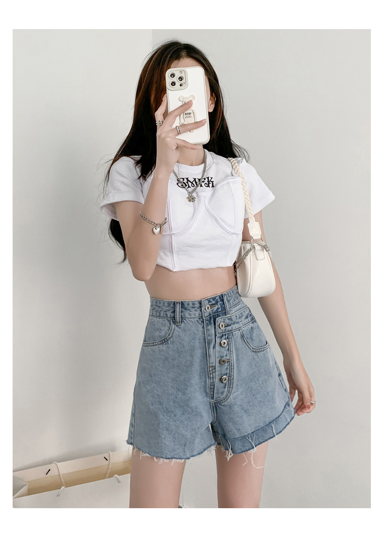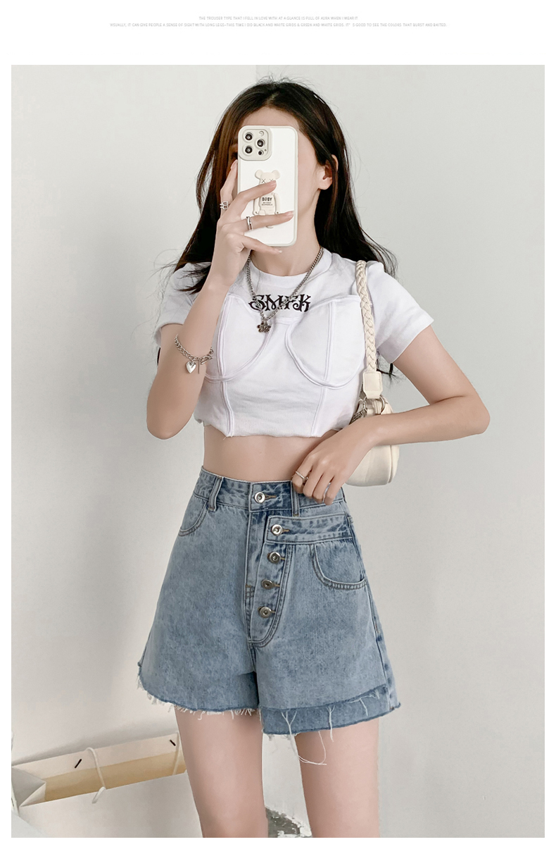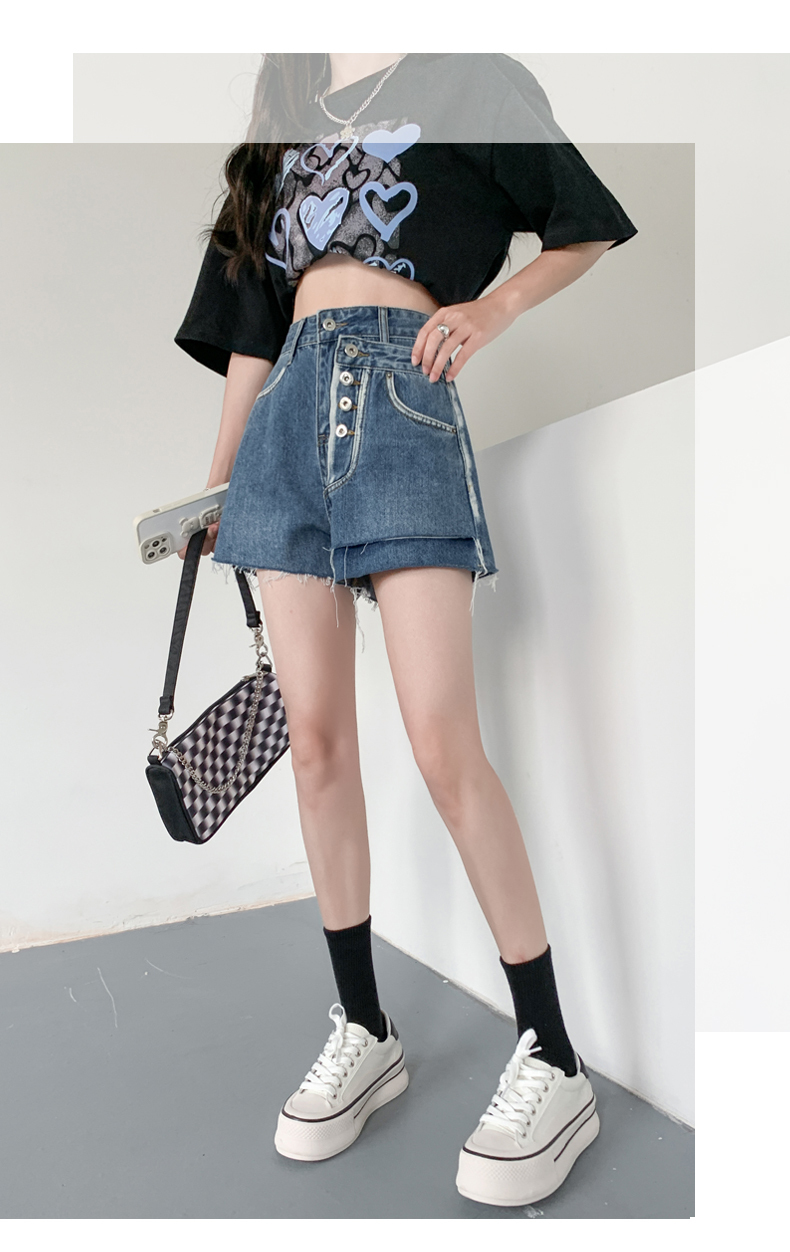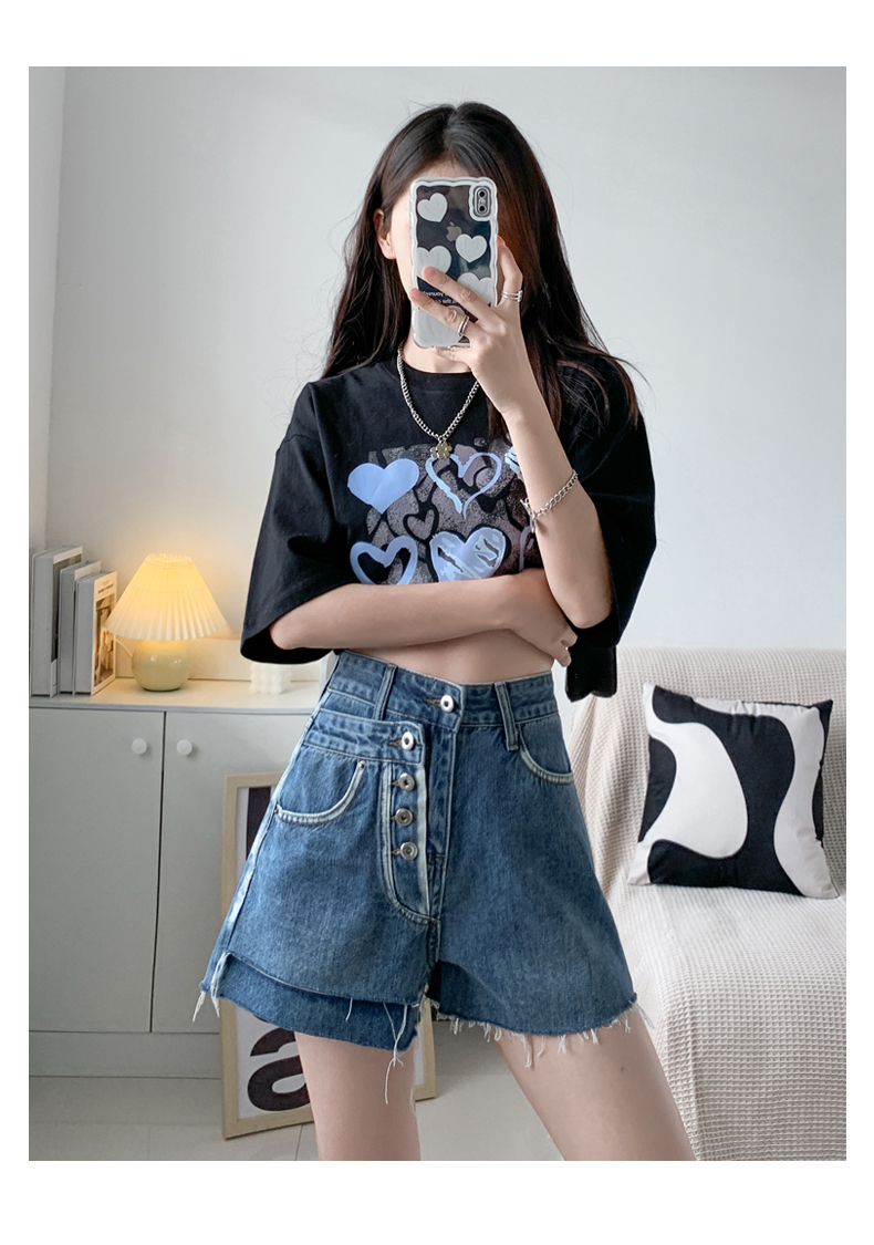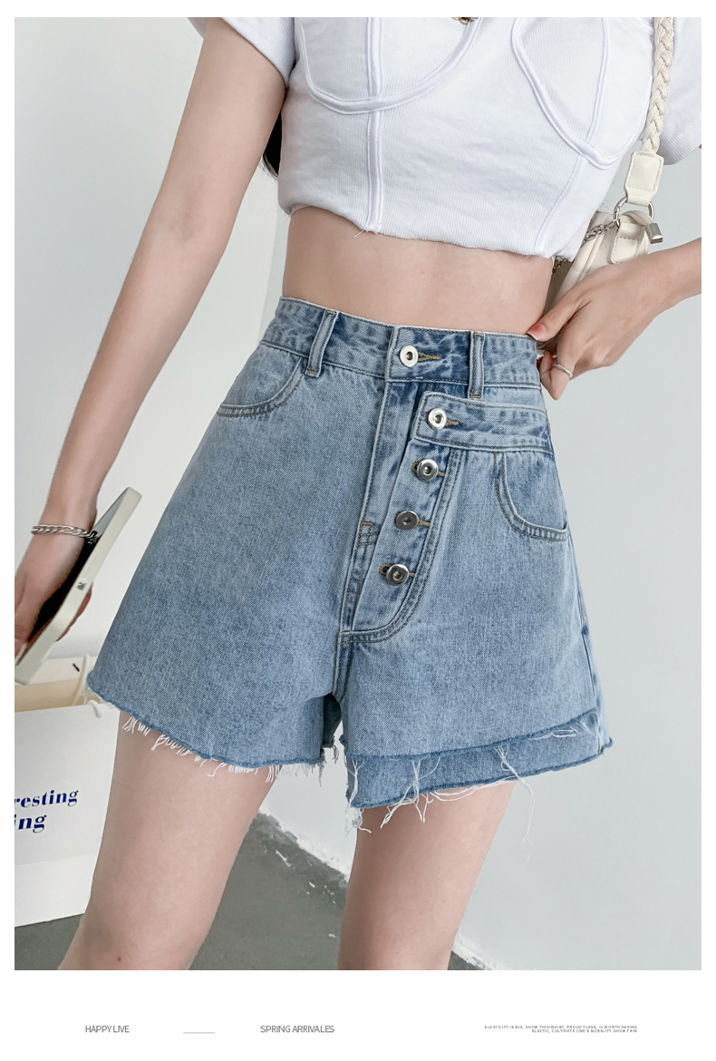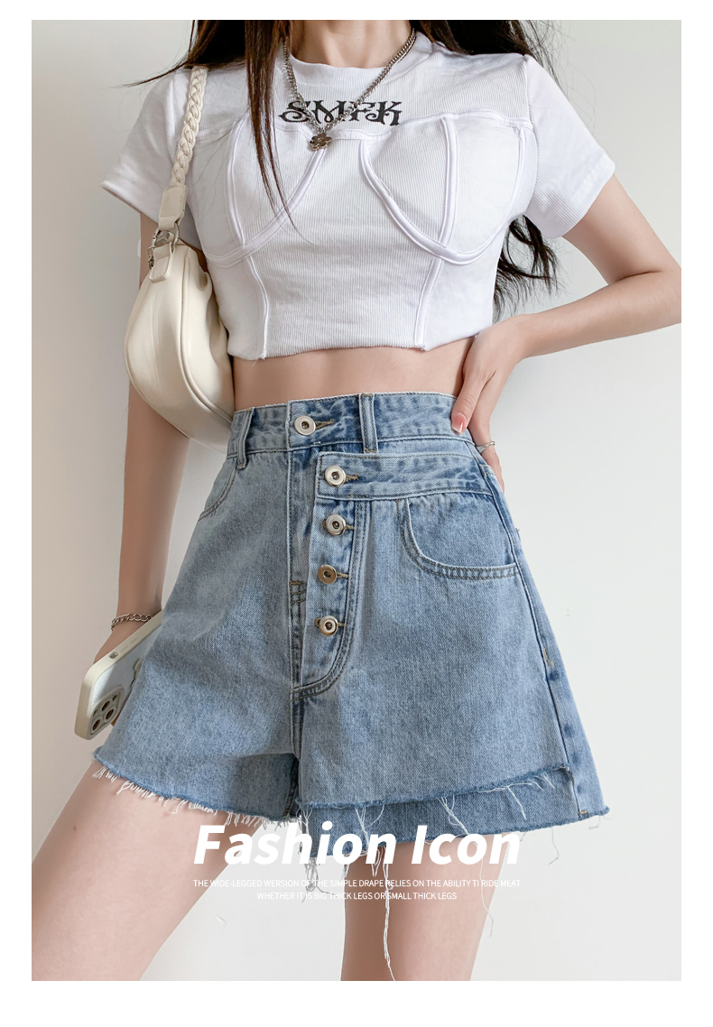 限量特惠|美式不規則拼接排扣闊腿牛仔褲-2色(03H3211)