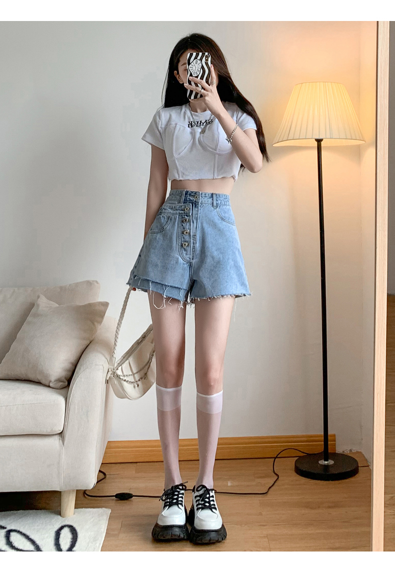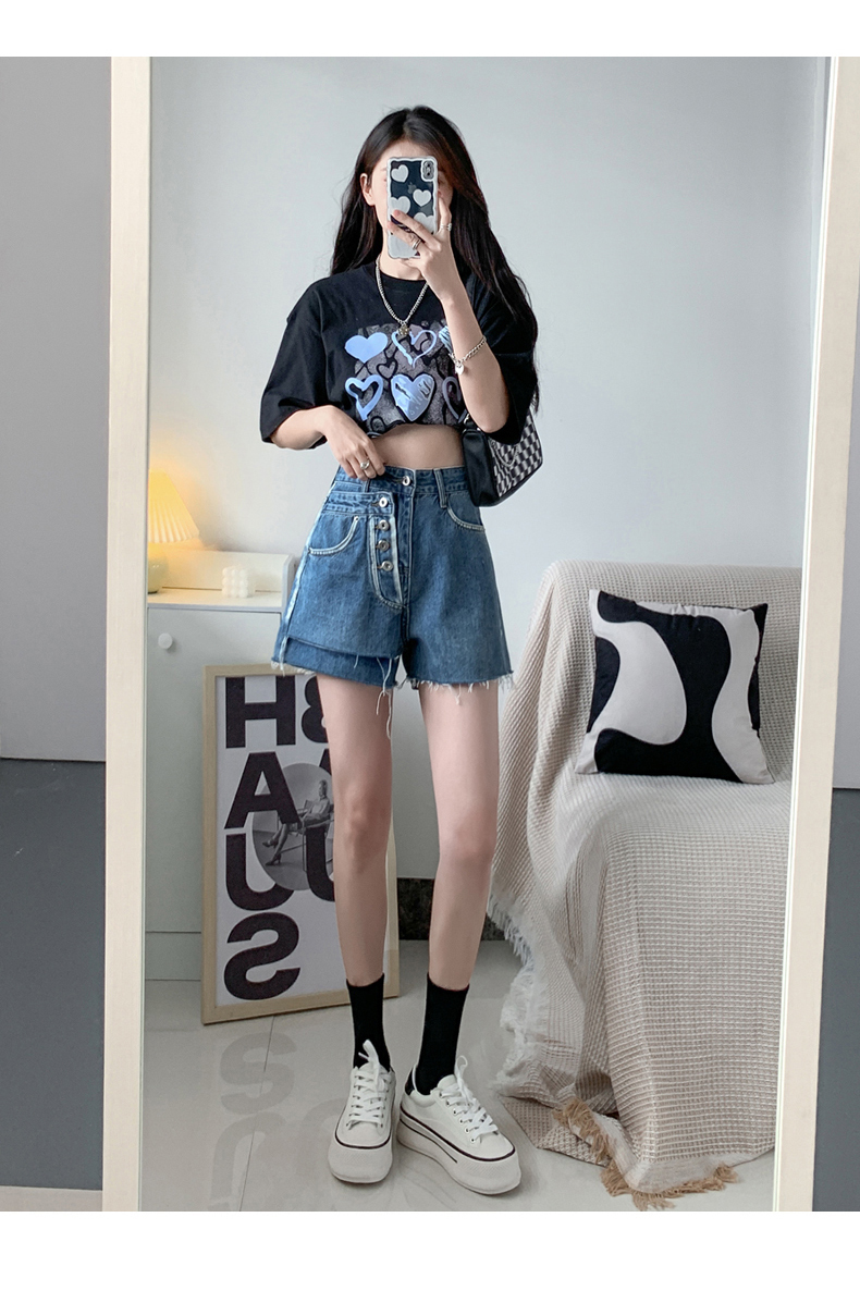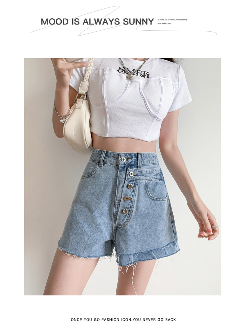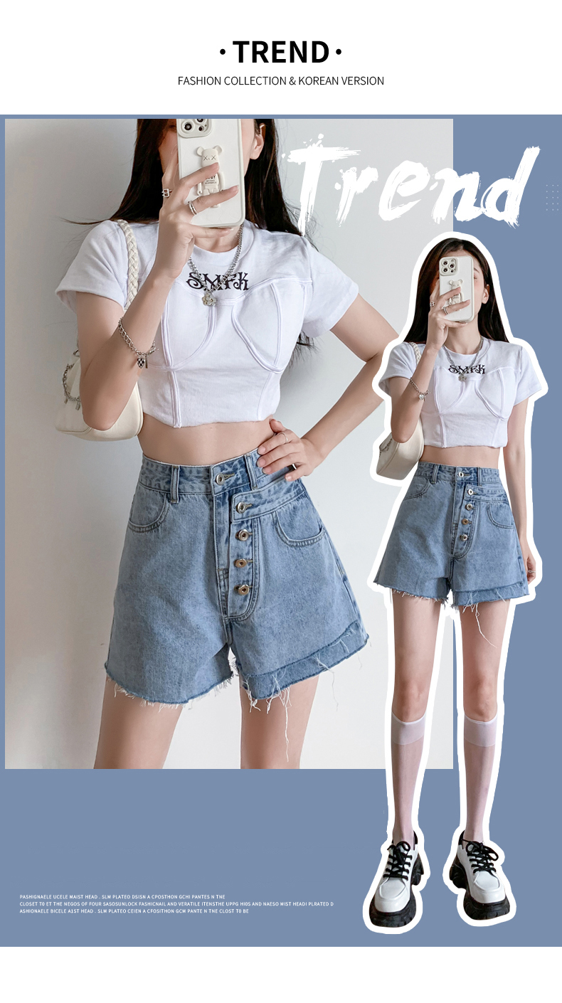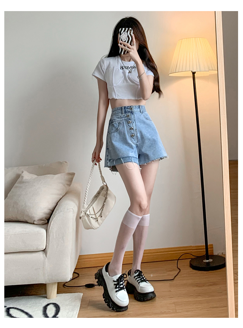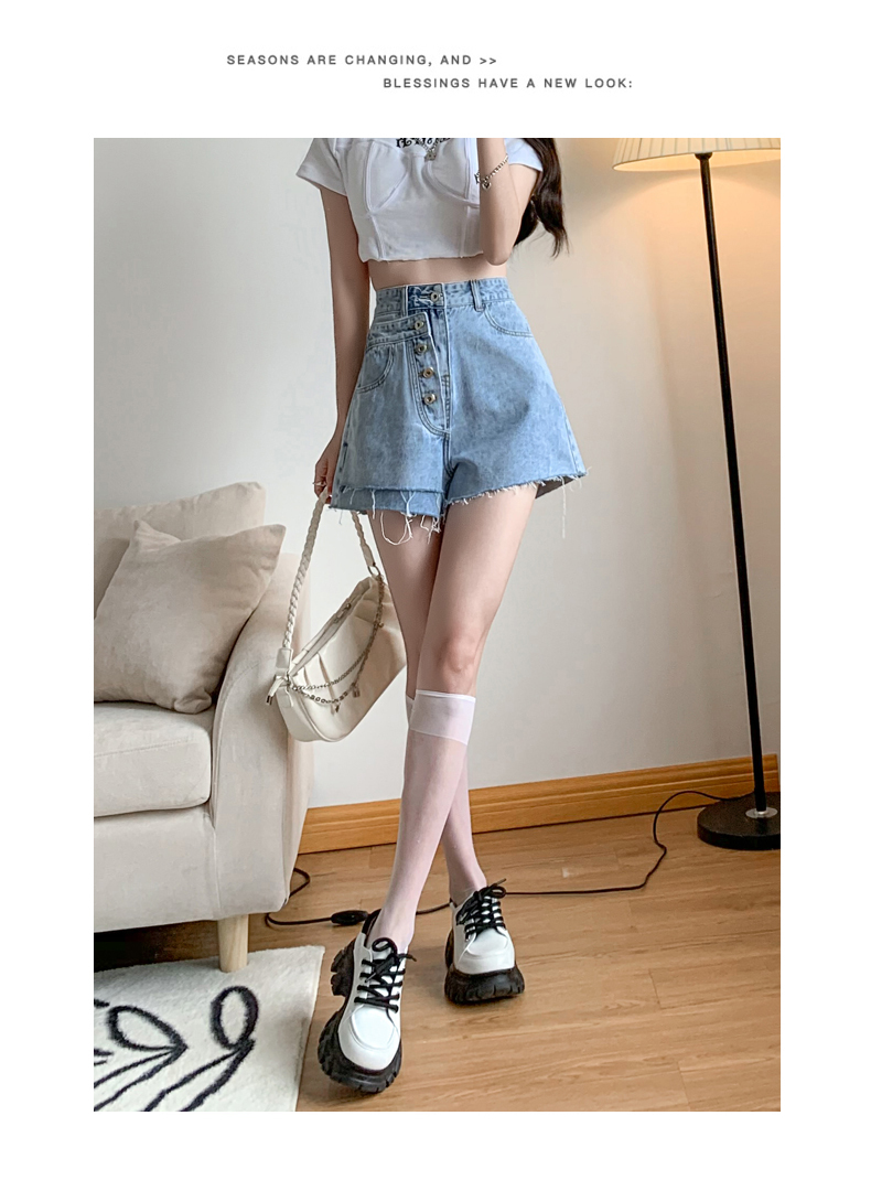 限量特惠|美式不規則拼接排扣闊腿牛仔褲-2色(03H3211)