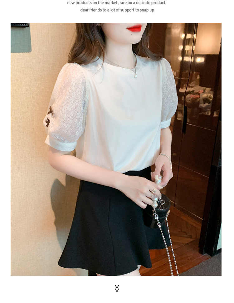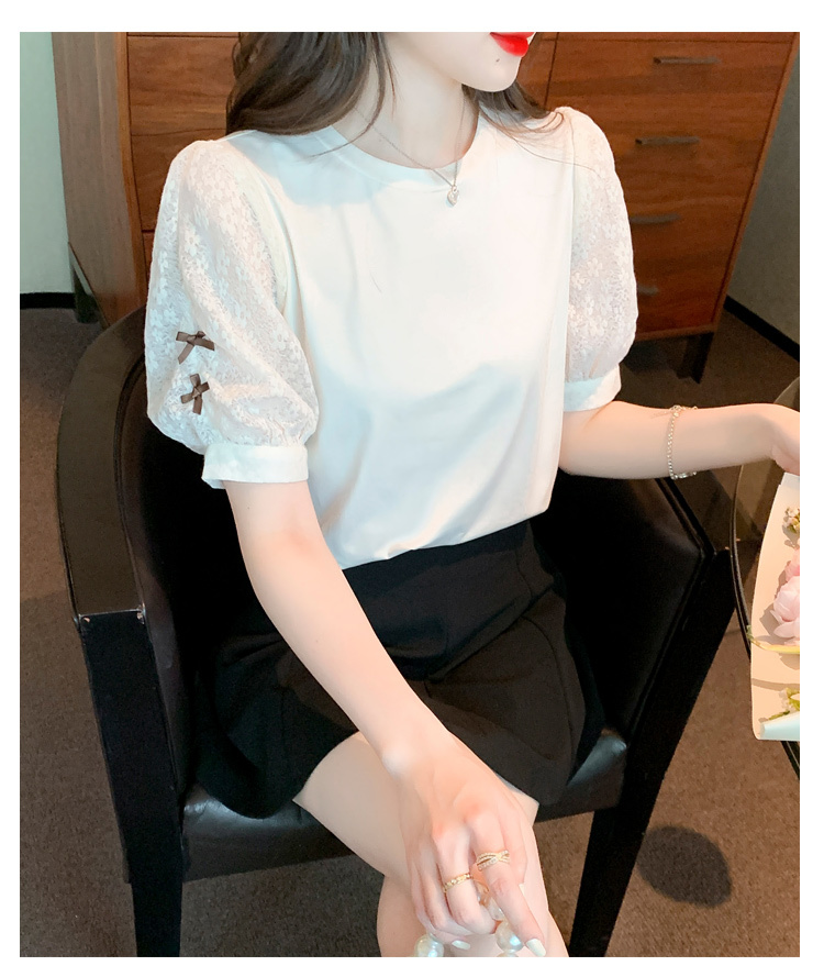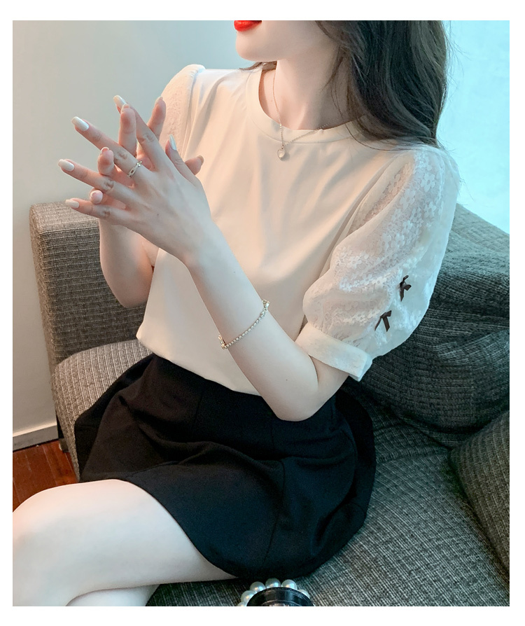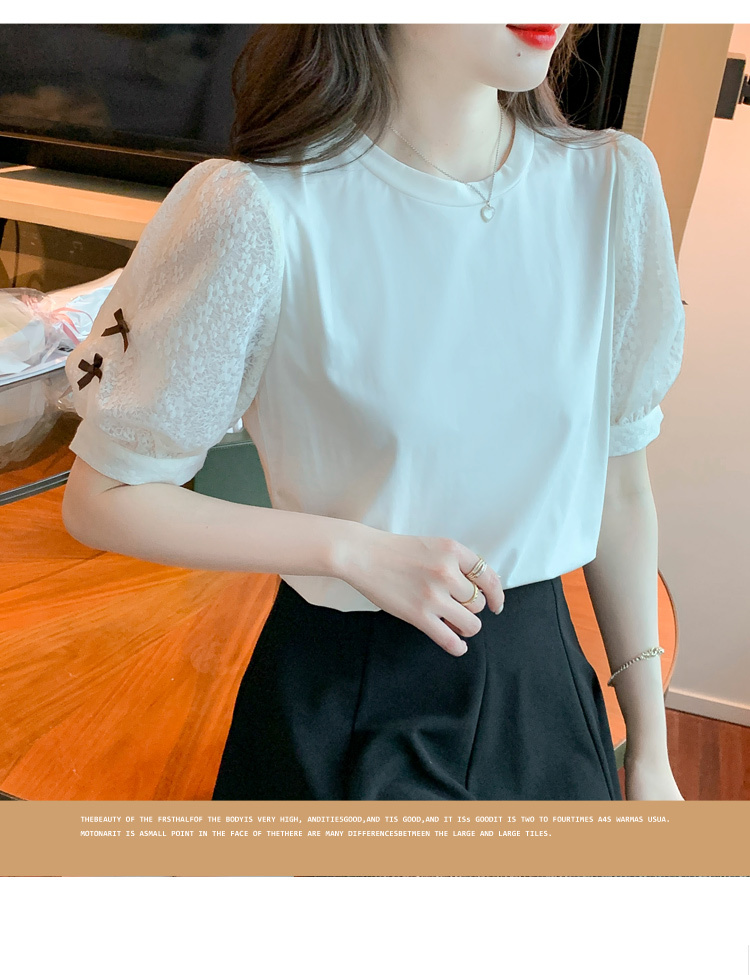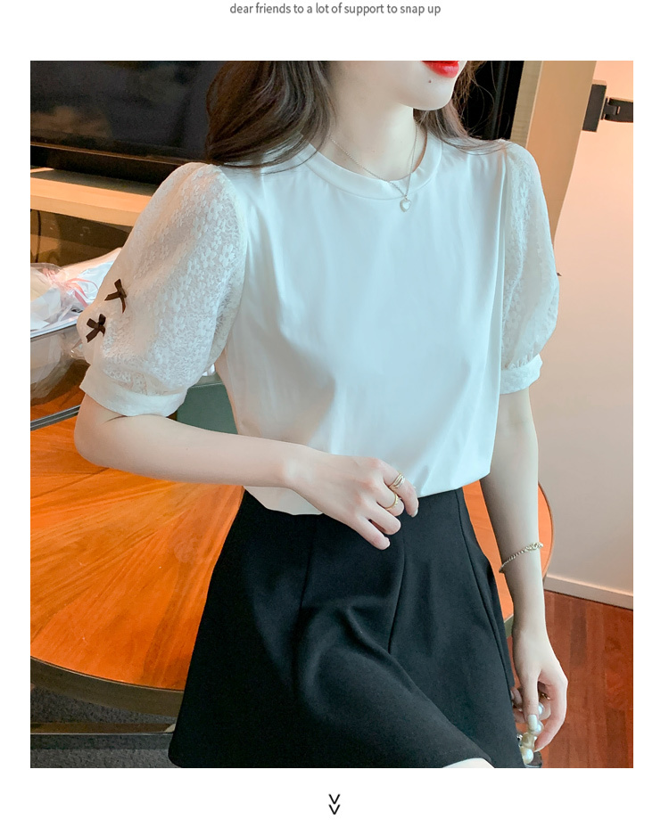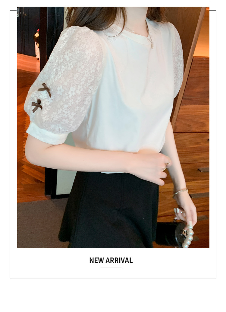 限量特惠|舒適拼接蕾絲蝴蝶結T恤(03H3217)