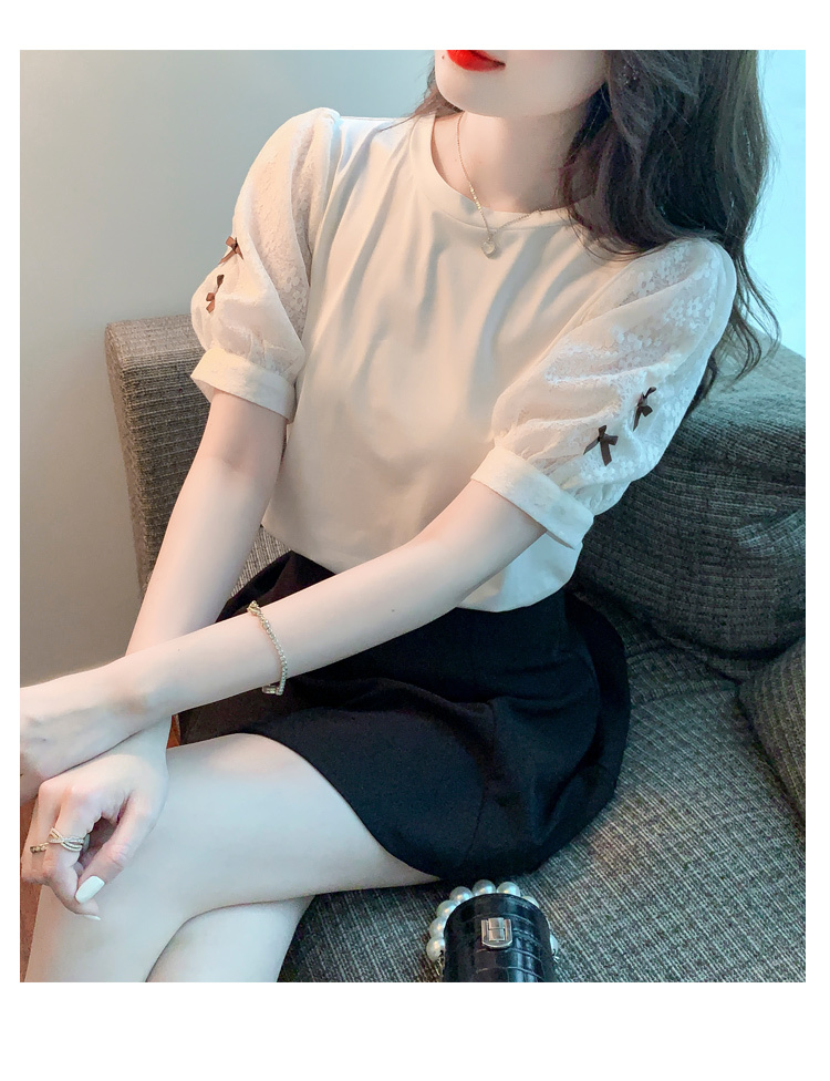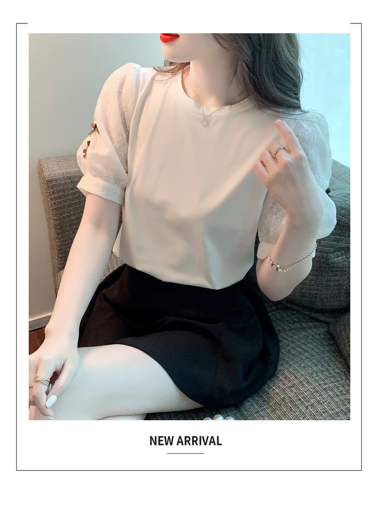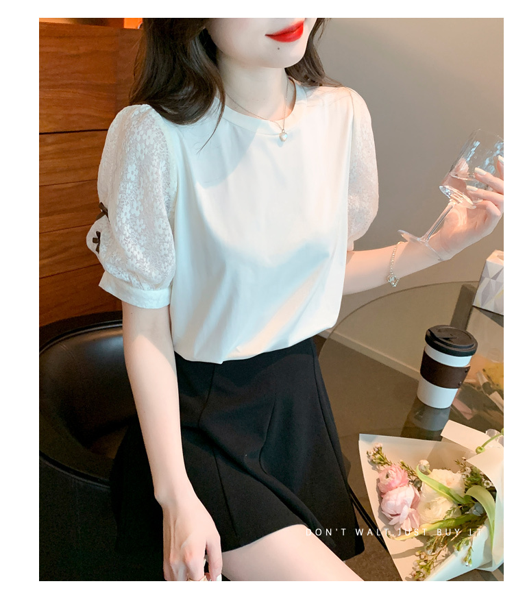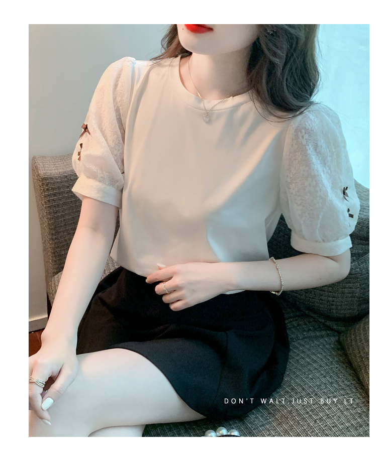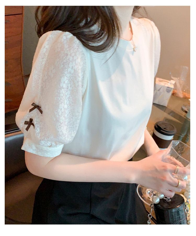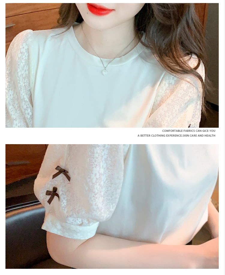 限量特惠|舒適拼接蕾絲蝴蝶結T恤(03H3217)