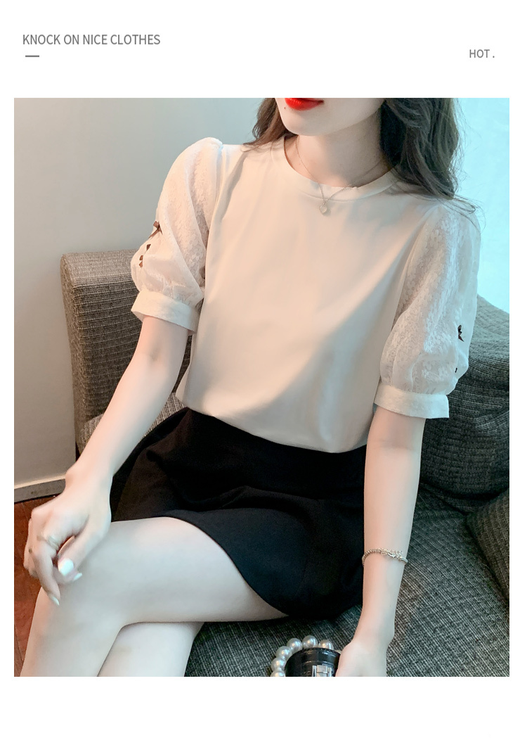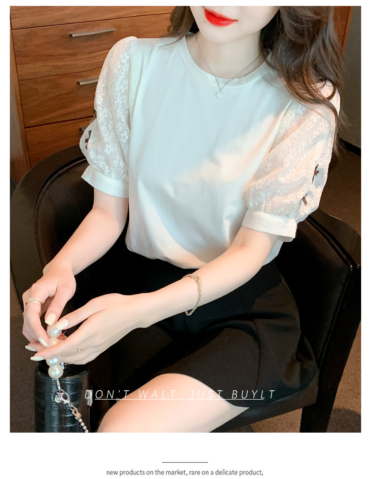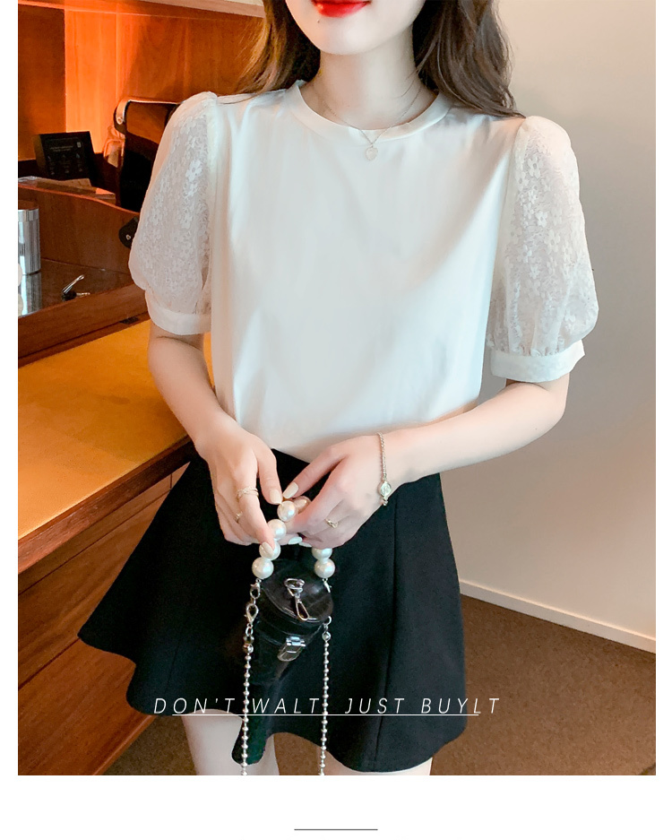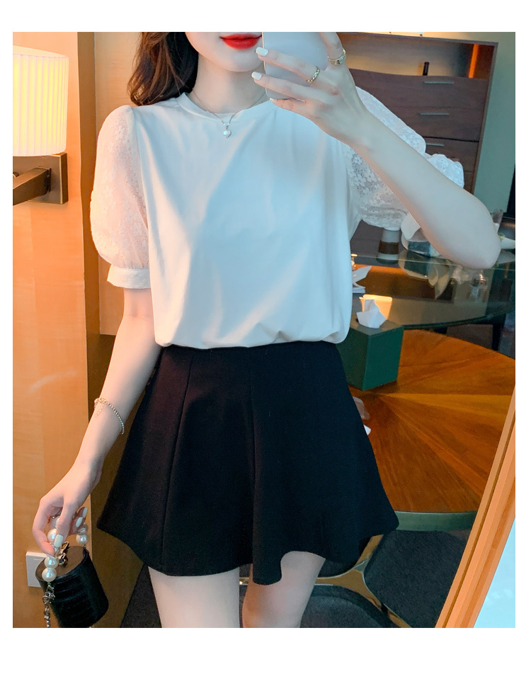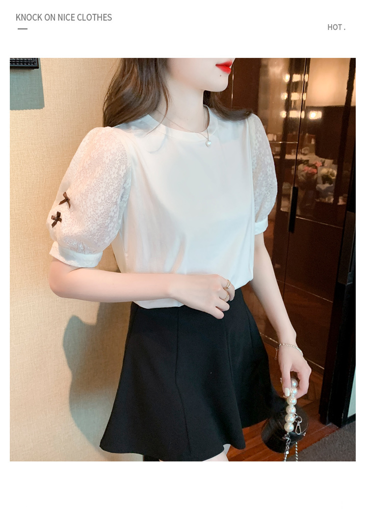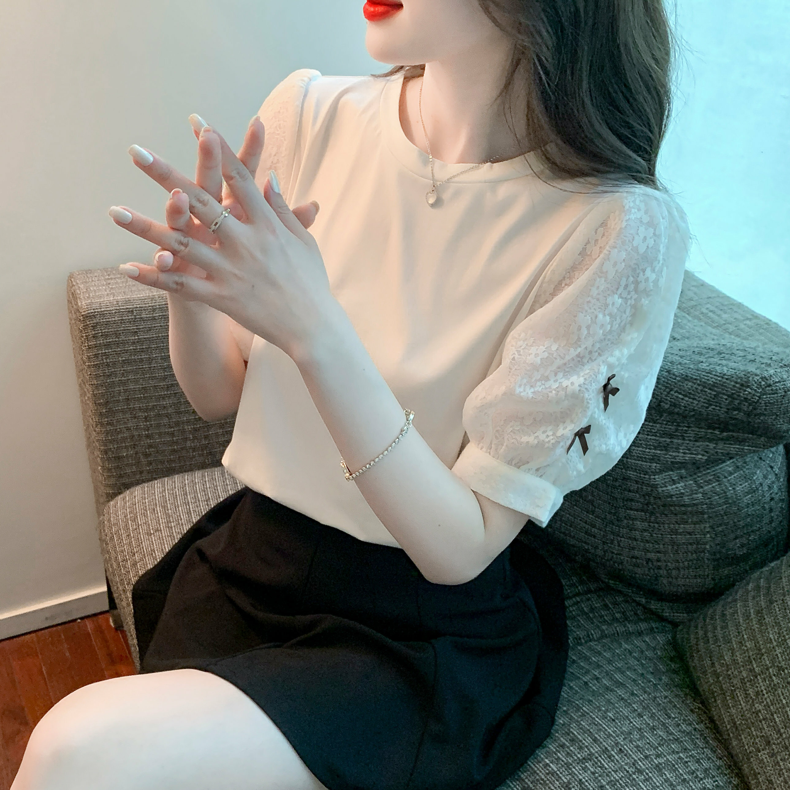 限量特惠|舒適拼接蕾絲蝴蝶結T恤(03H3217)