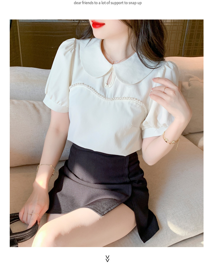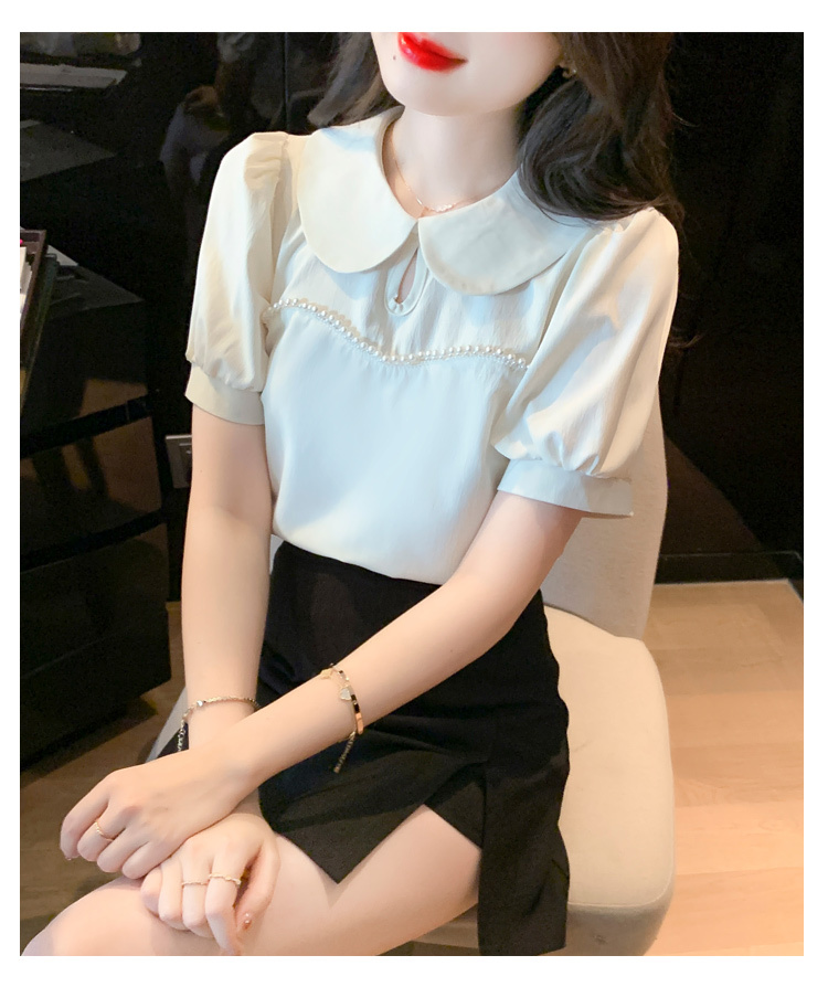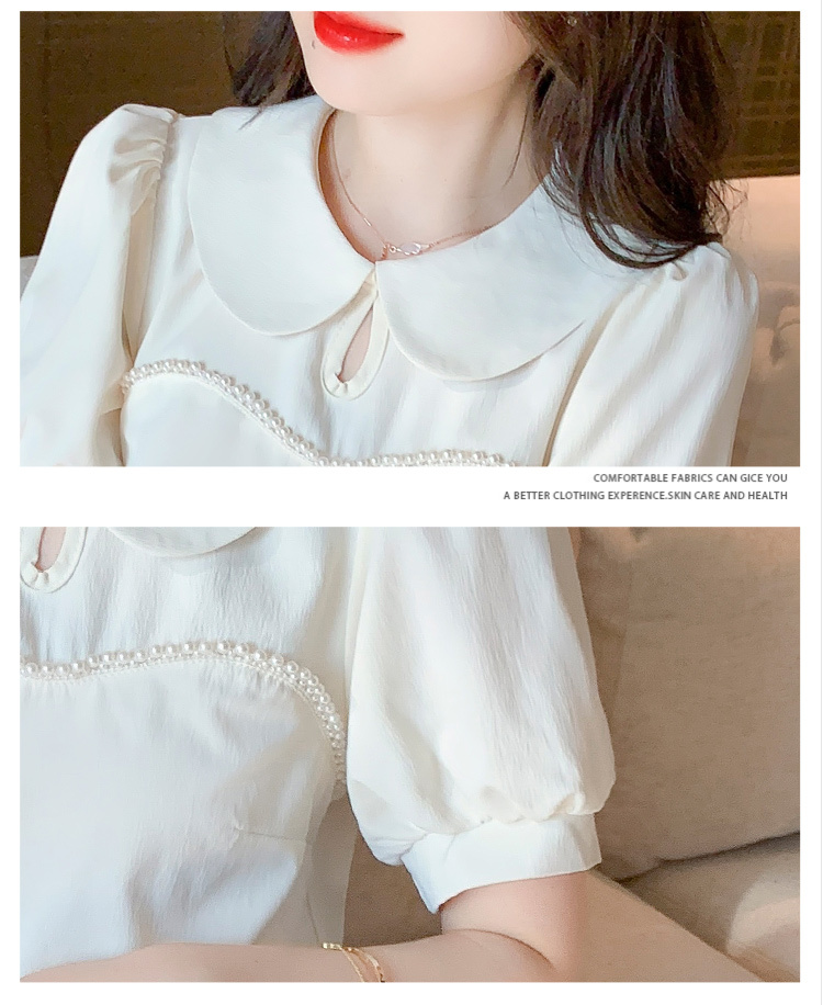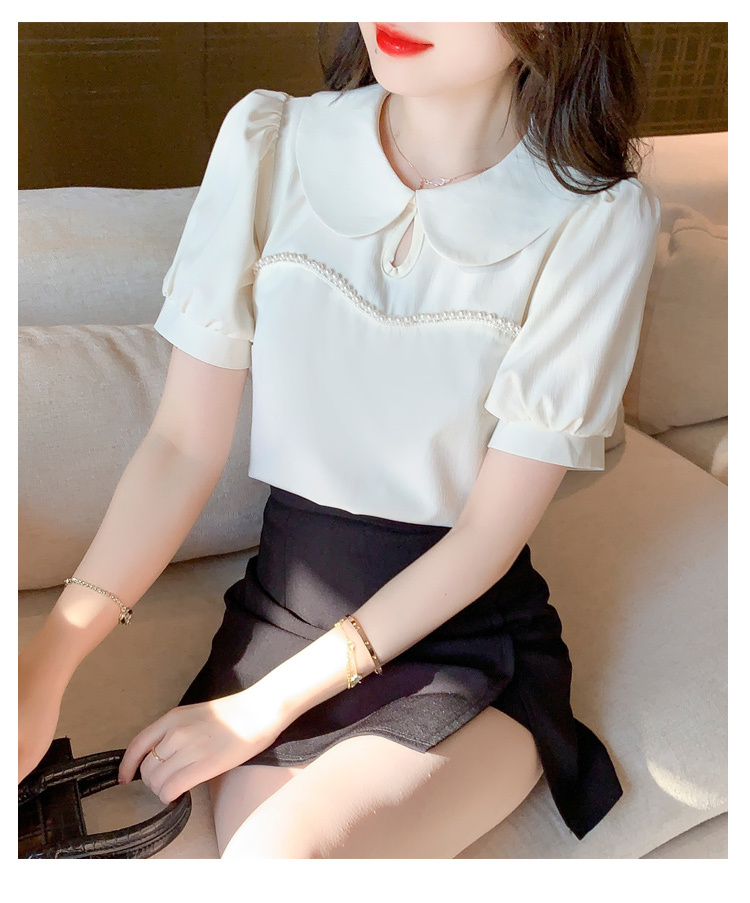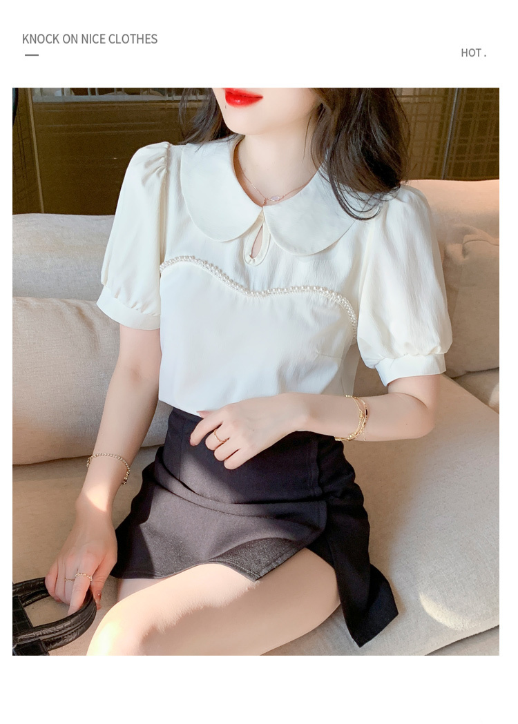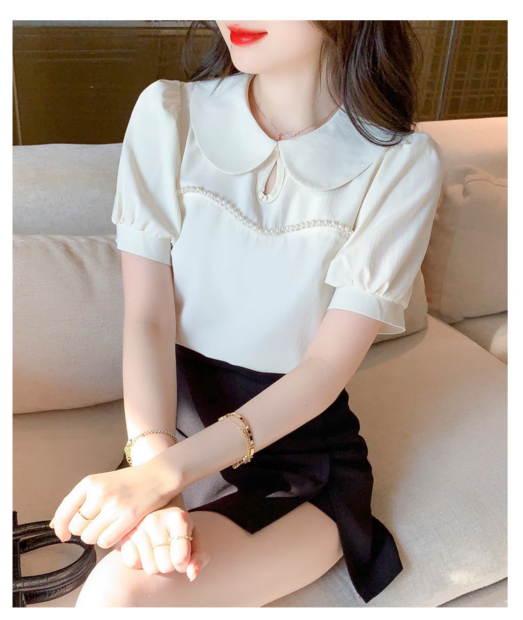 限量特惠|氣質娃娃領釘珠雪紡衫(03H3223)