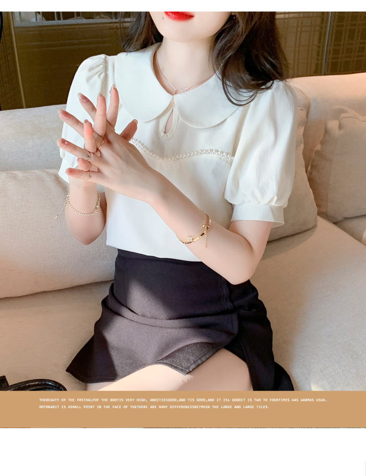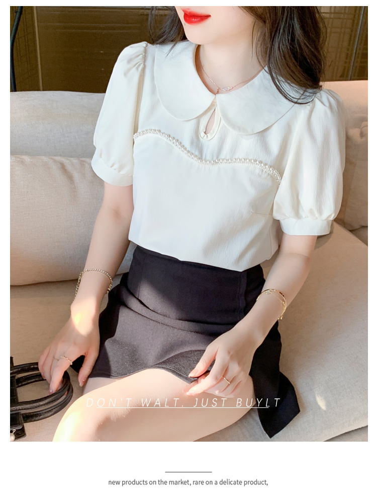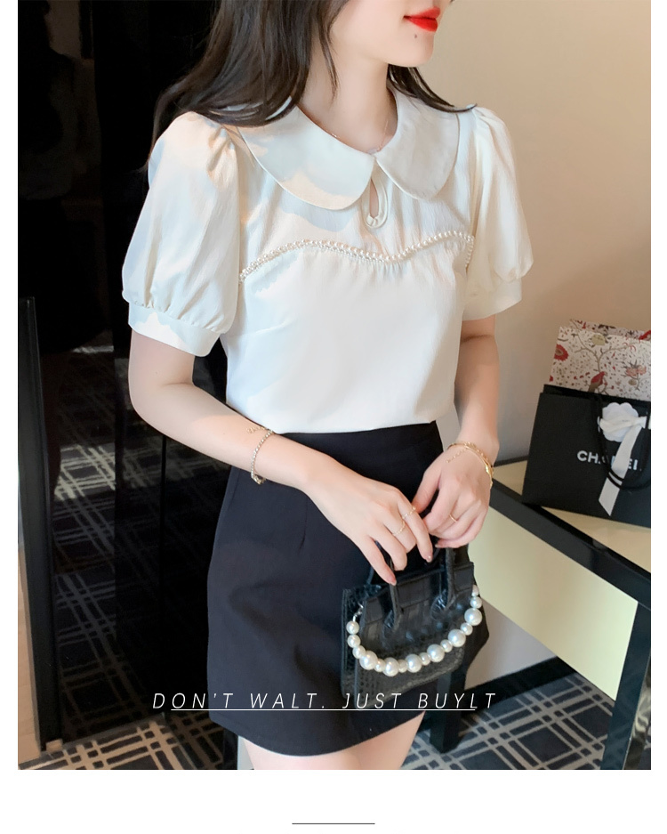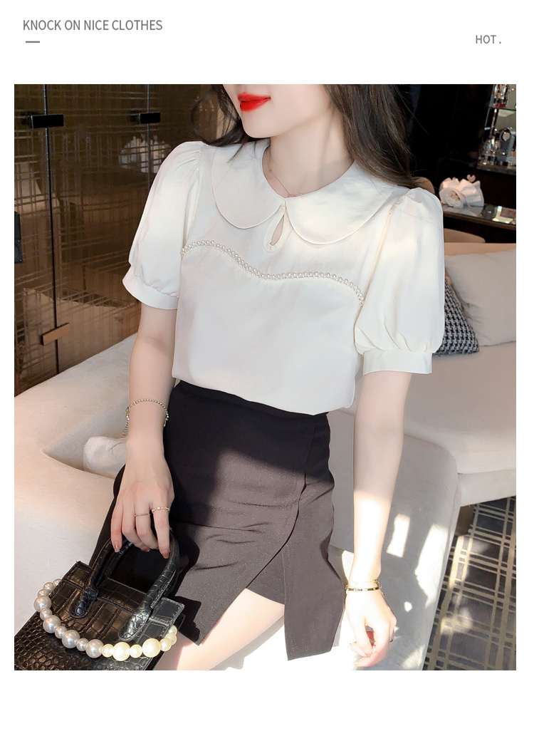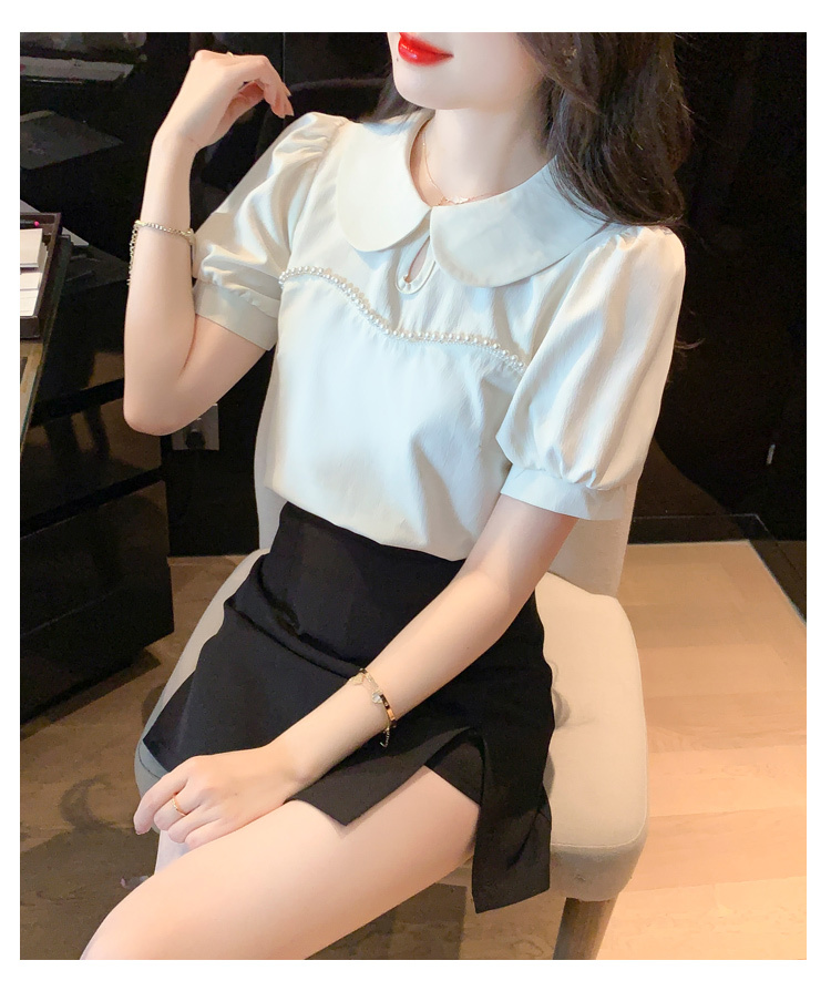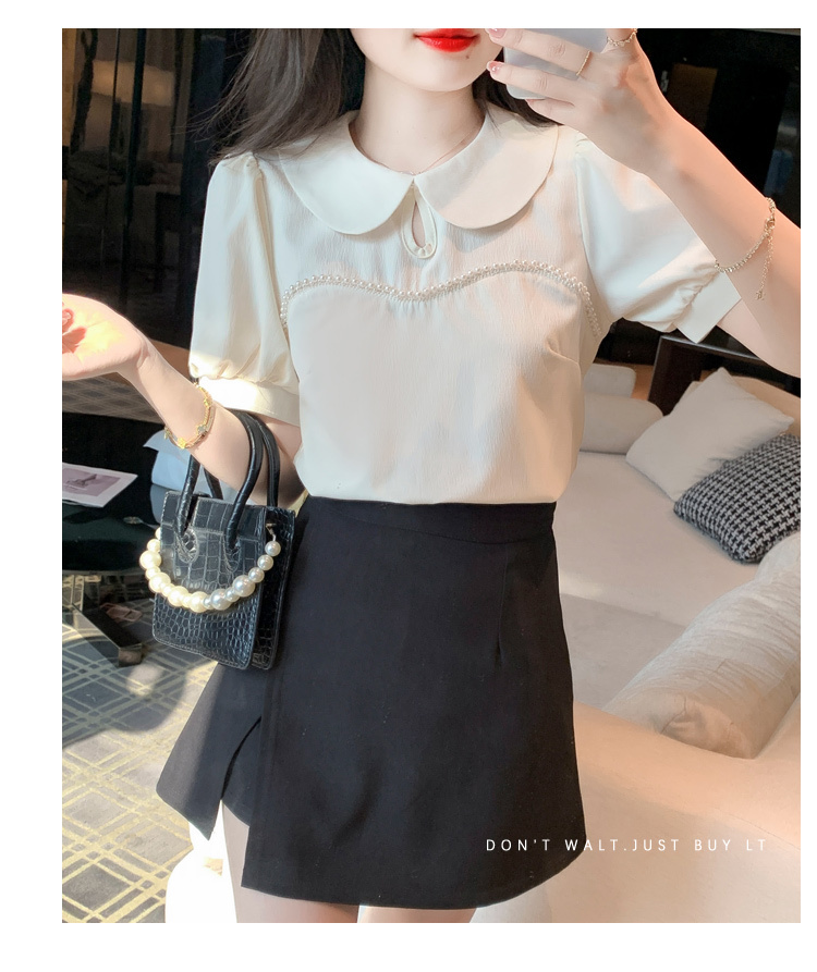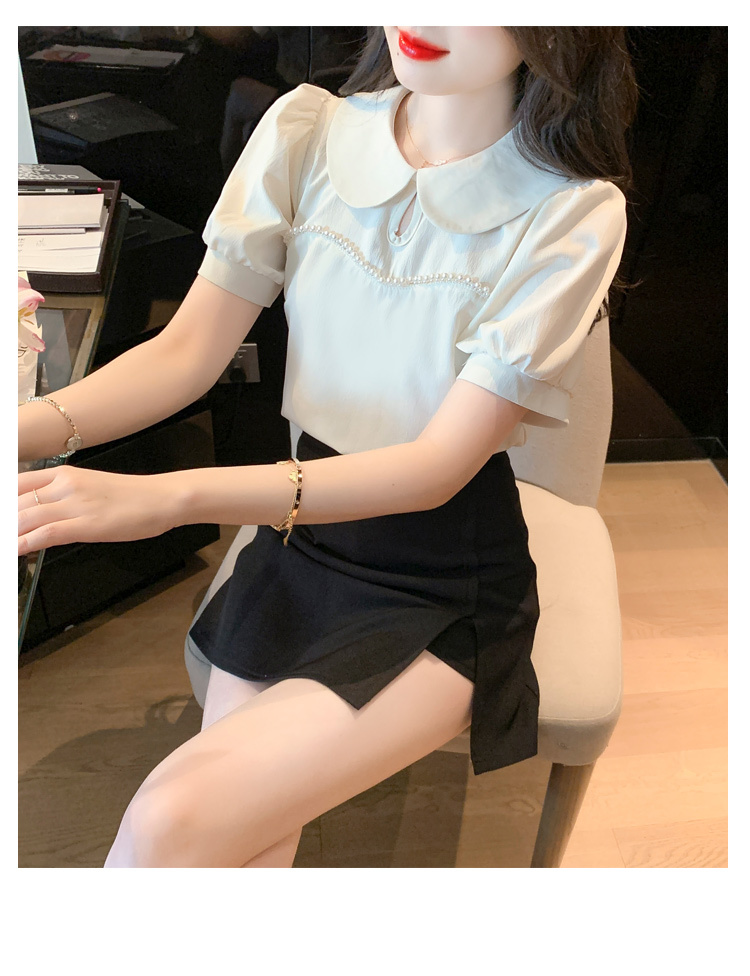 限量特惠|氣質娃娃領釘珠雪紡衫(03H3223)