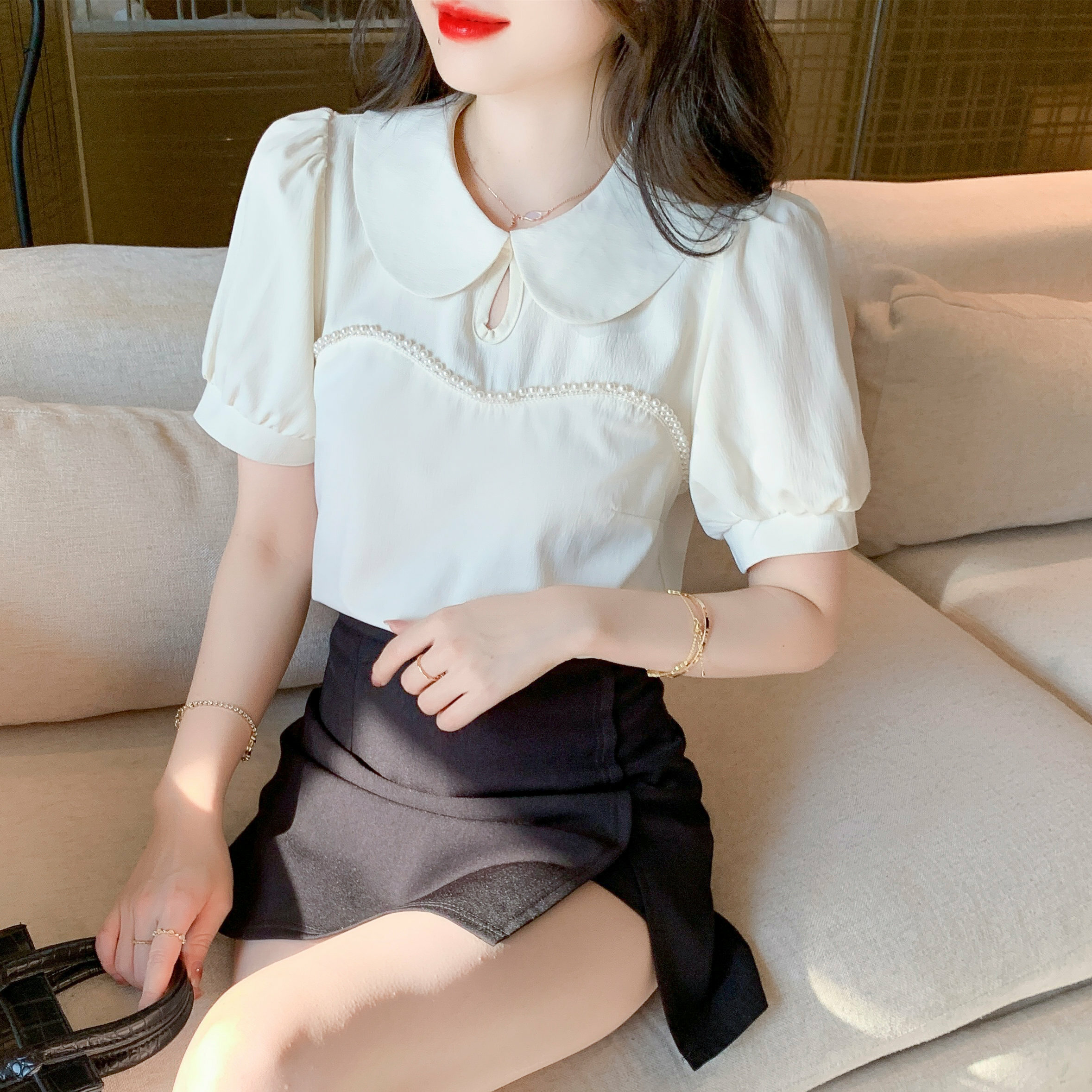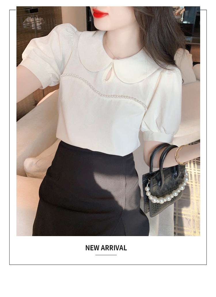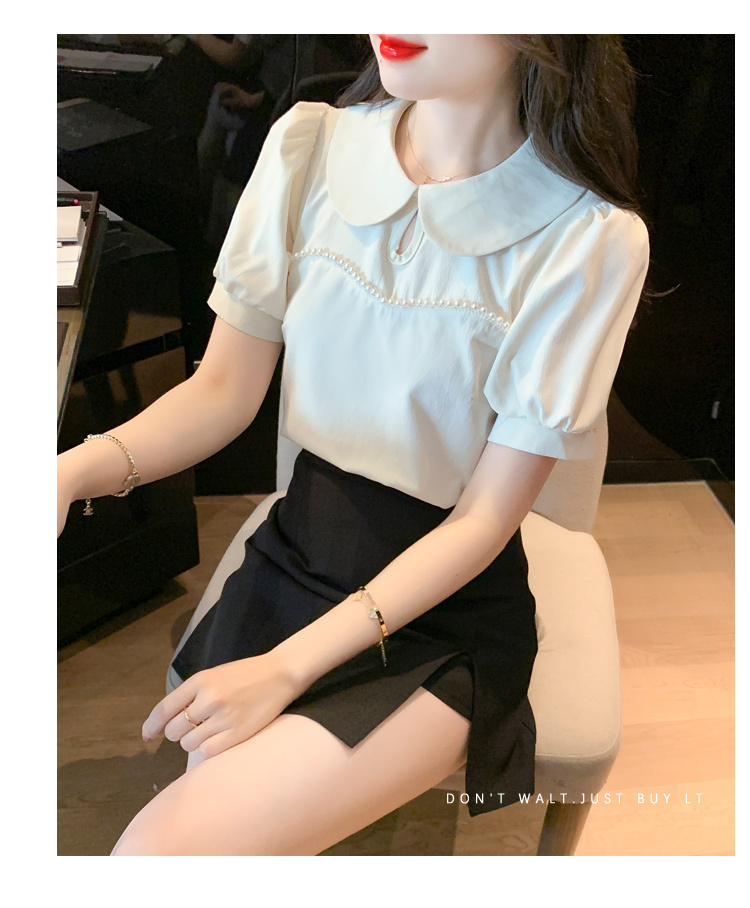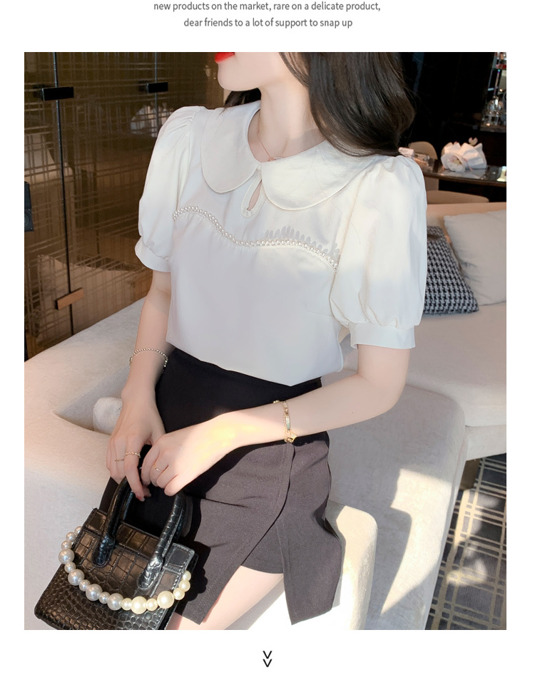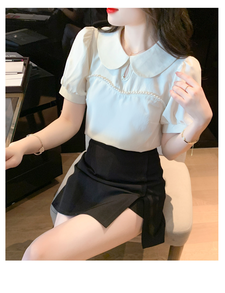 限量特惠|氣質娃娃領釘珠雪紡衫(03H3223)