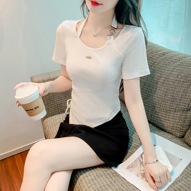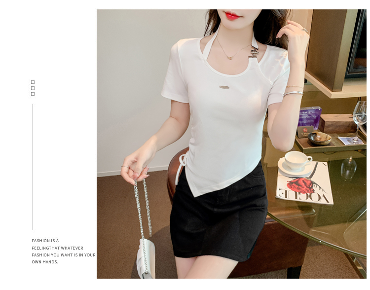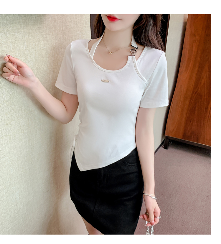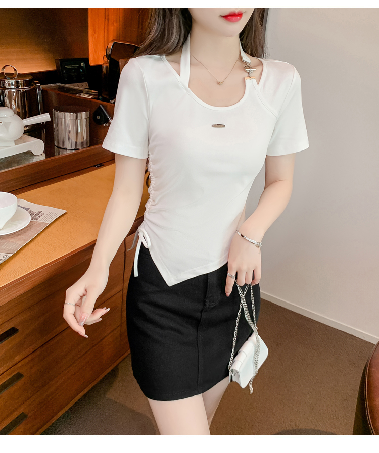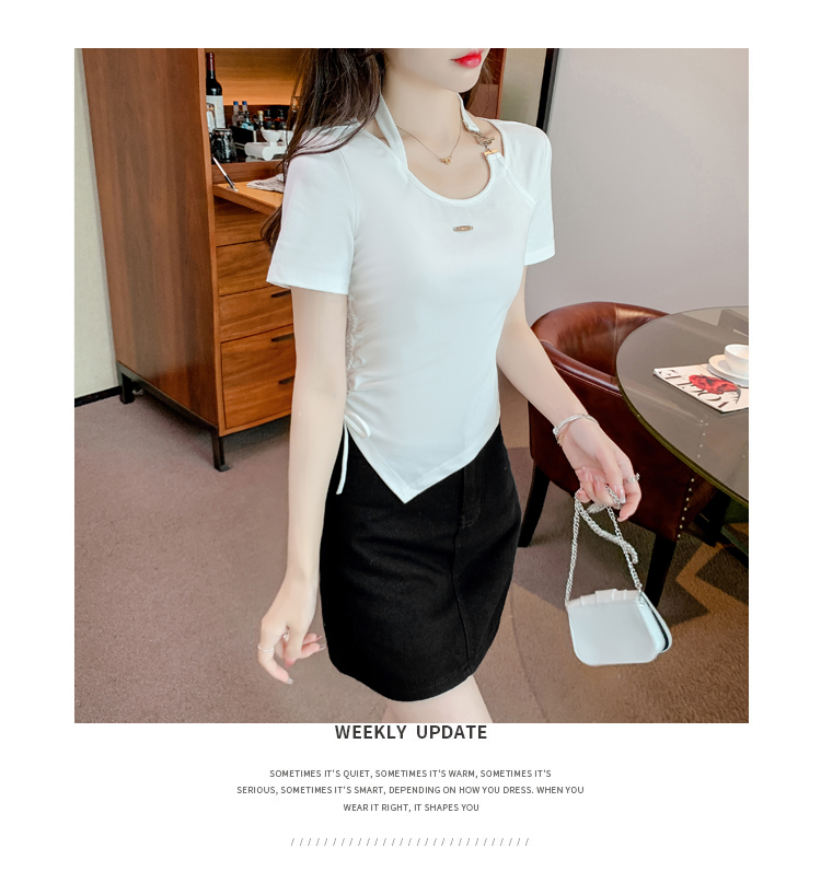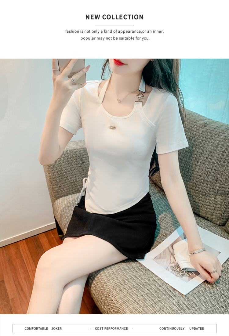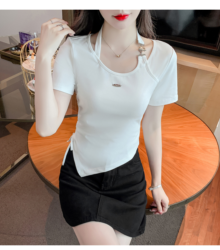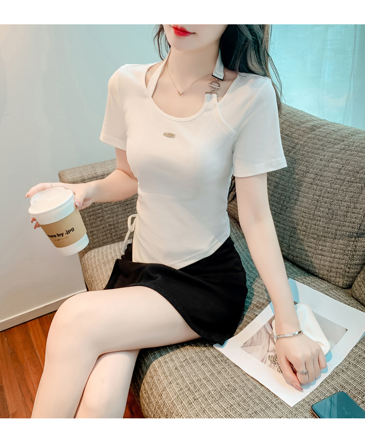 限量特惠|個性拼接掛脖抽繩不規則假兩件T恤-2色(03H3229)