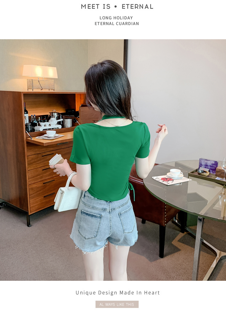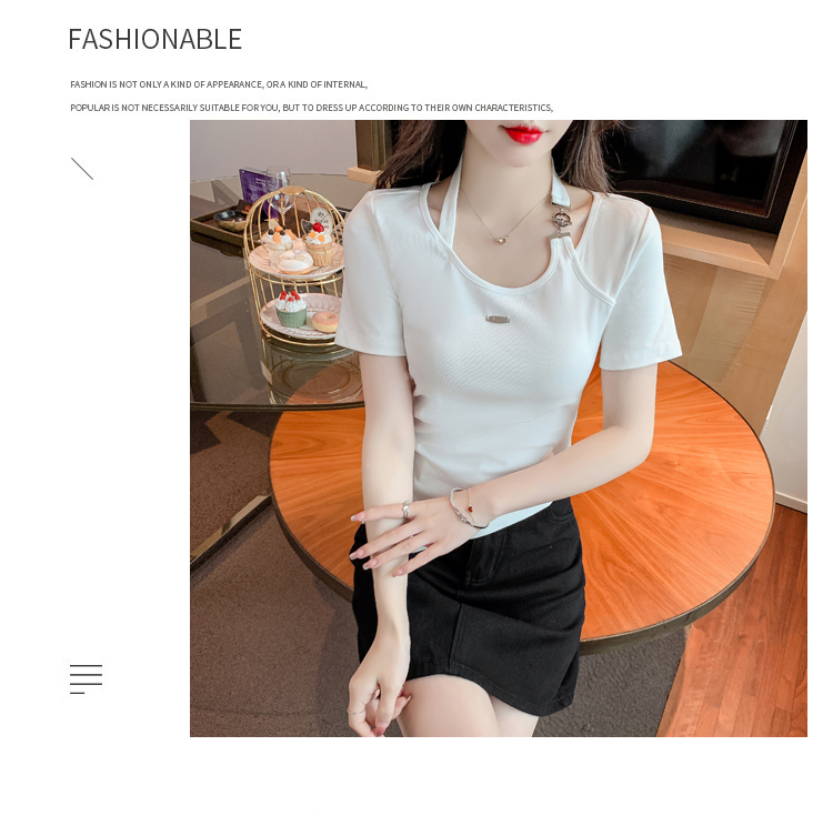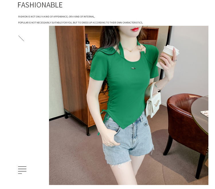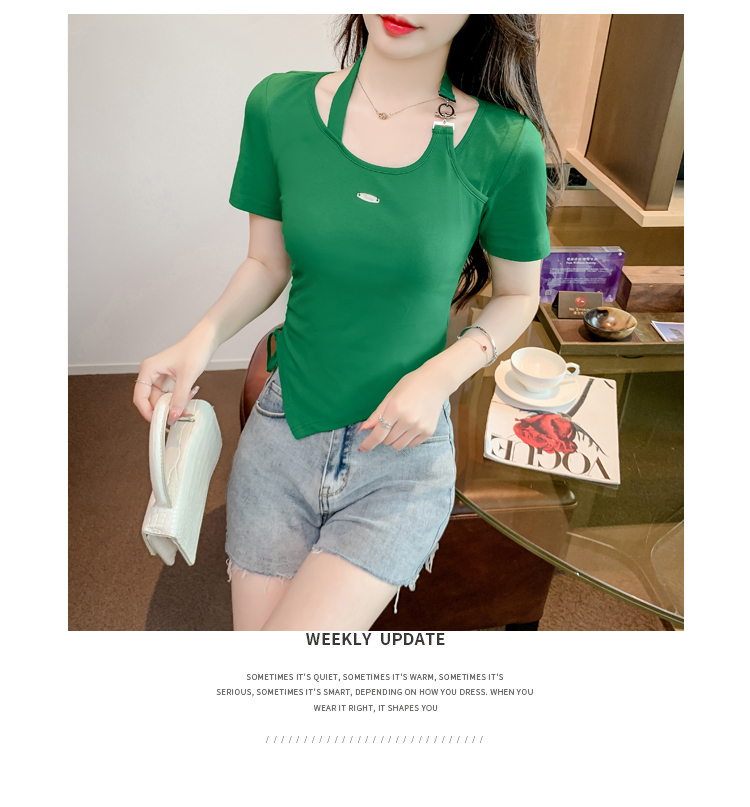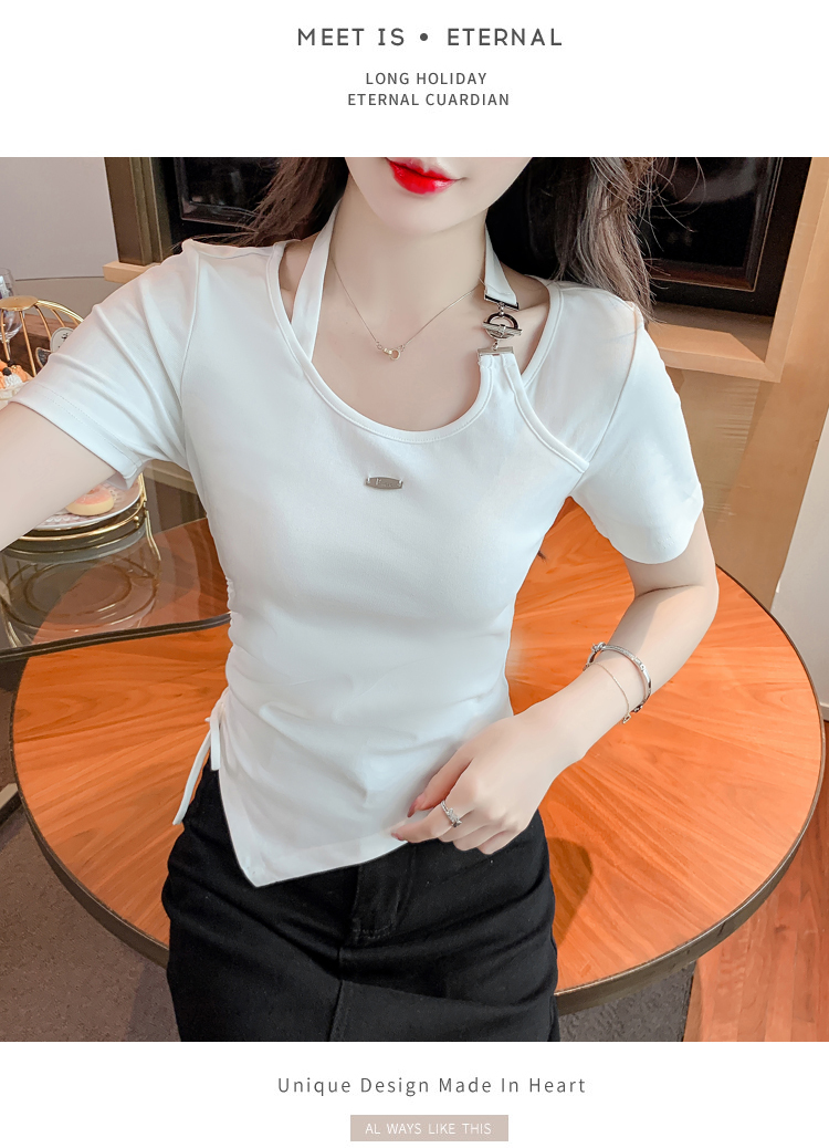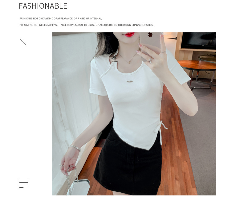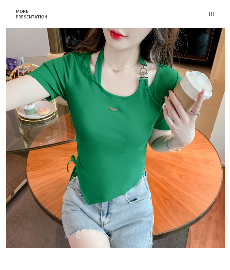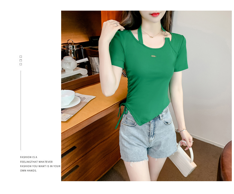 限量特惠|個性拼接掛脖抽繩不規則假兩件T恤-2色(03H3229)