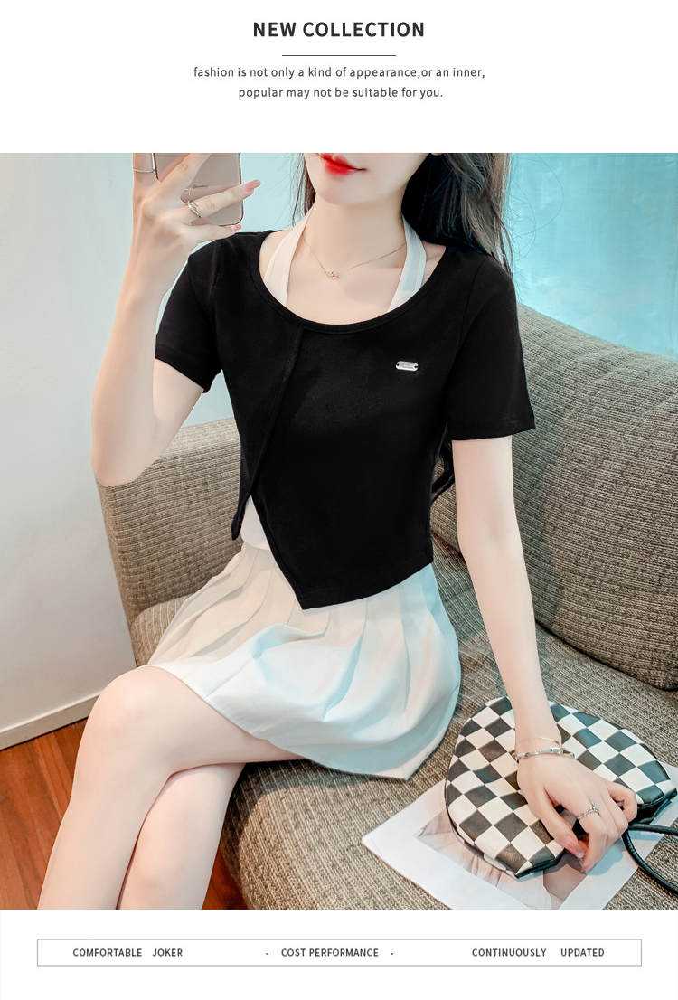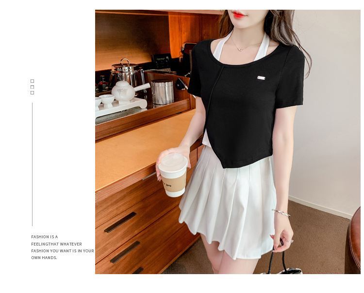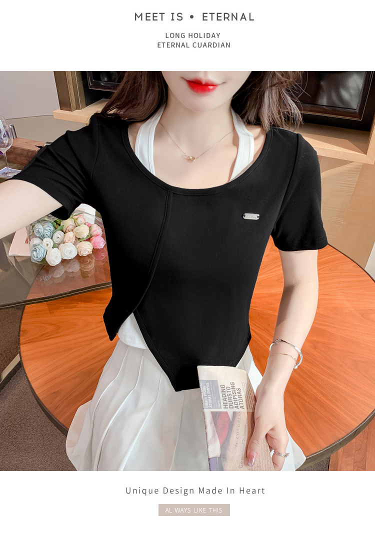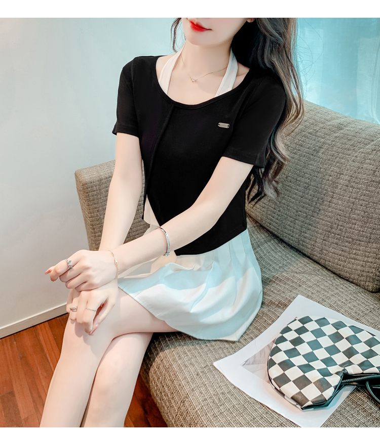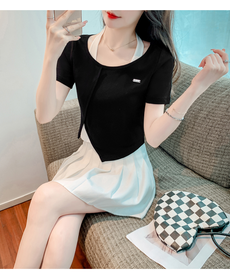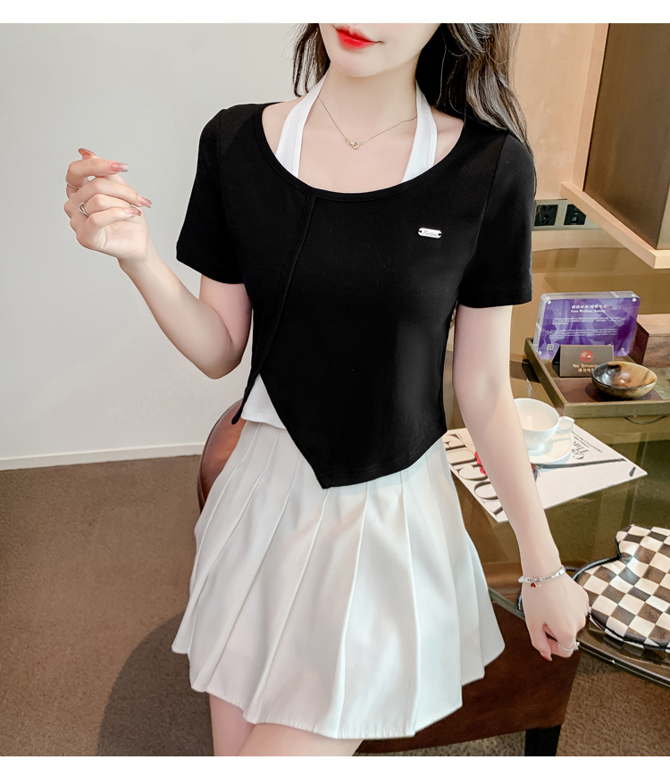 限量特惠|個性拼接掛脖不規則假兩件T恤-2色(03H3232)