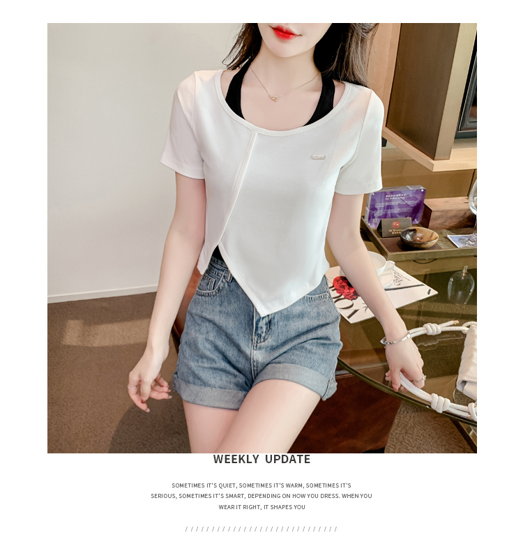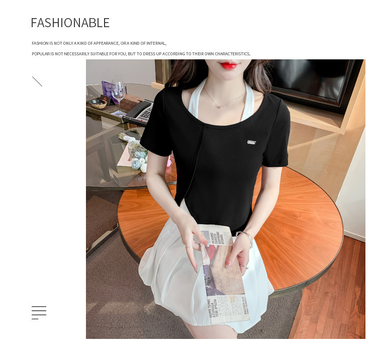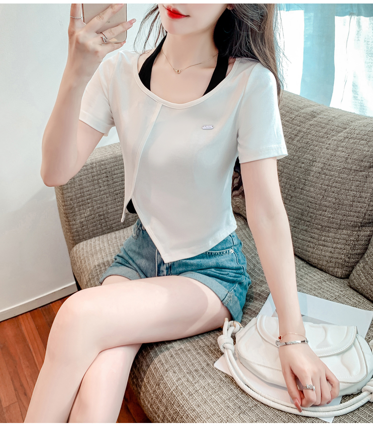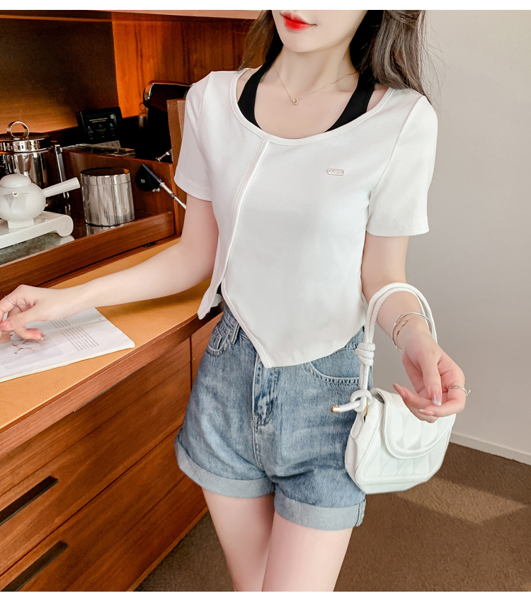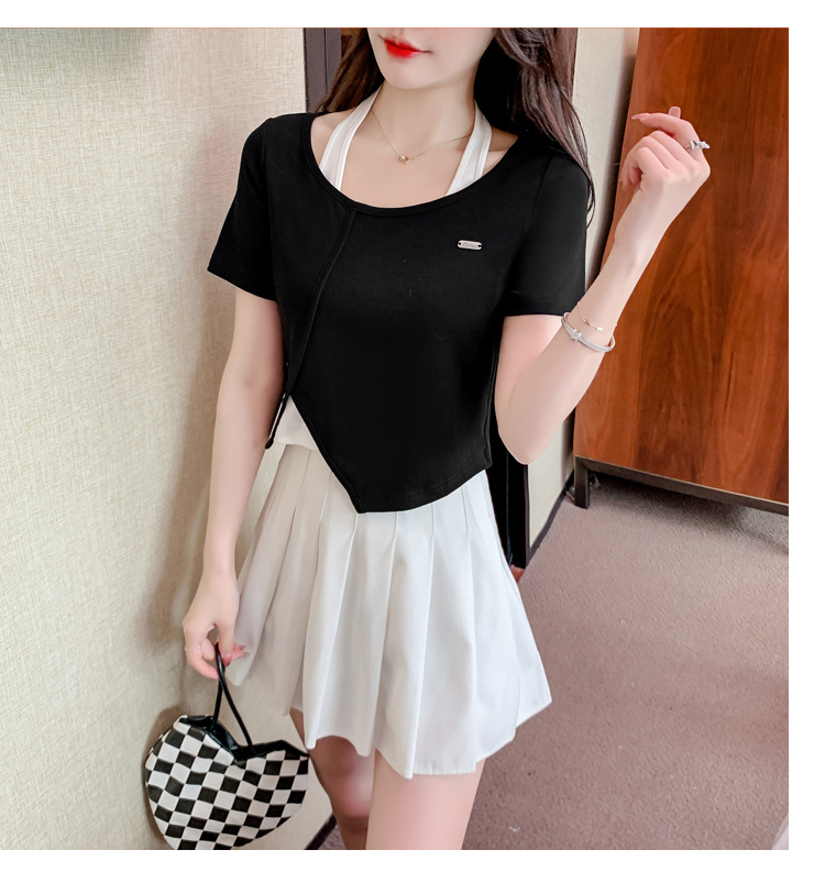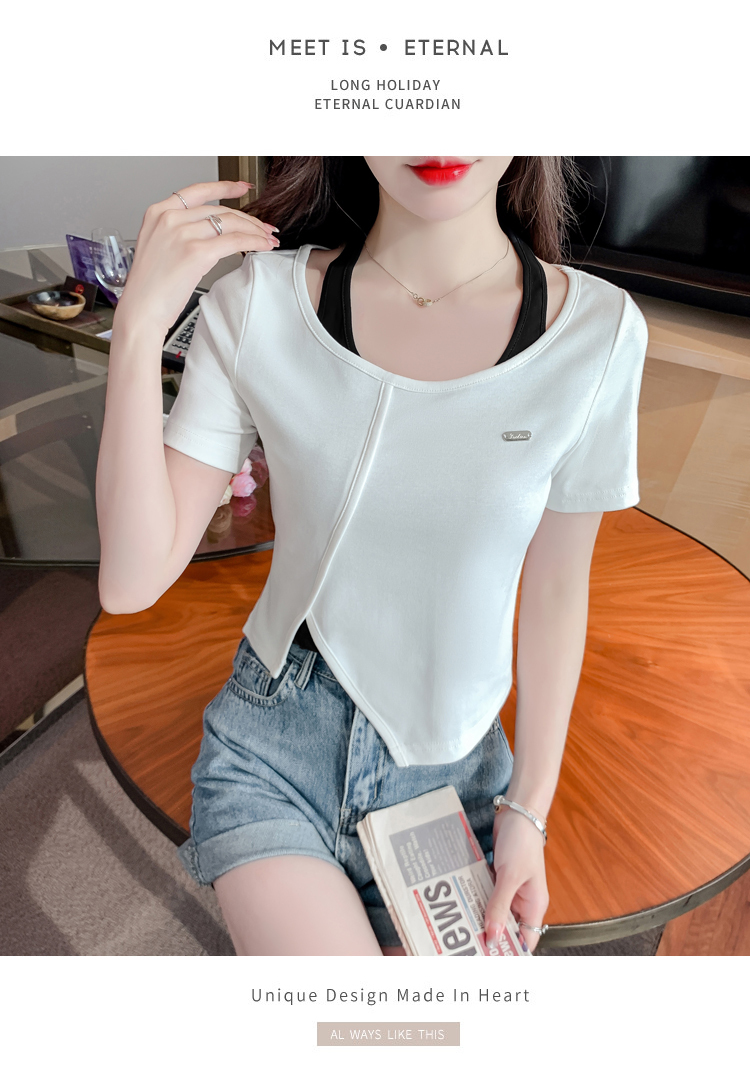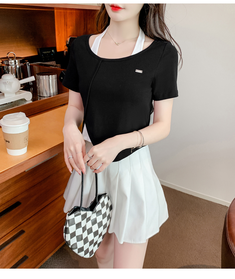 限量特惠|個性拼接掛脖不規則假兩件T恤-2色(03H3232)