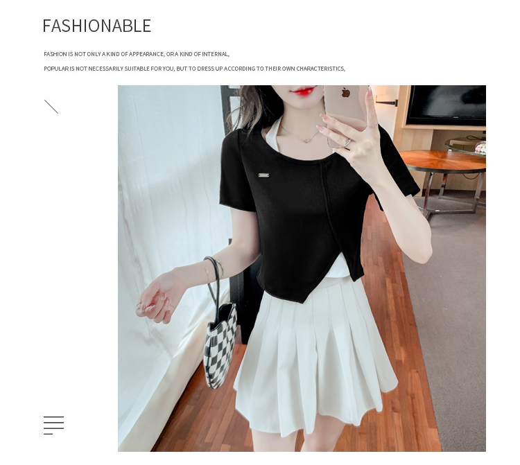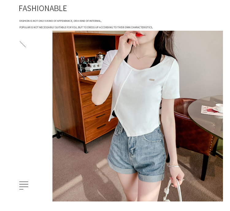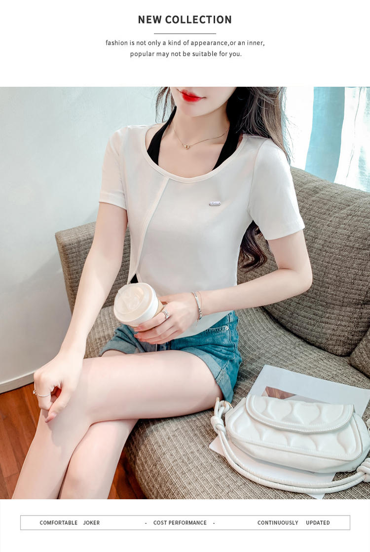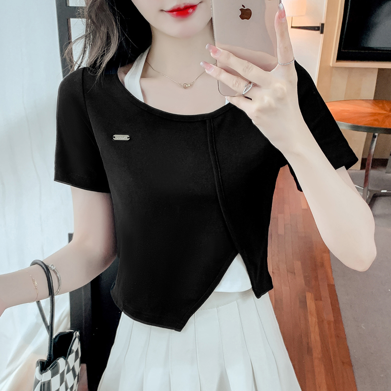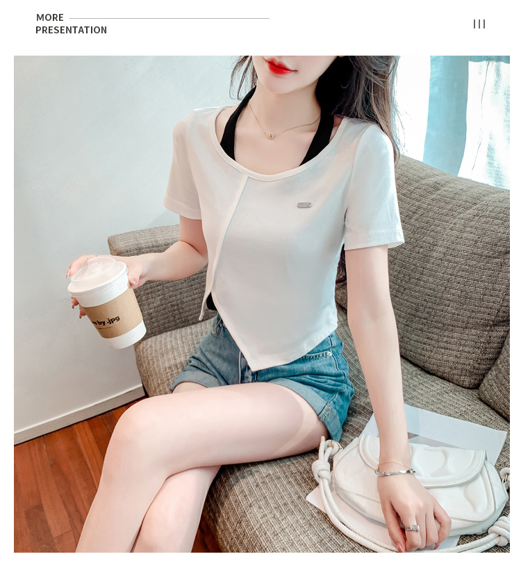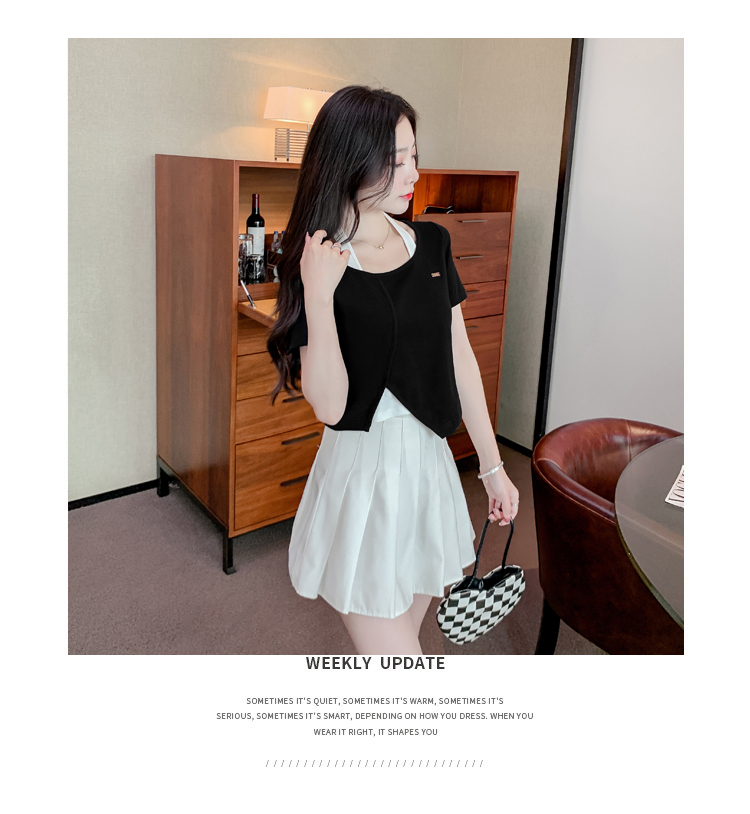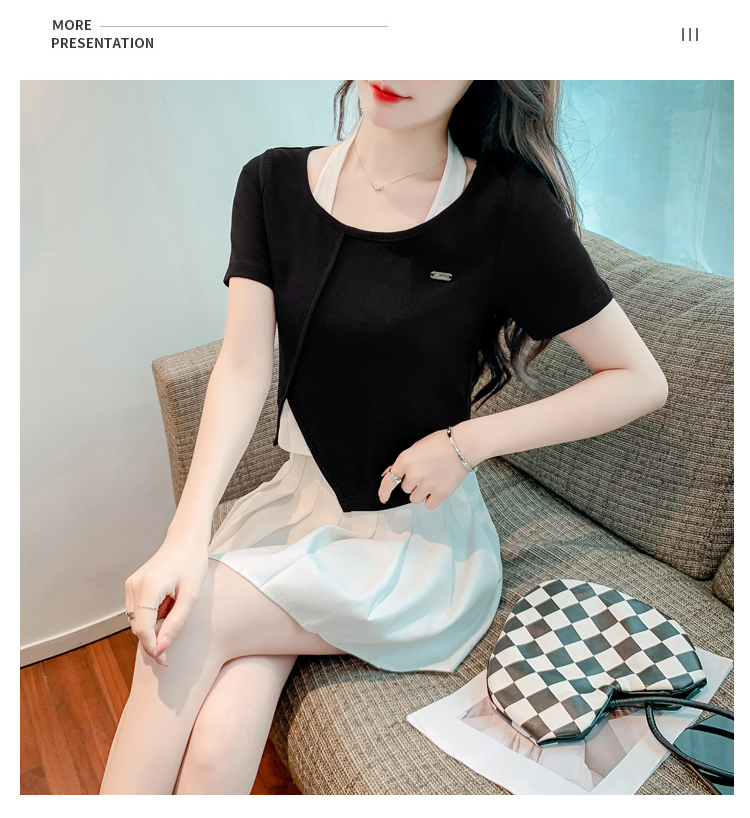 限量特惠|個性拼接掛脖不規則假兩件T恤-2色(03H3232)