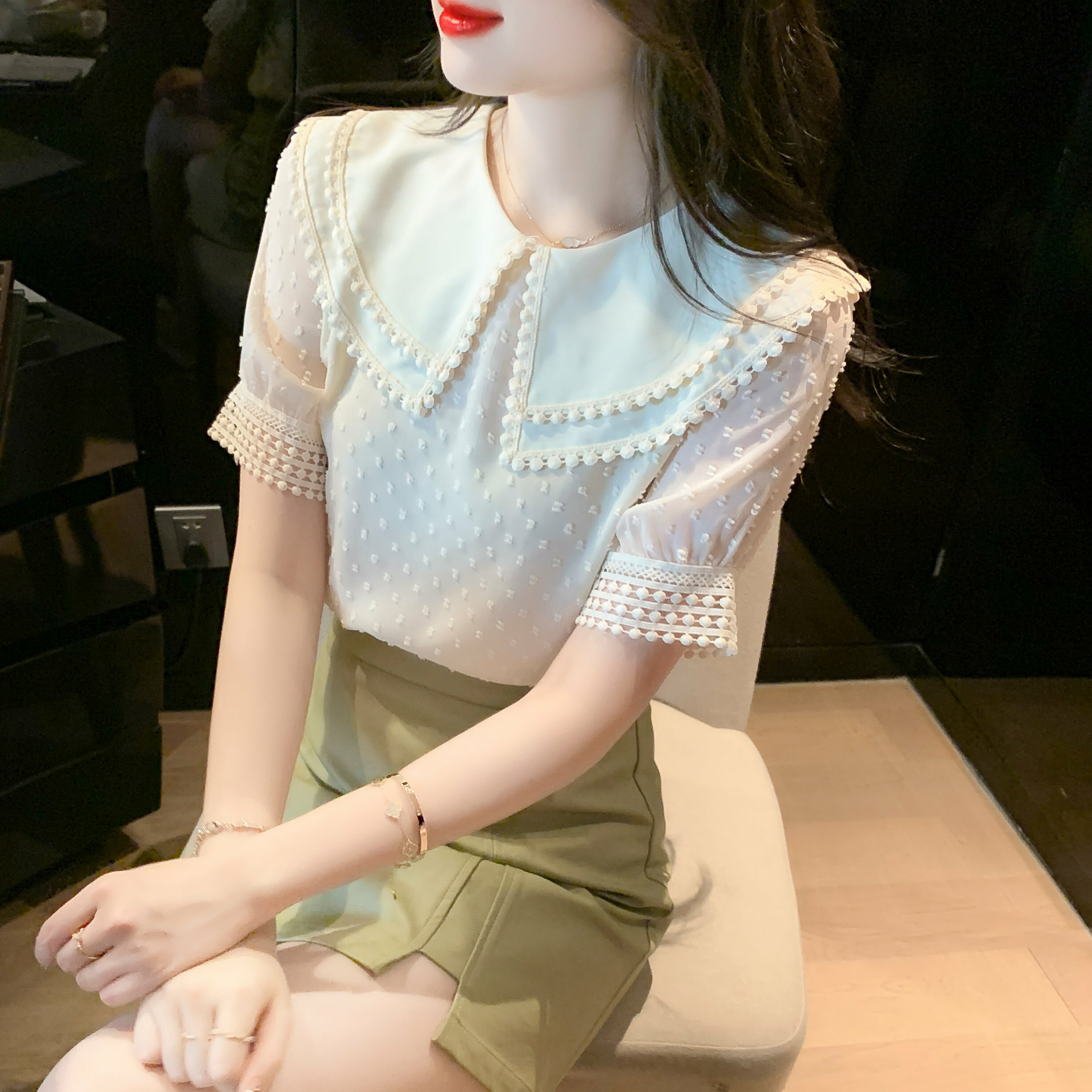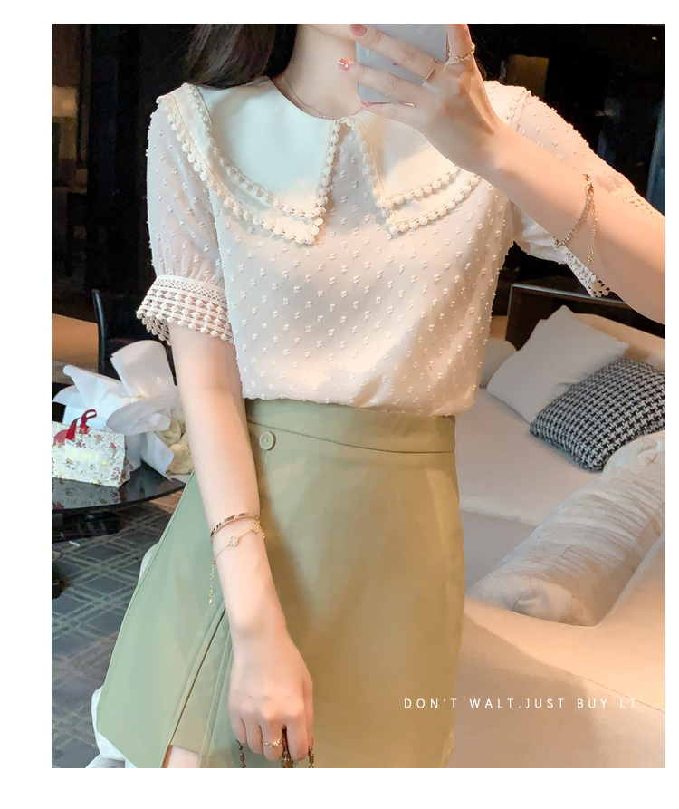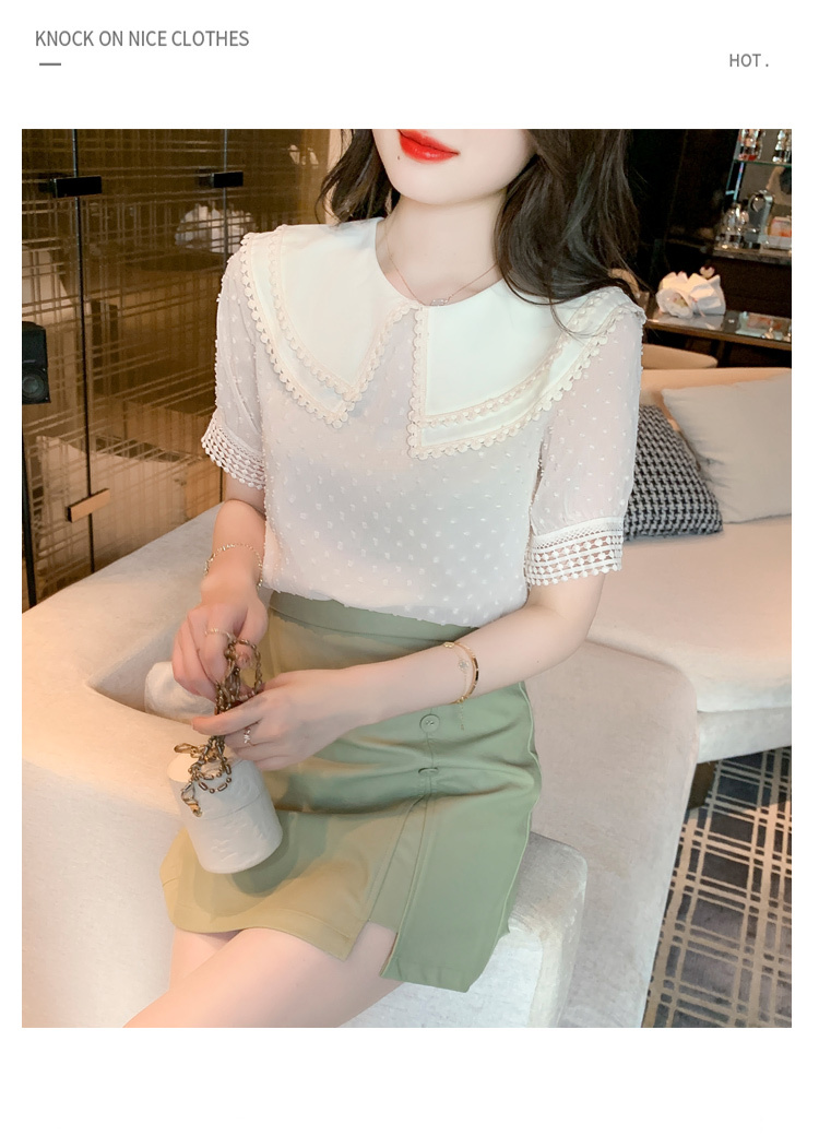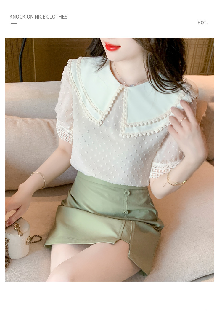 限量特惠|知性雙層娃娃領提花雪紡衫(03H3276)