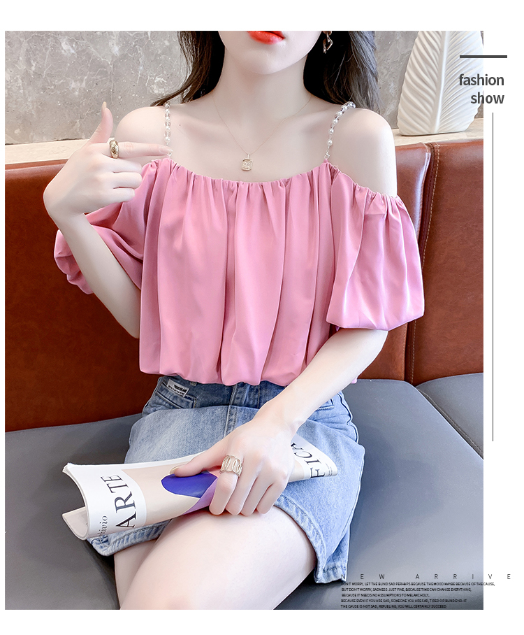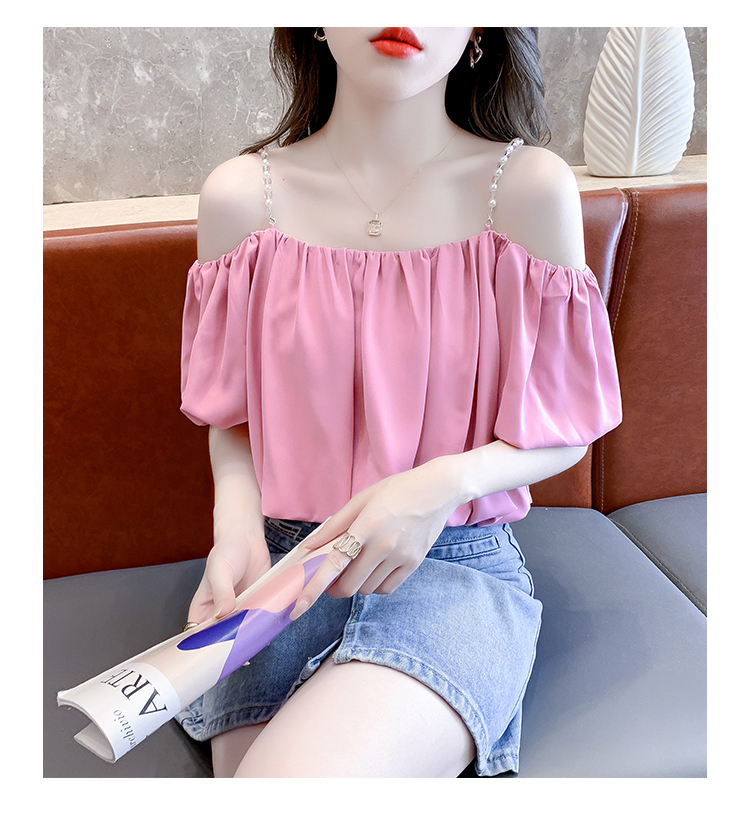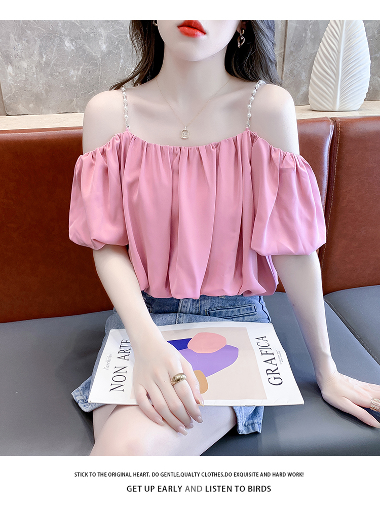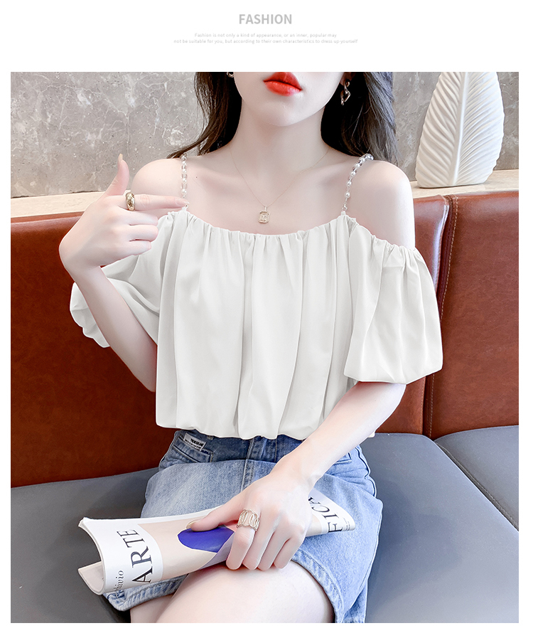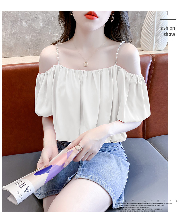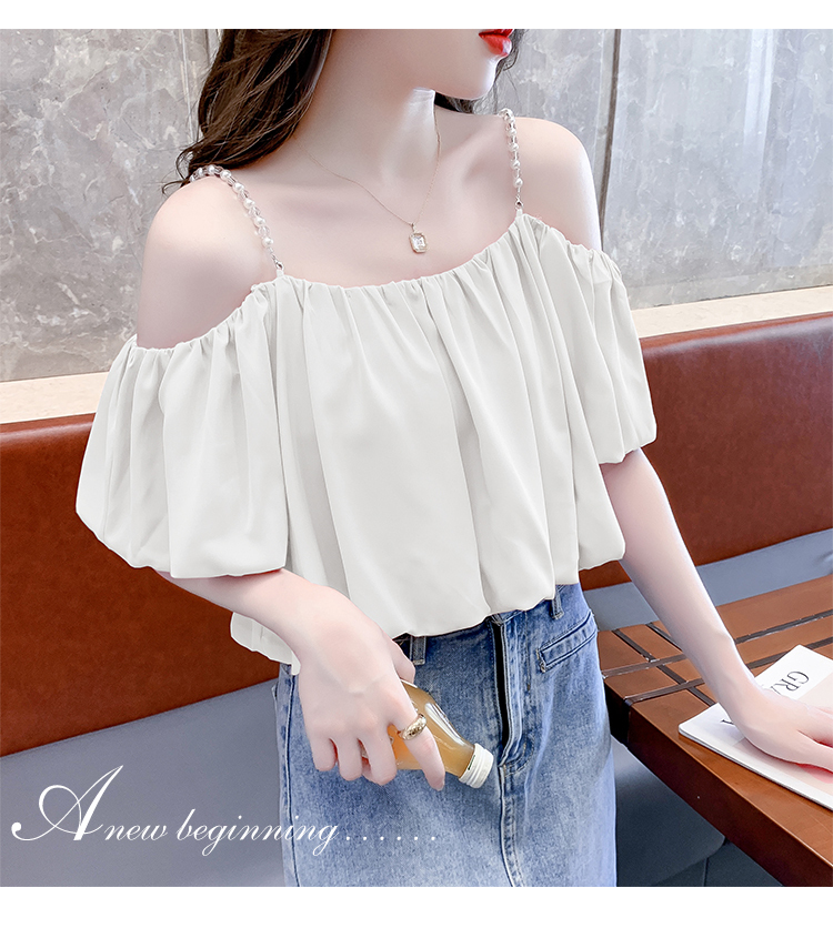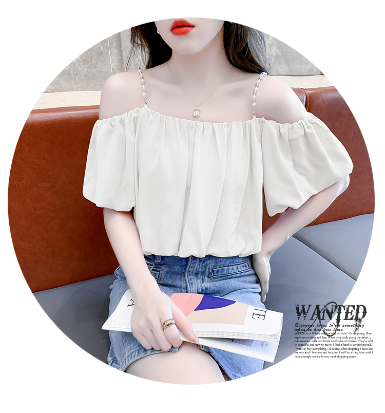 限量特惠|心機甜感珍珠吊帶一字領上衣-2色(03H3281)
