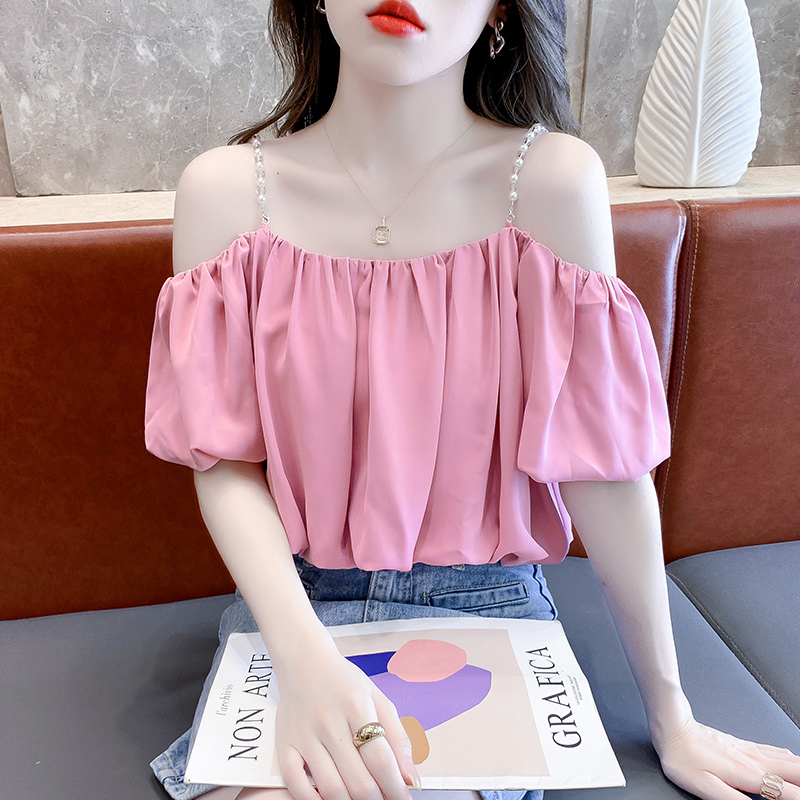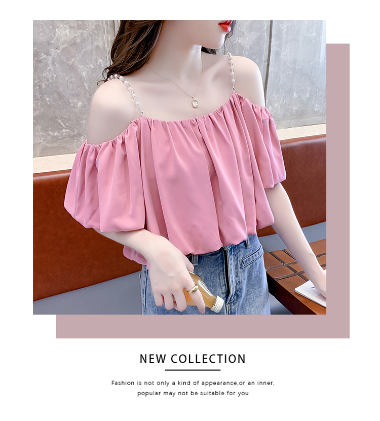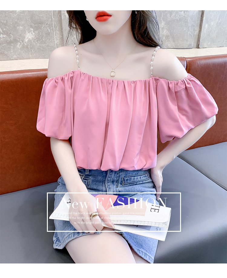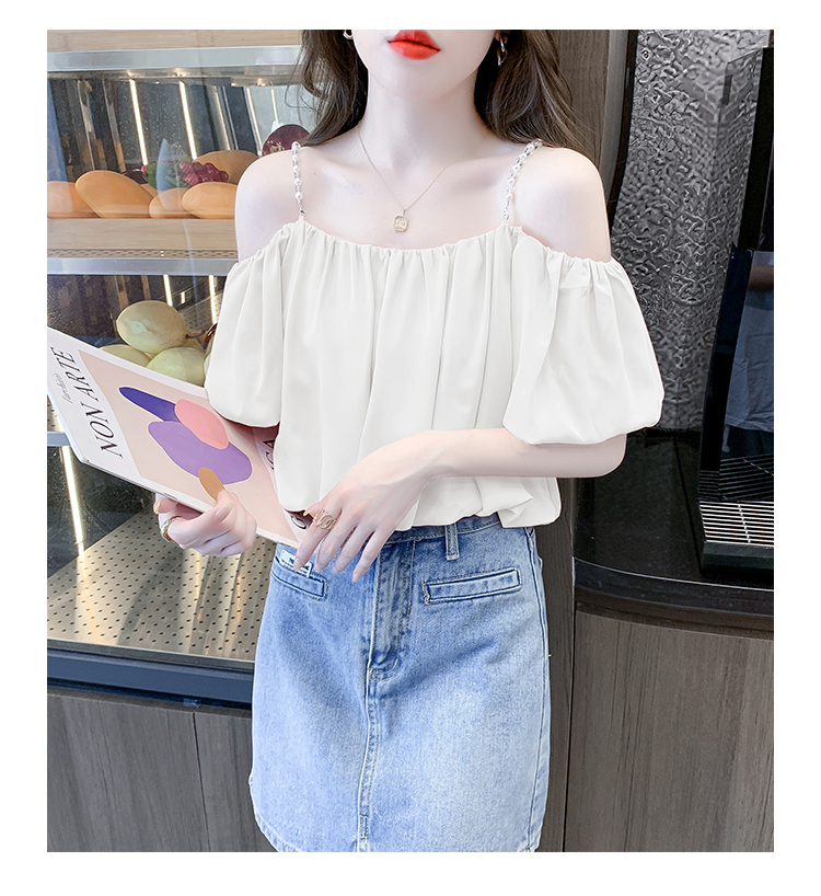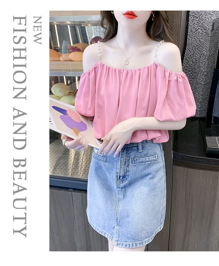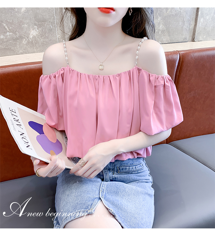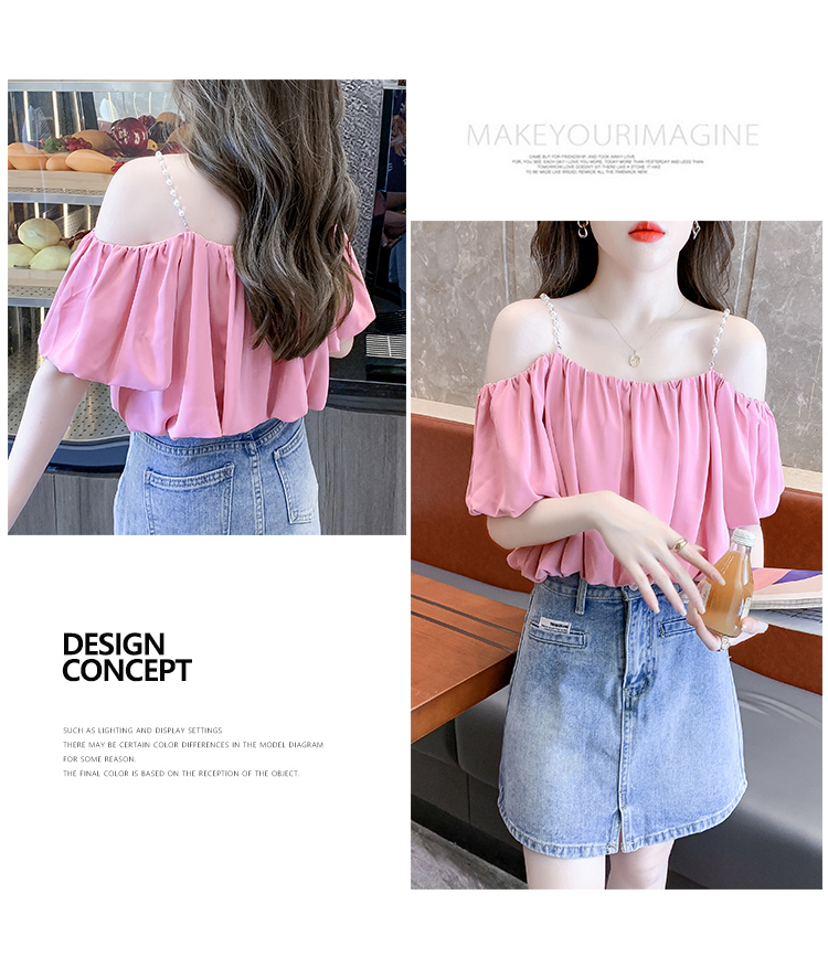 限量特惠|心機甜感珍珠吊帶一字領上衣-2色(03H3281)