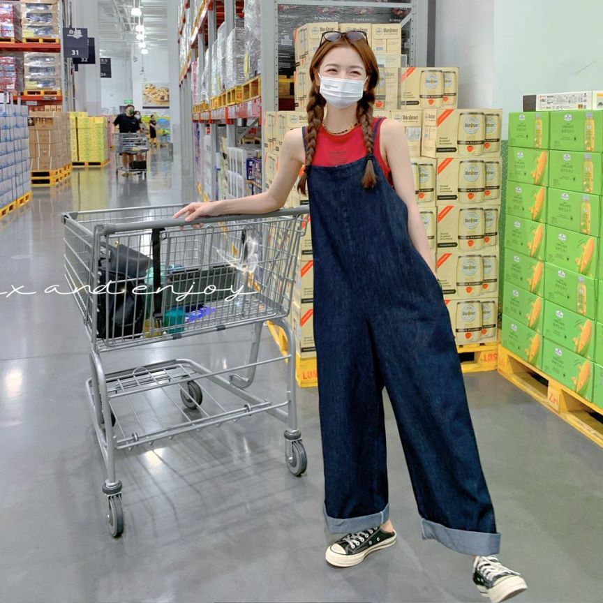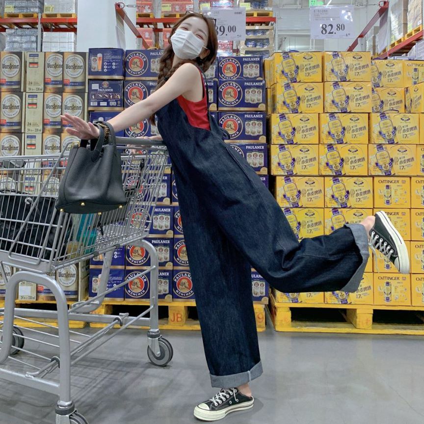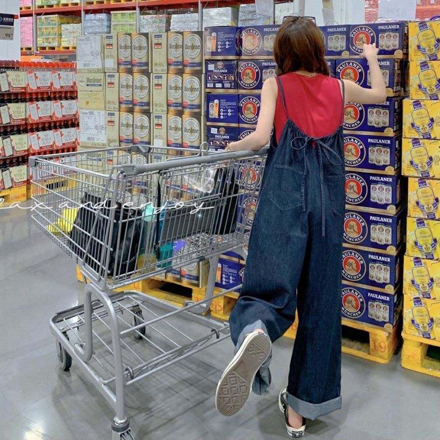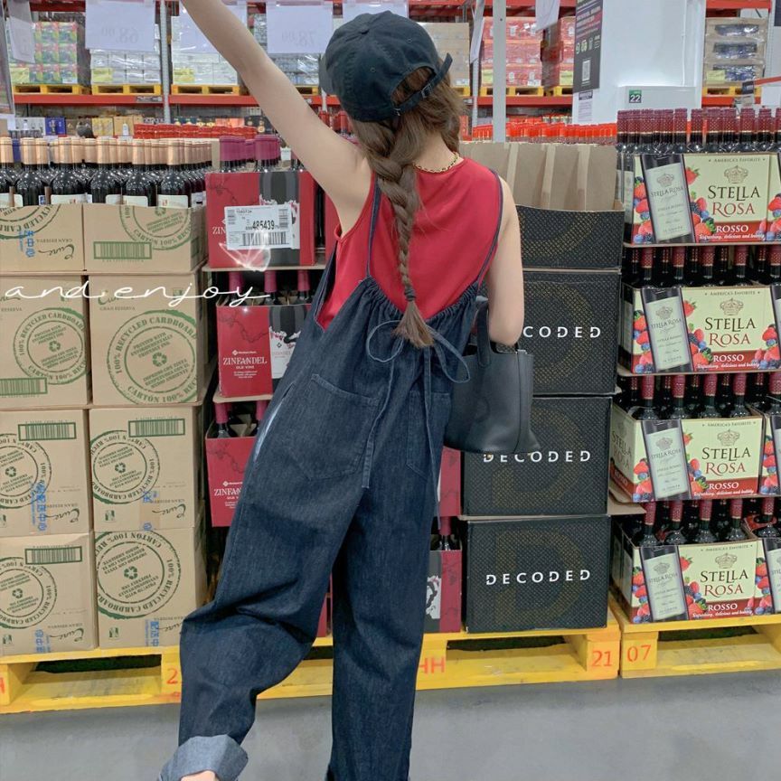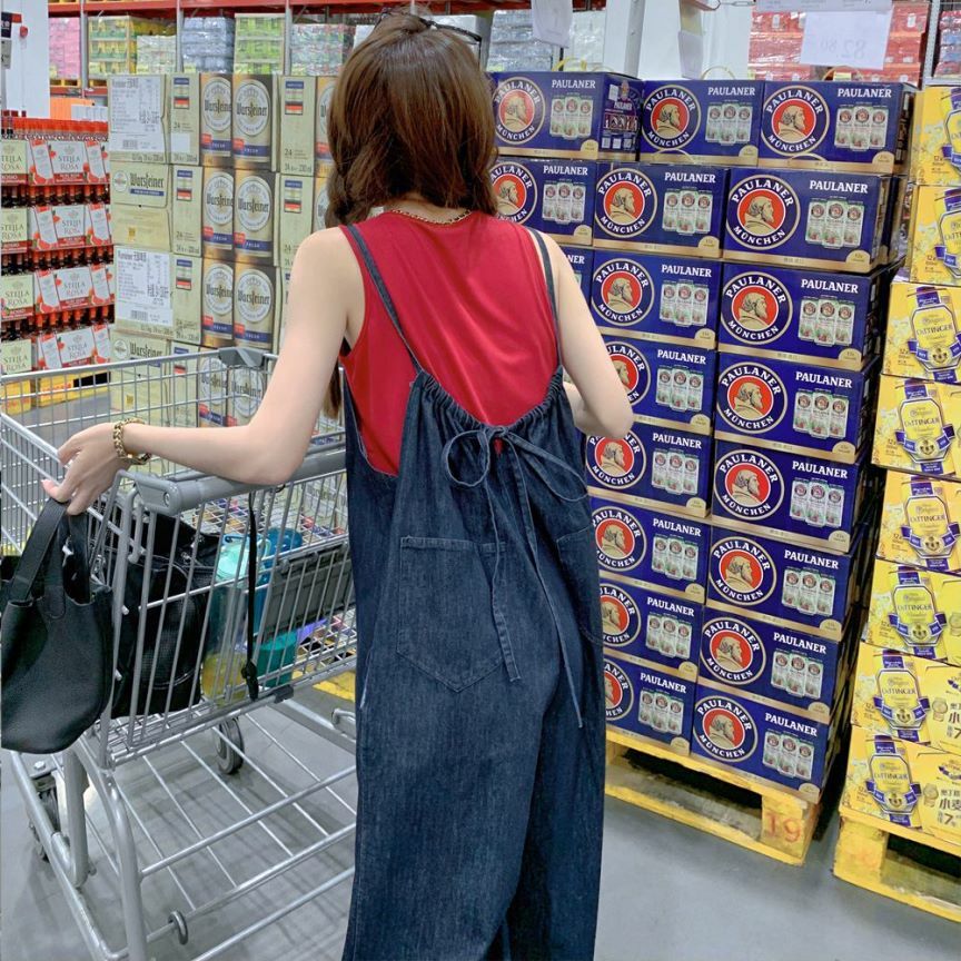 限量特惠|俏皮綁帶牛仔吊帶寬褲(03H3291)