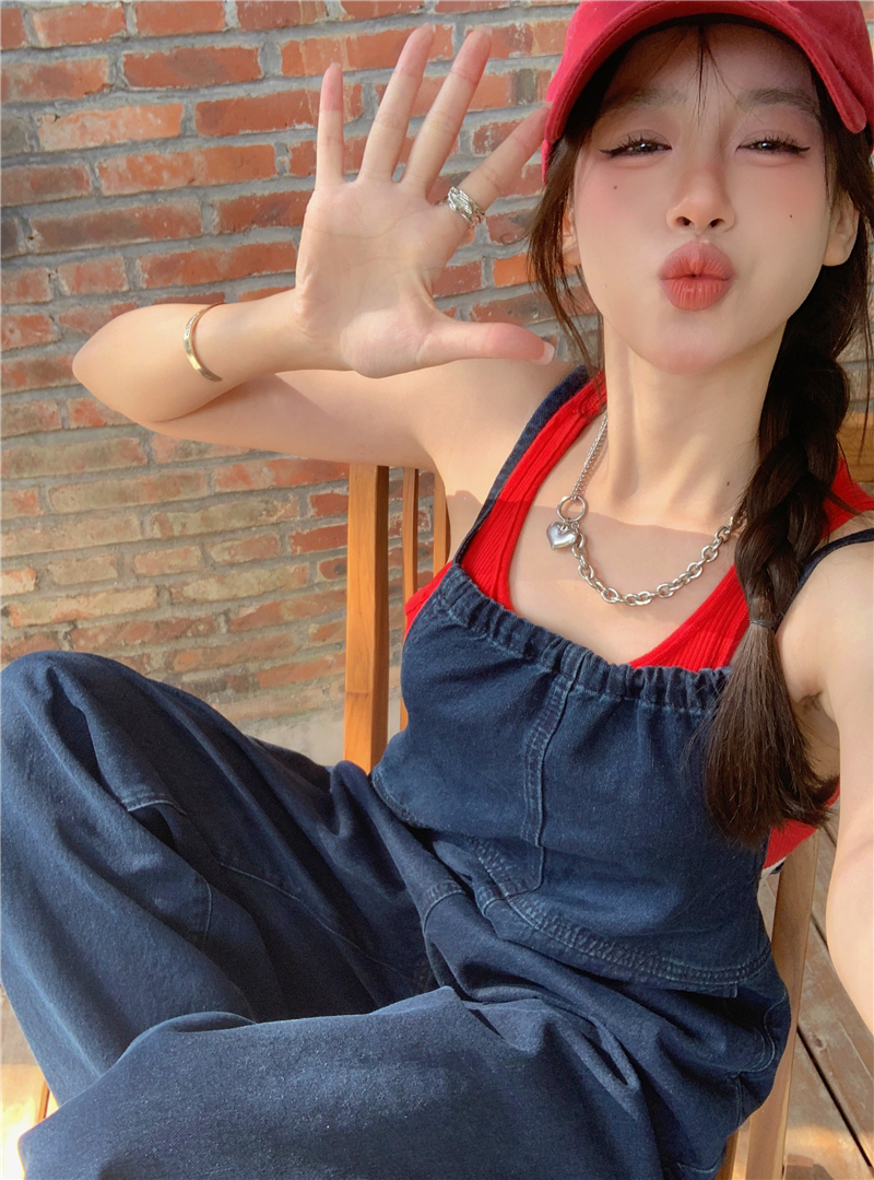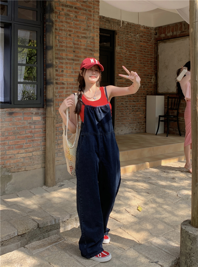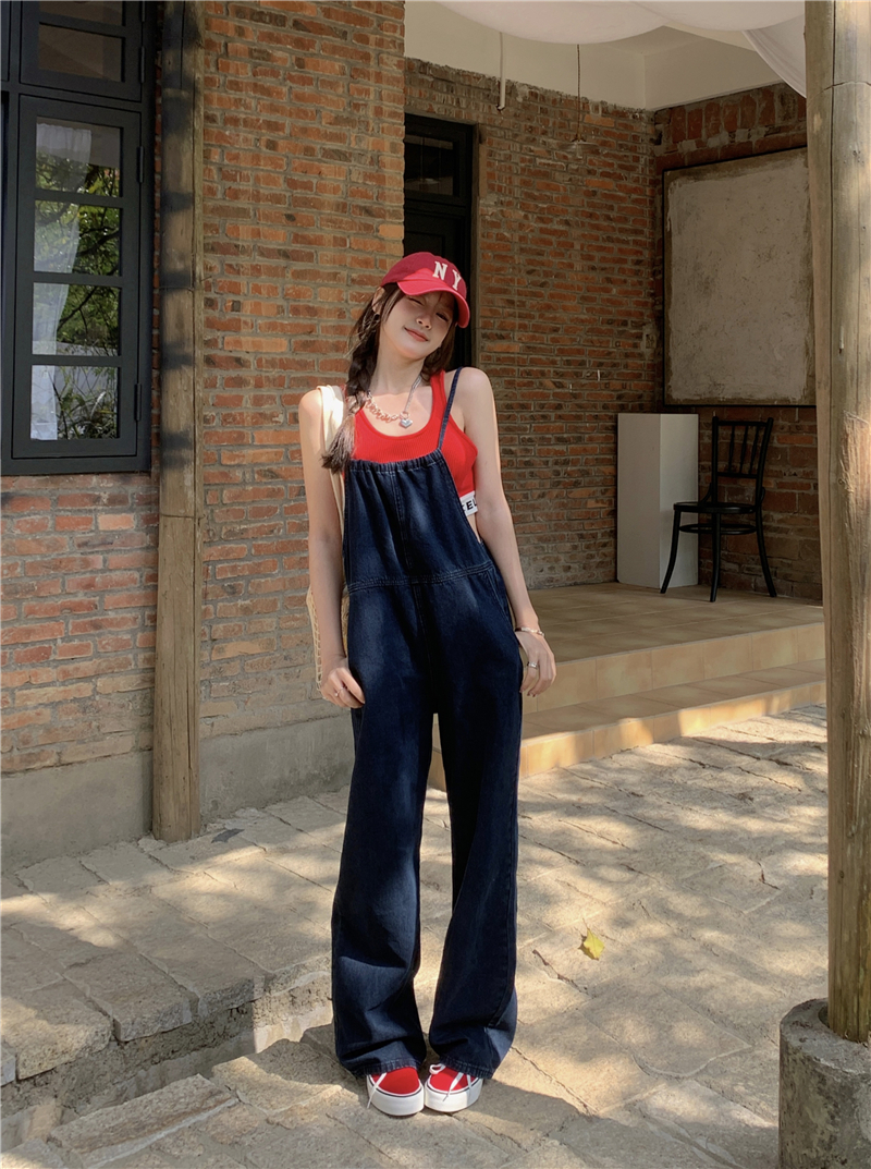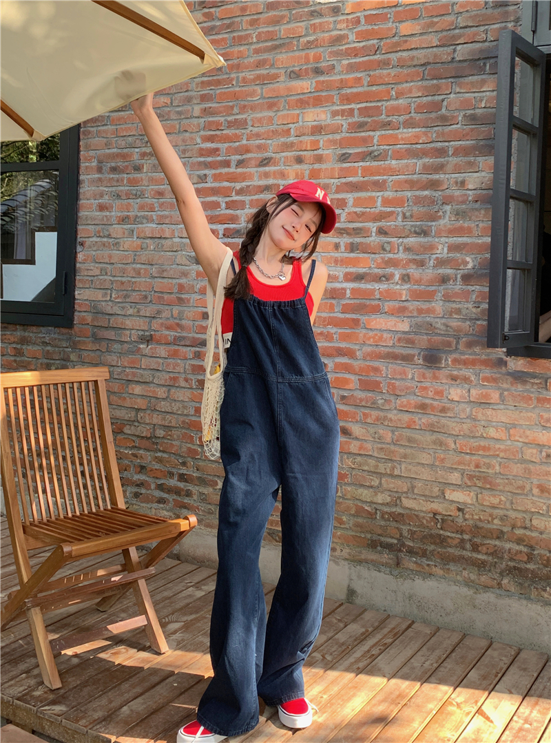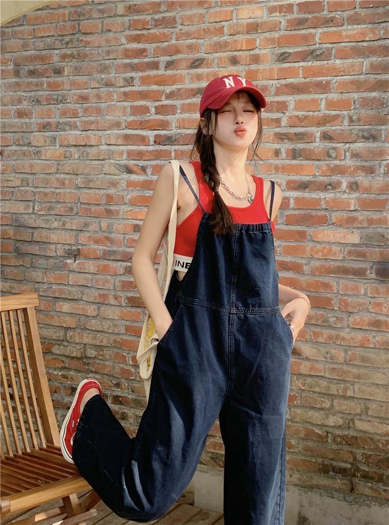 限量特惠|俏皮綁帶牛仔吊帶寬褲(03H3291)
