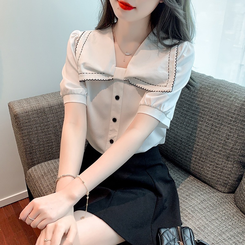 限量特惠|知性蝴蝶結造型翻領雪紡衫-2色(03H3312)