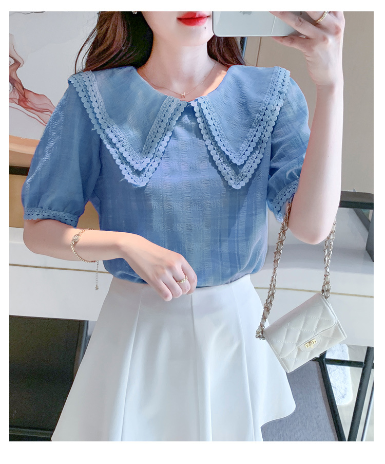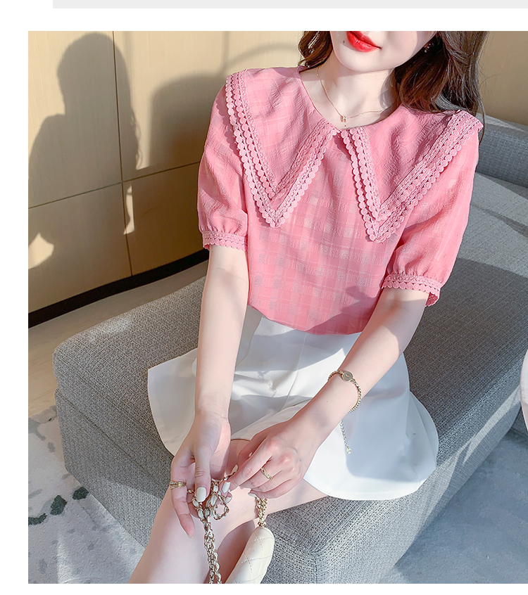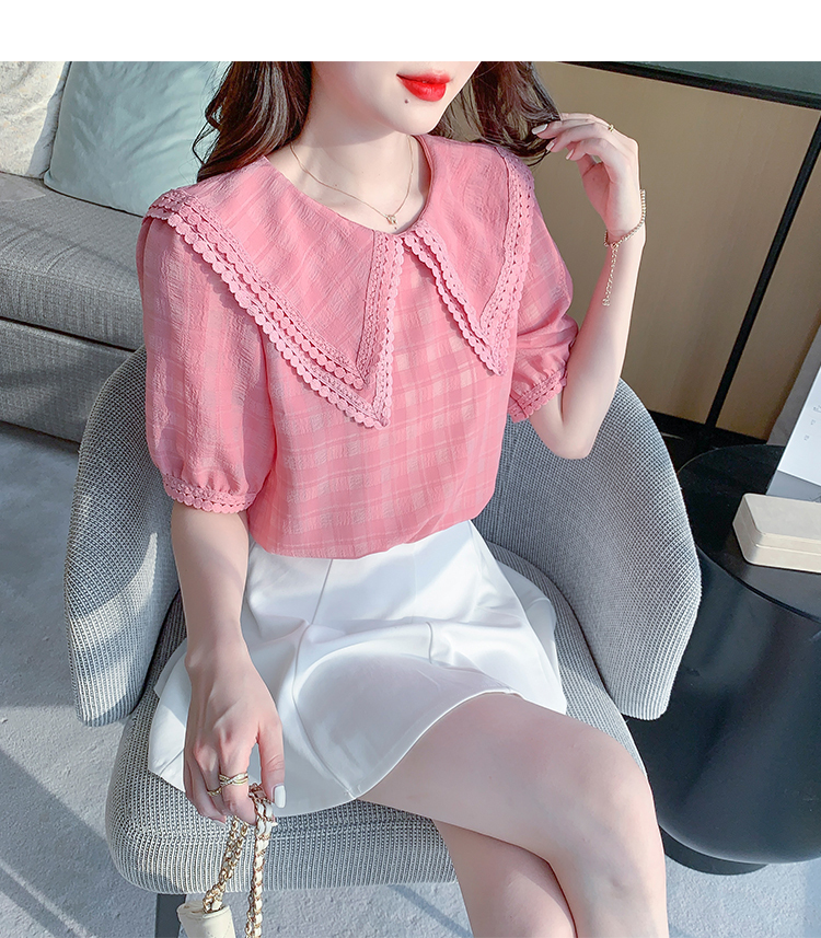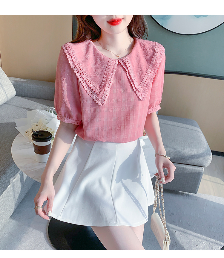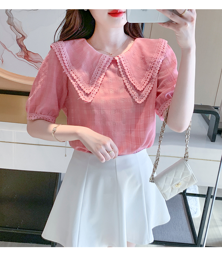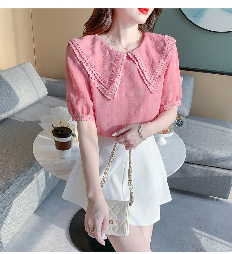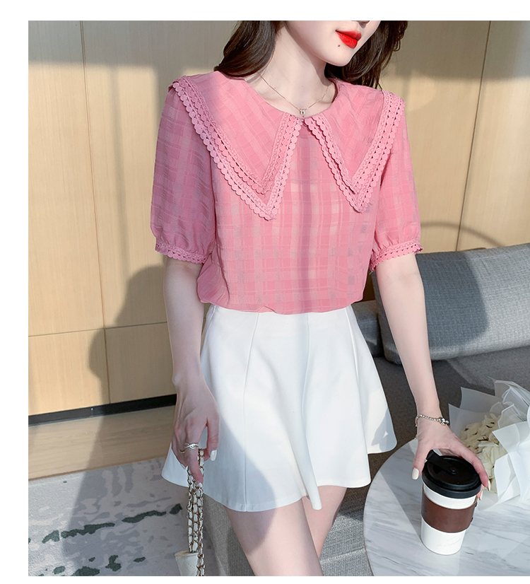 限量特惠|減齡甜美雙層花邊翻領雪紡衫-2色(03H3319)