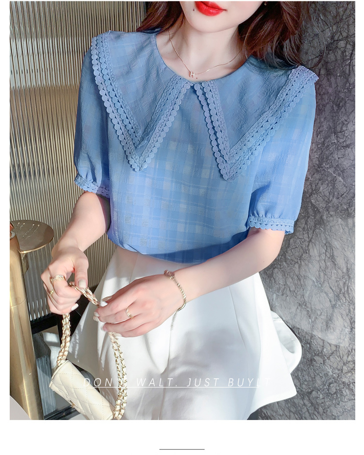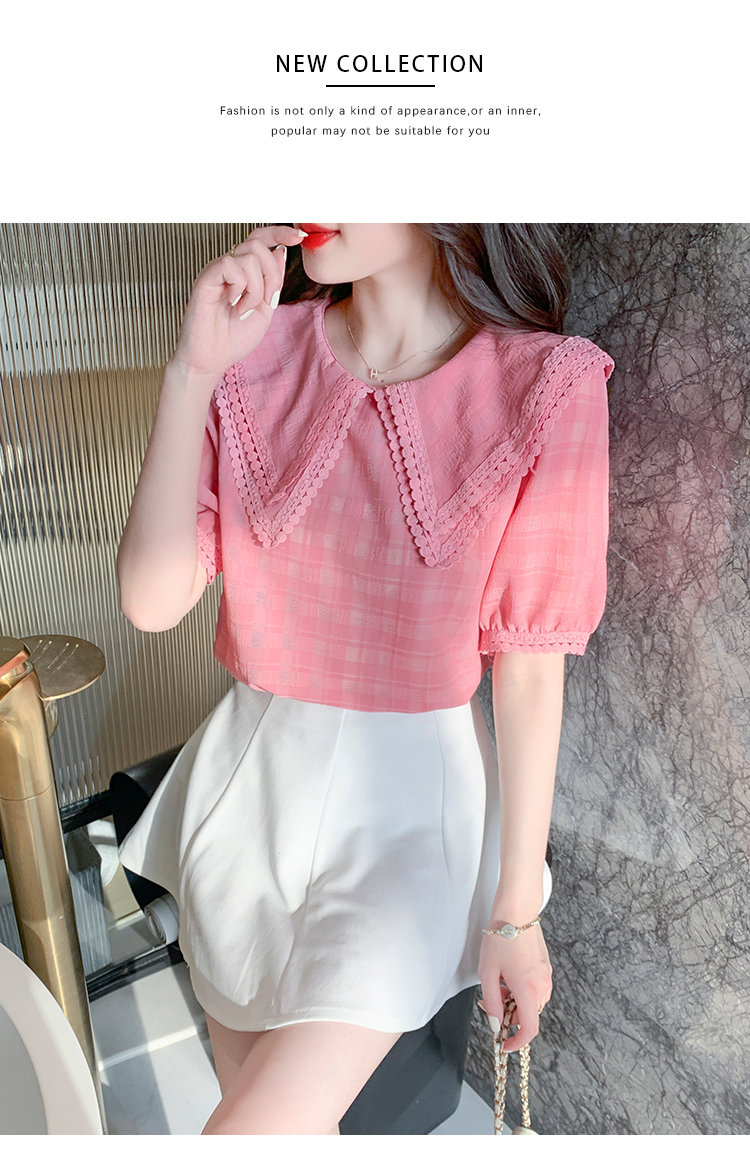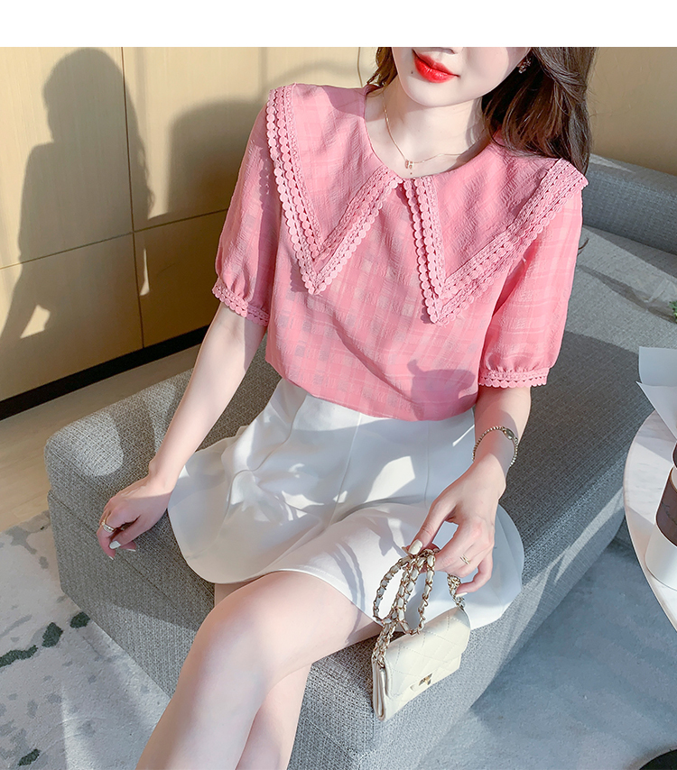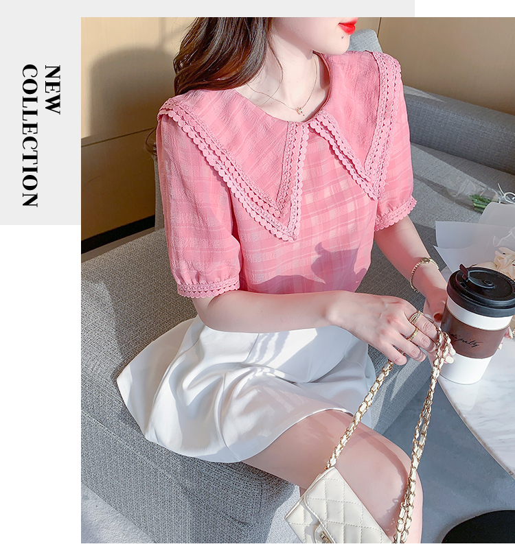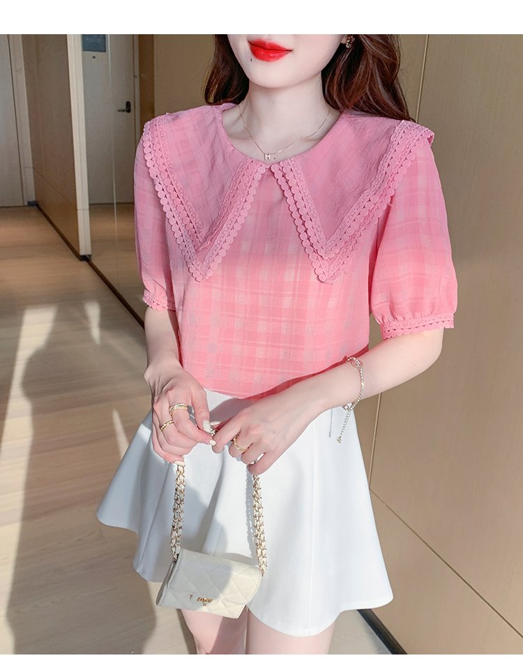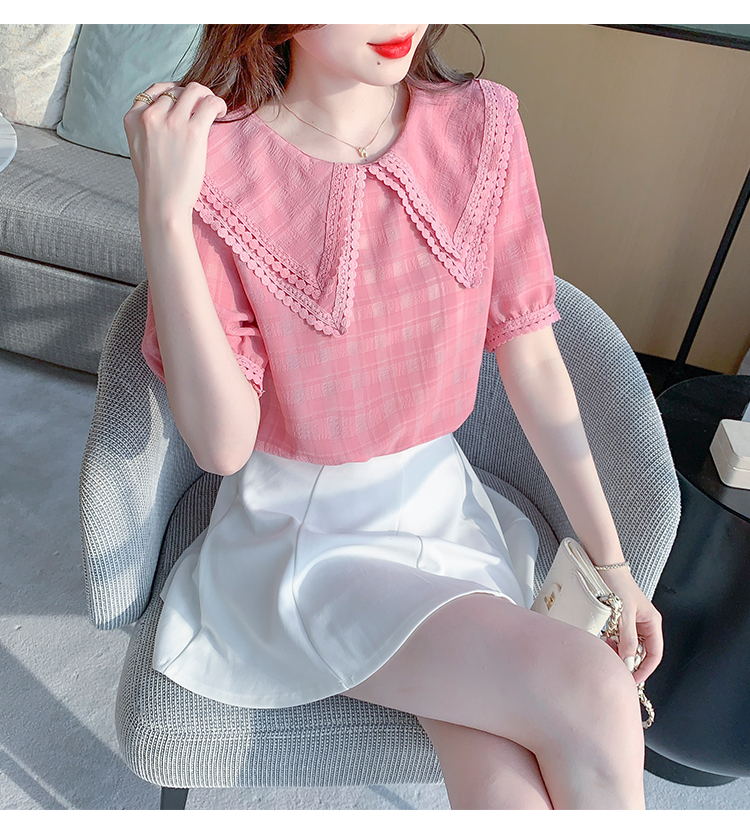 限量特惠|減齡甜美雙層花邊翻領雪紡衫-2色(03H3319)