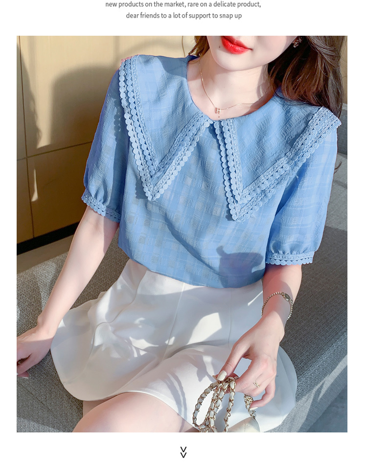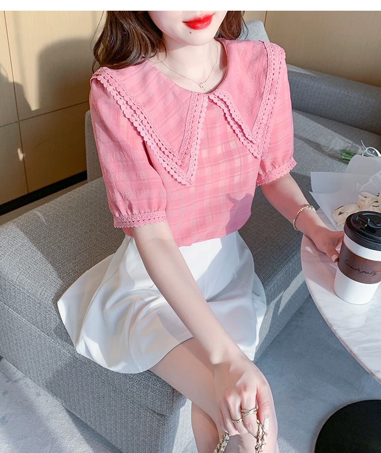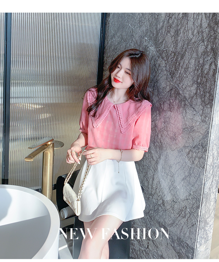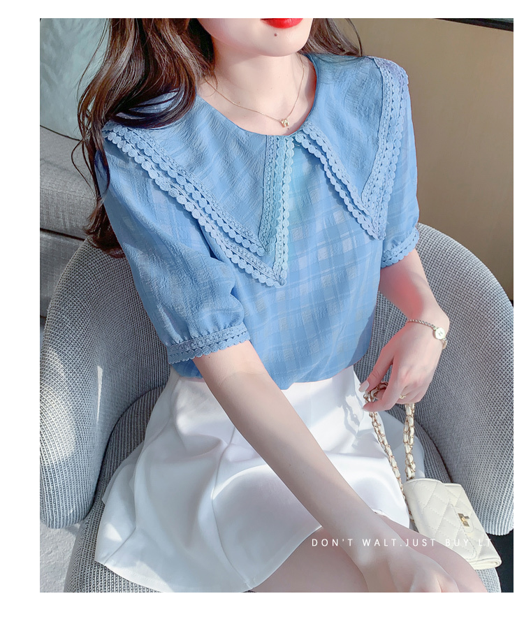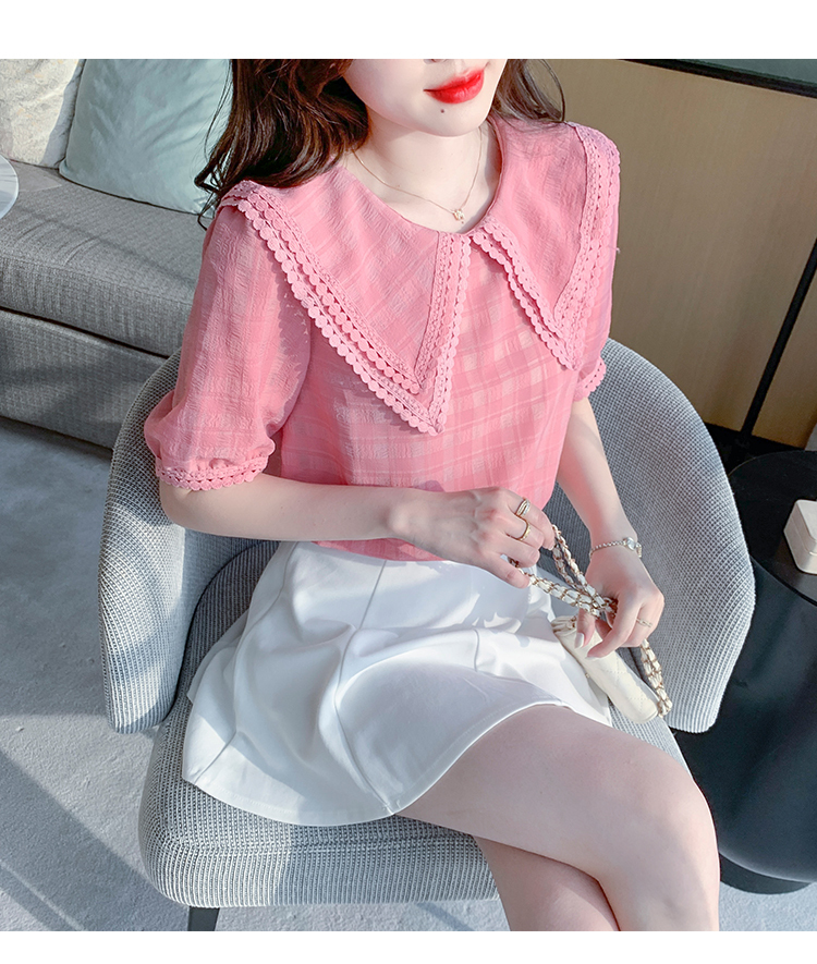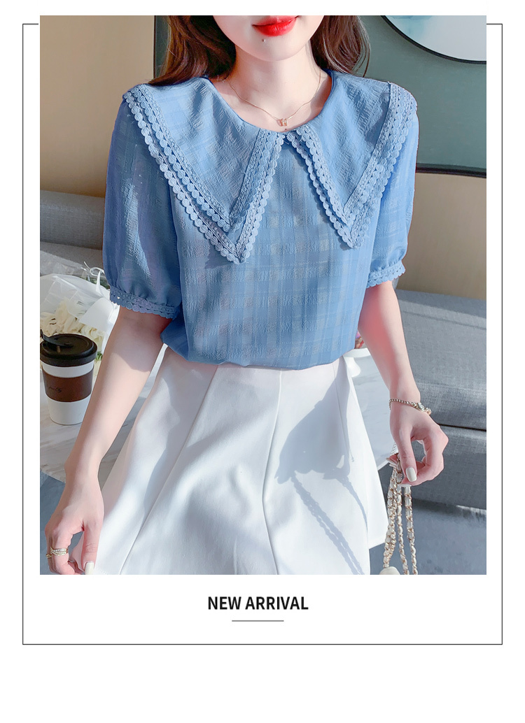 限量特惠|減齡甜美雙層花邊翻領雪紡衫-2色(03H3319)