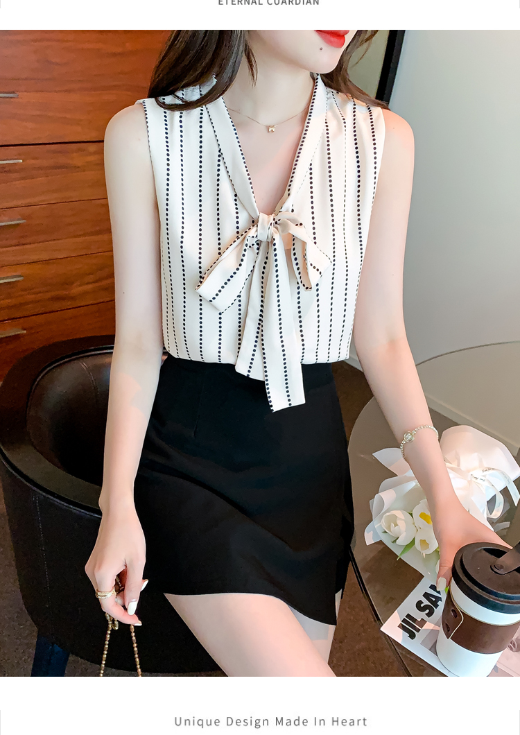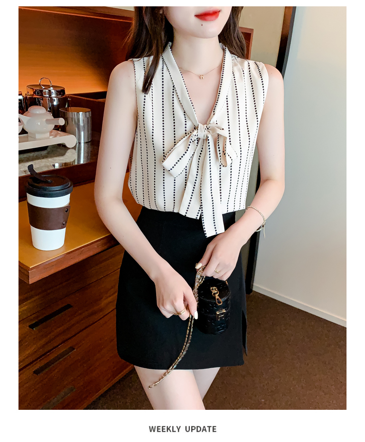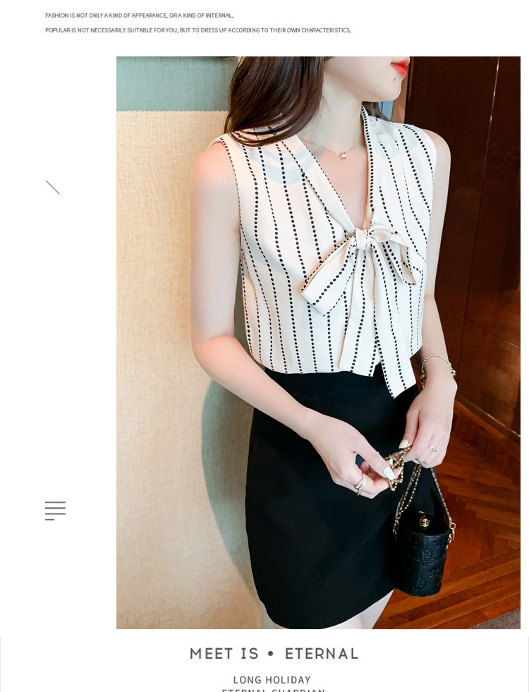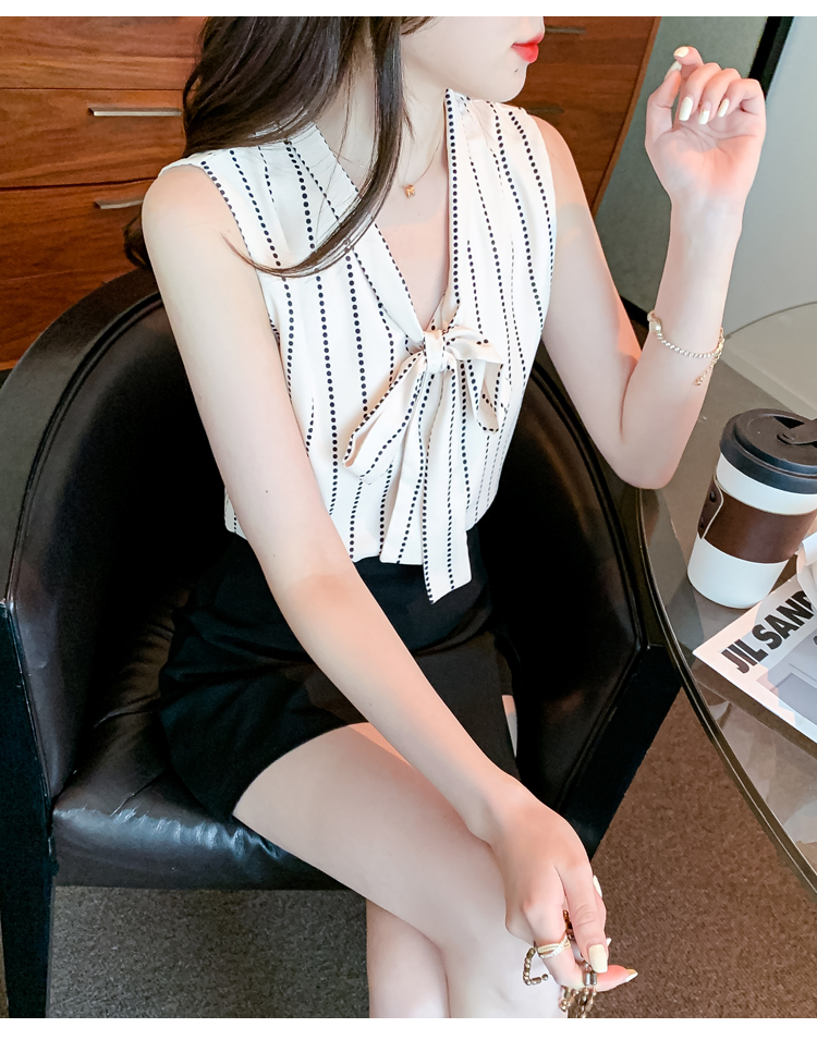 限量特惠|知性豎條紋繫帶雪紡衫(03H3327)