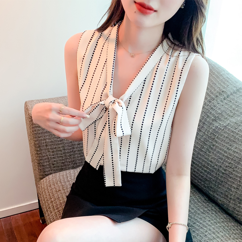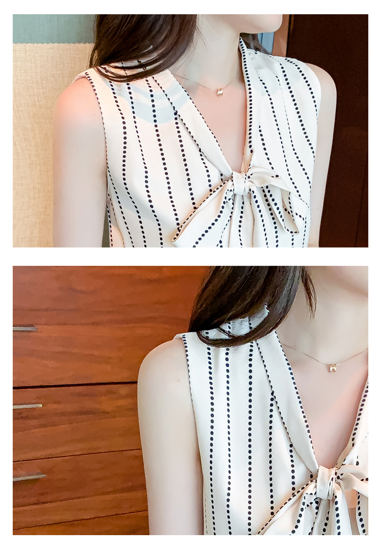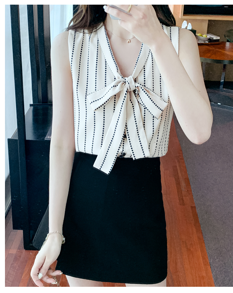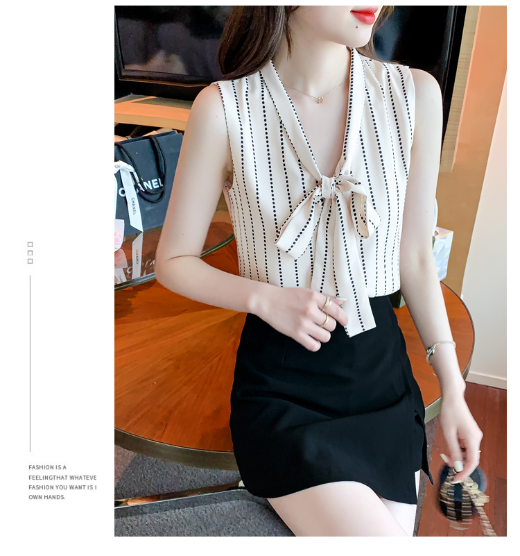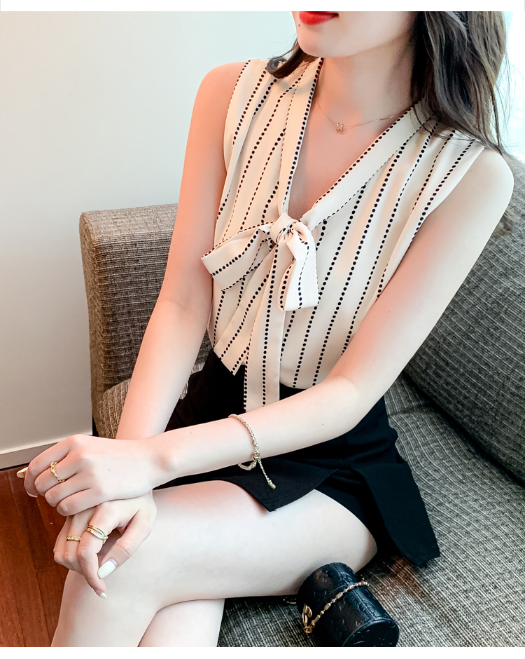 限量特惠|知性豎條紋繫帶雪紡衫(03H3327)