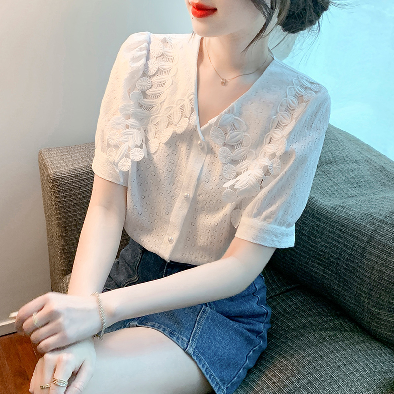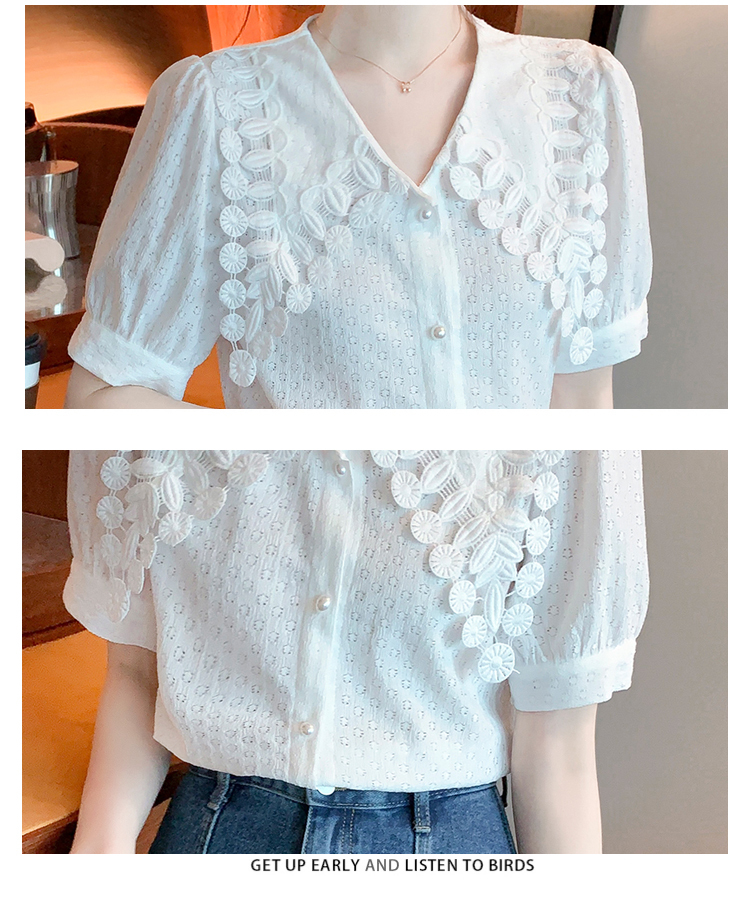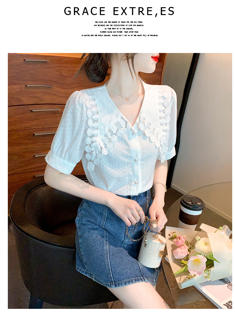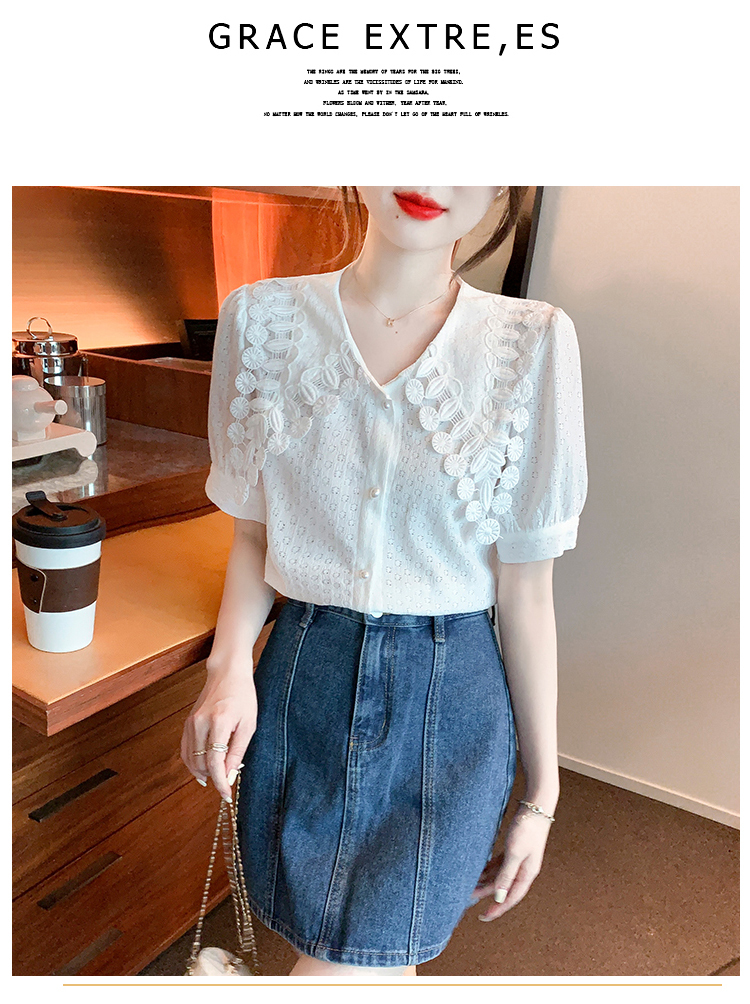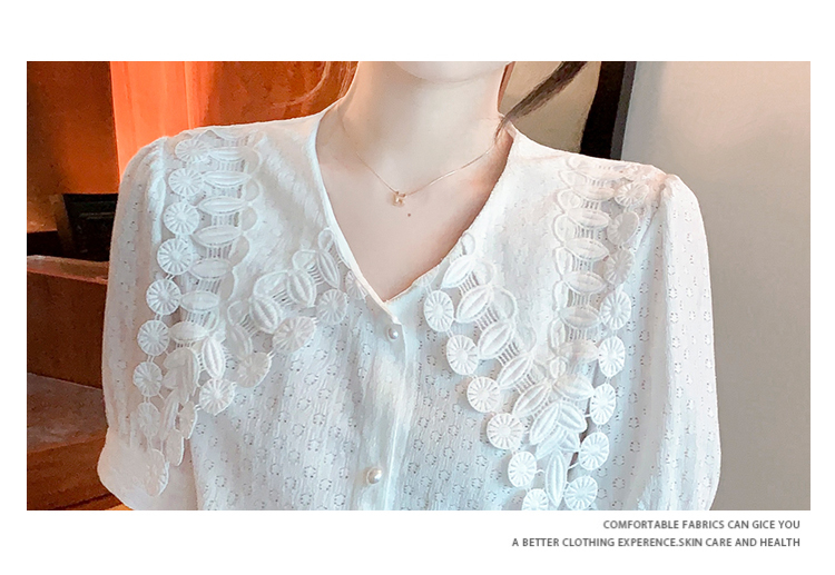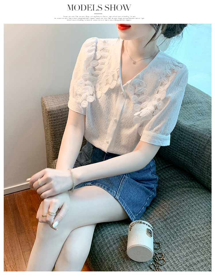 限量特惠|氣質知性花邊翻領微縷空襯衫(03H3339)