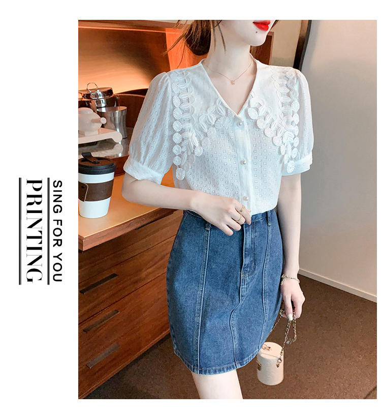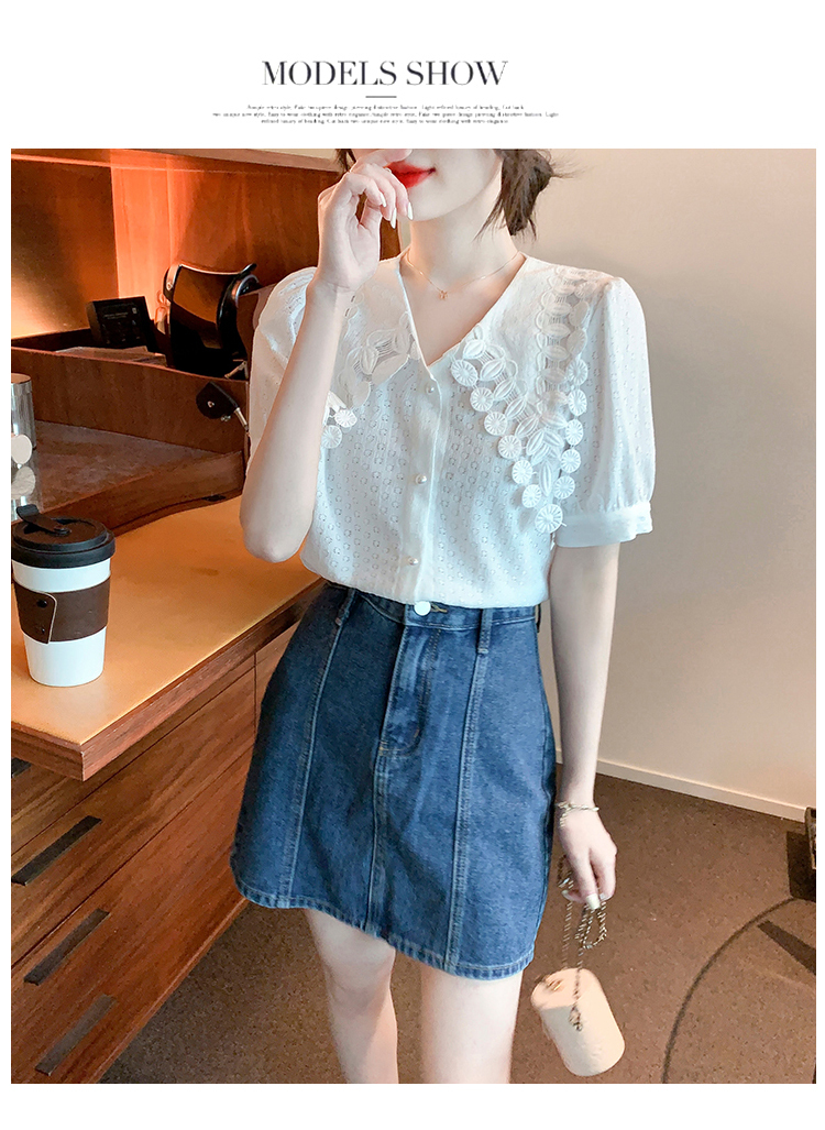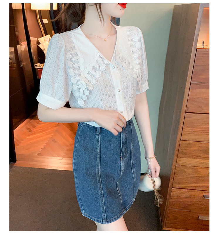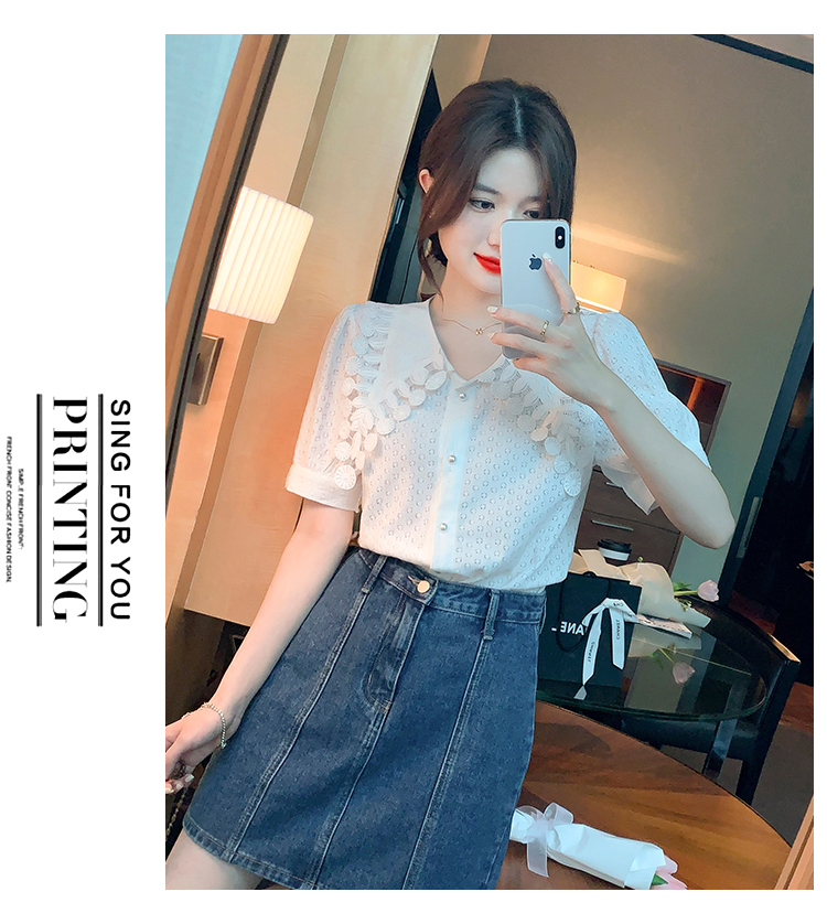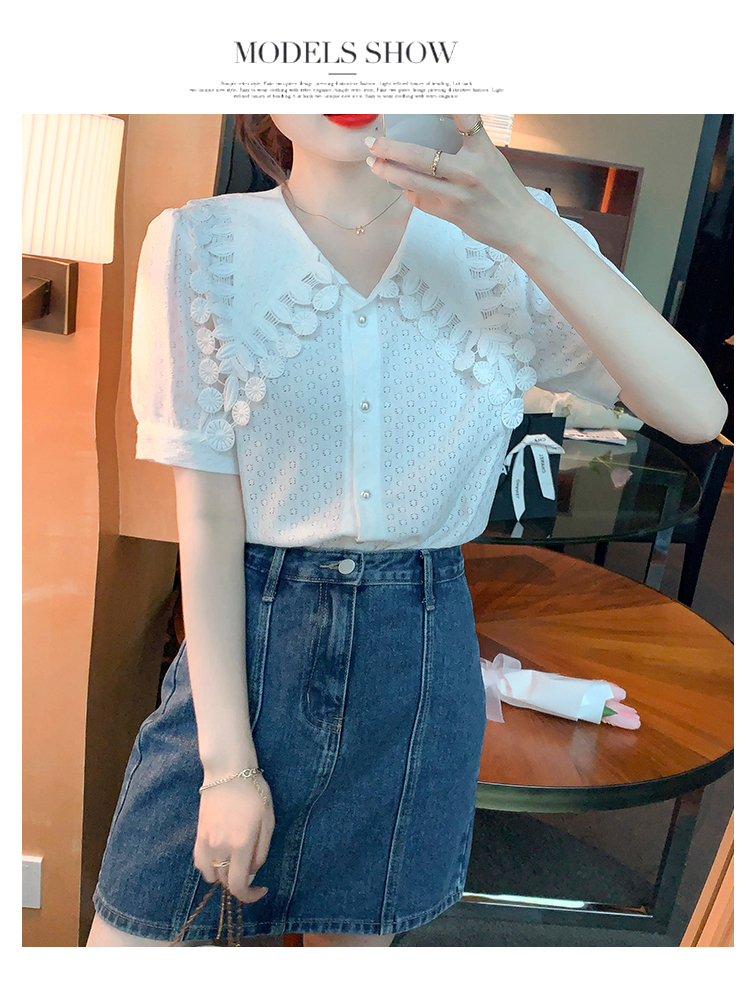 限量特惠|氣質知性花邊翻領微縷空襯衫(03H3339)
