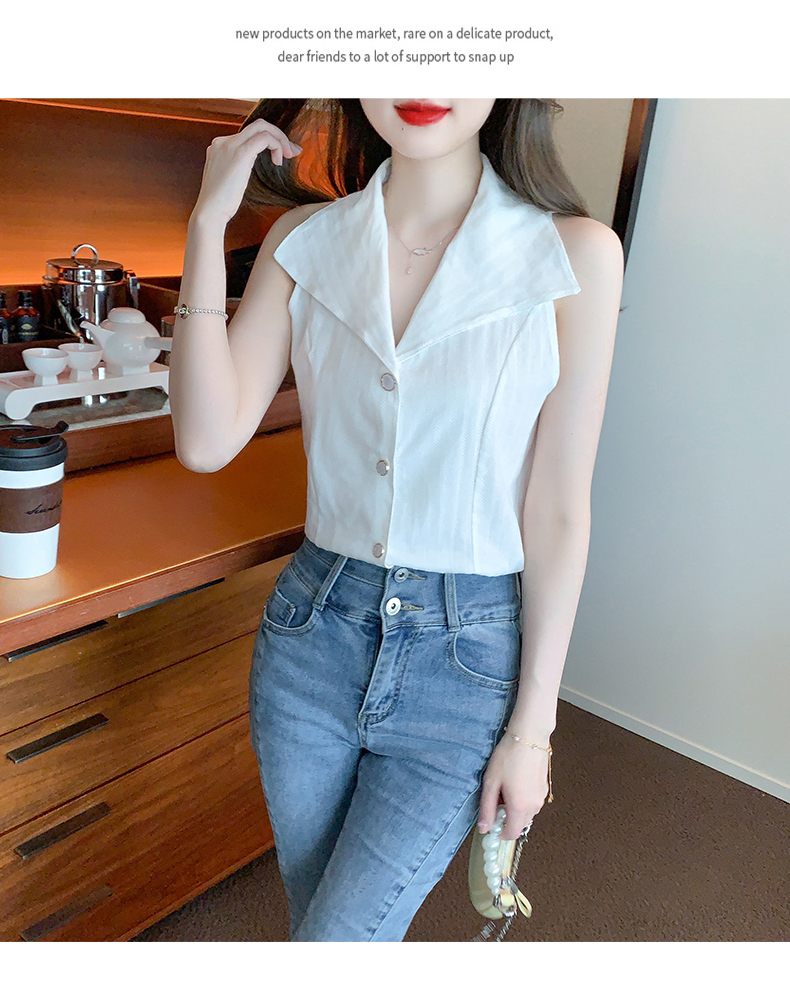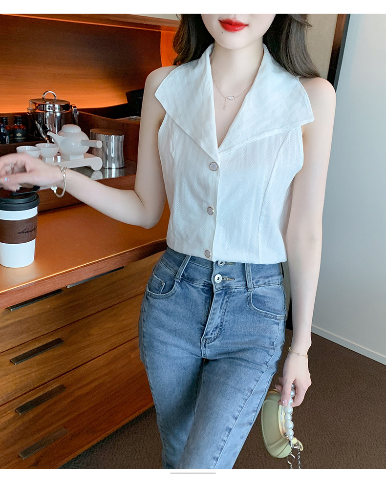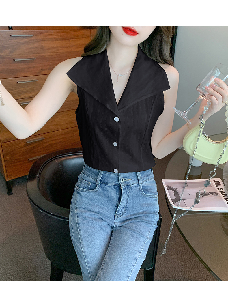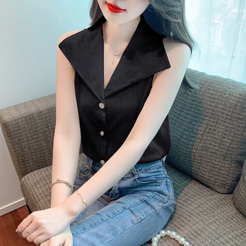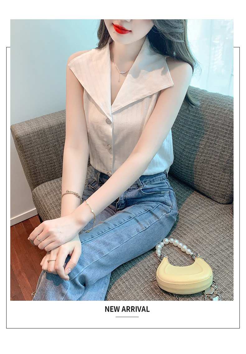 限量特惠|個性舒適大翻領無袖襯衫-2色(03H3347)