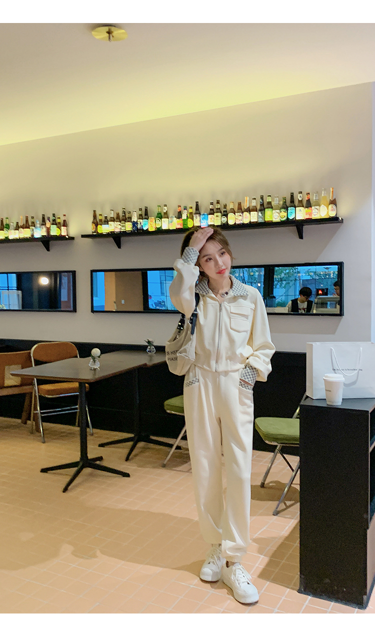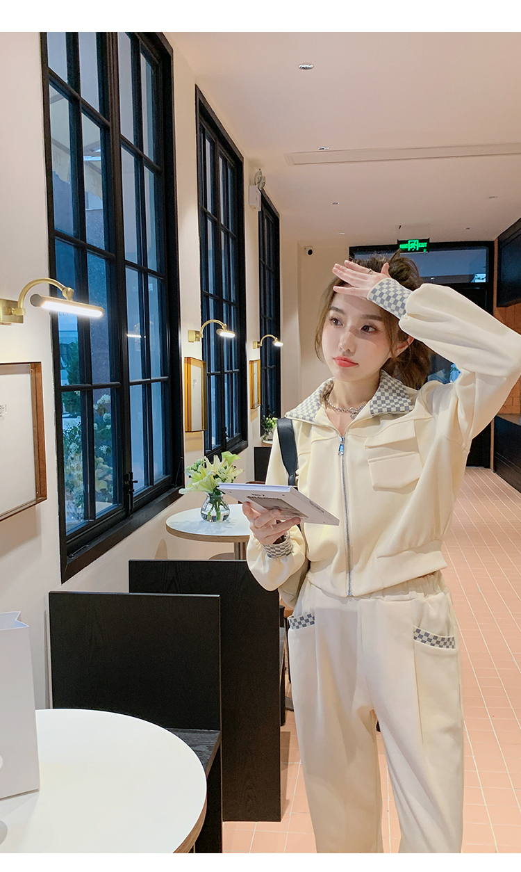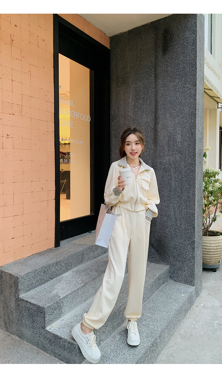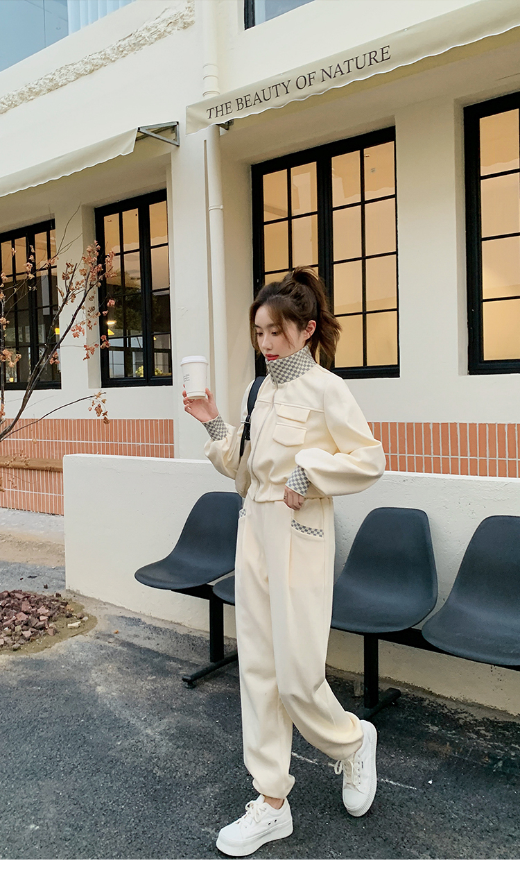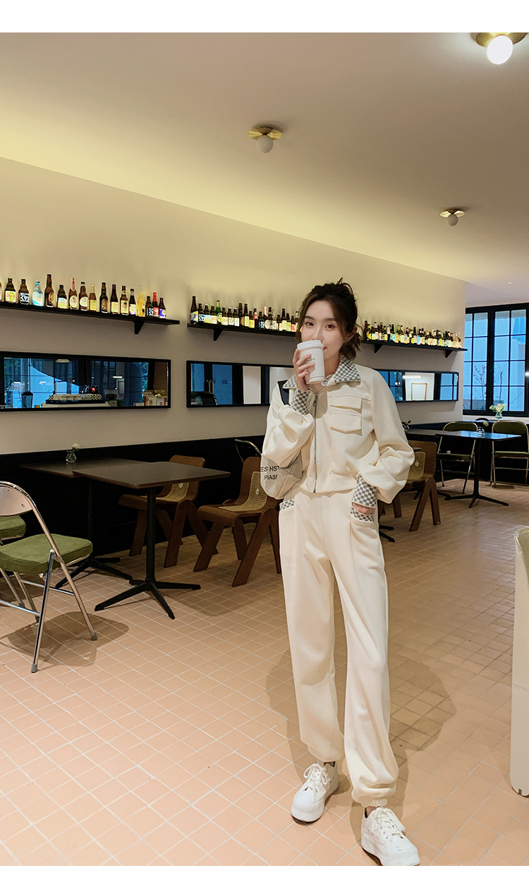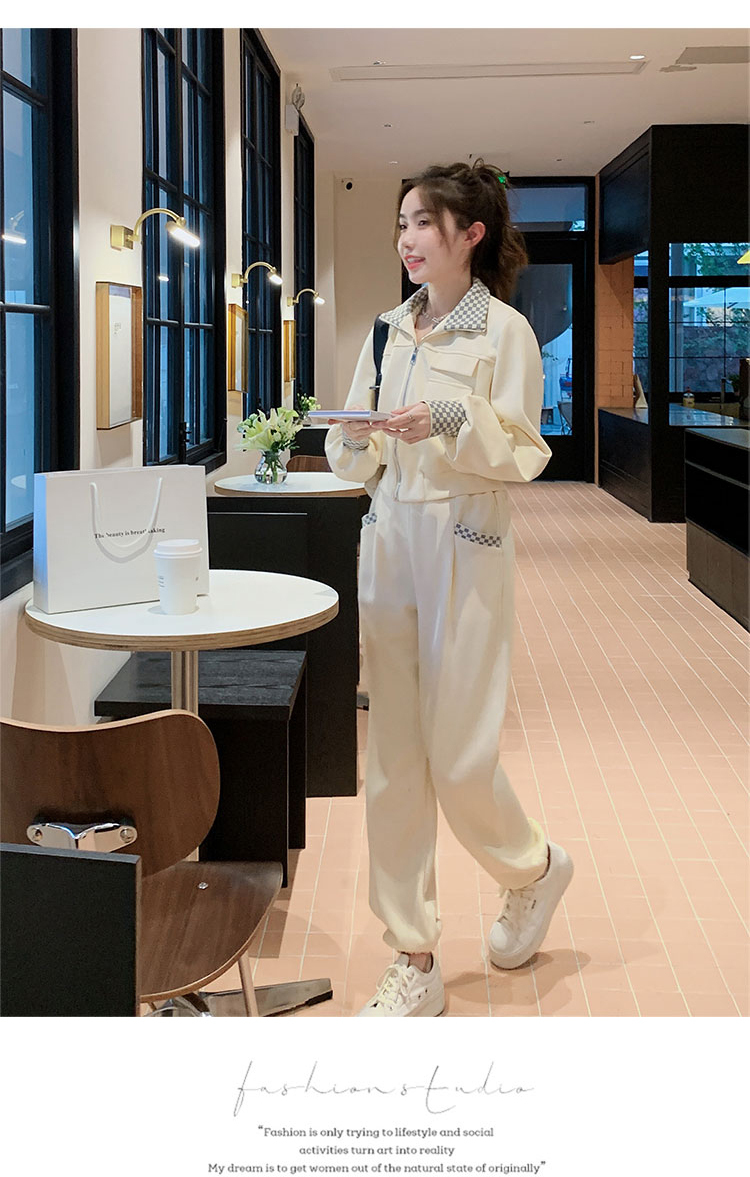 獨家訂製│韓系休閒感格紋翻領外套+休閒褲兩件式套裝組-2色(03H6032)