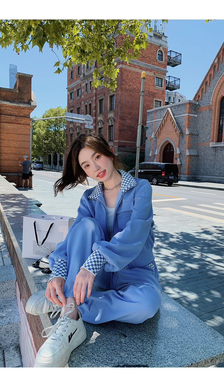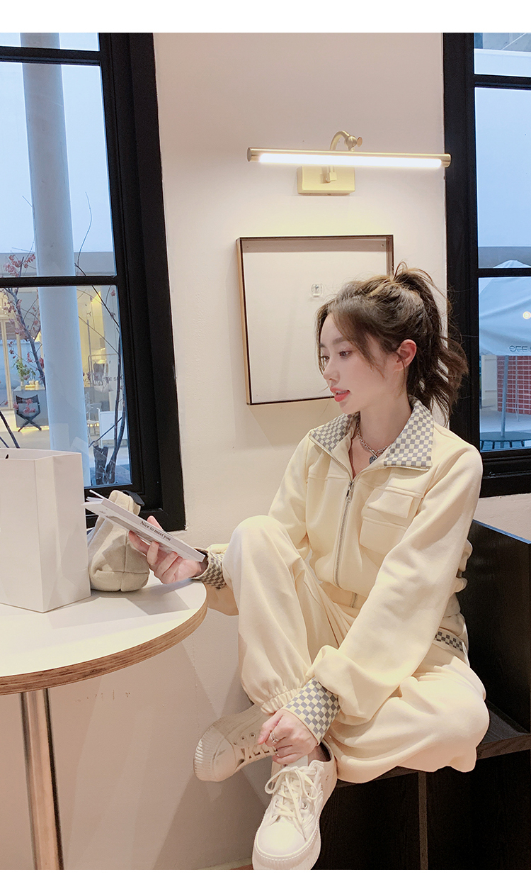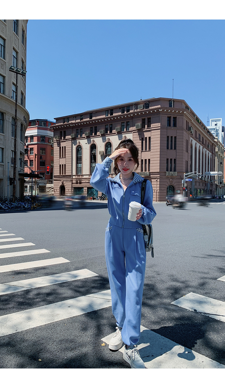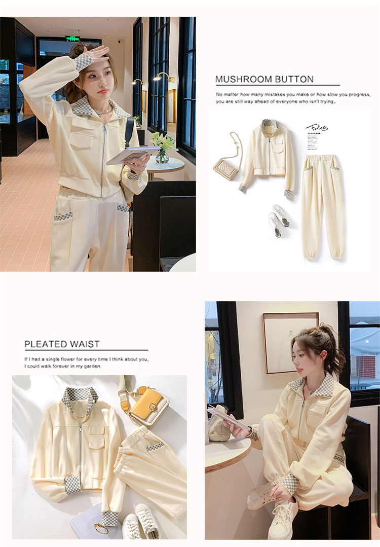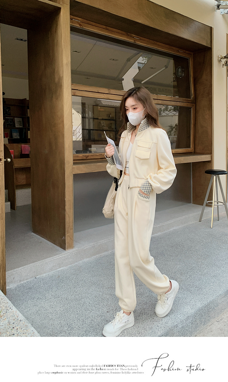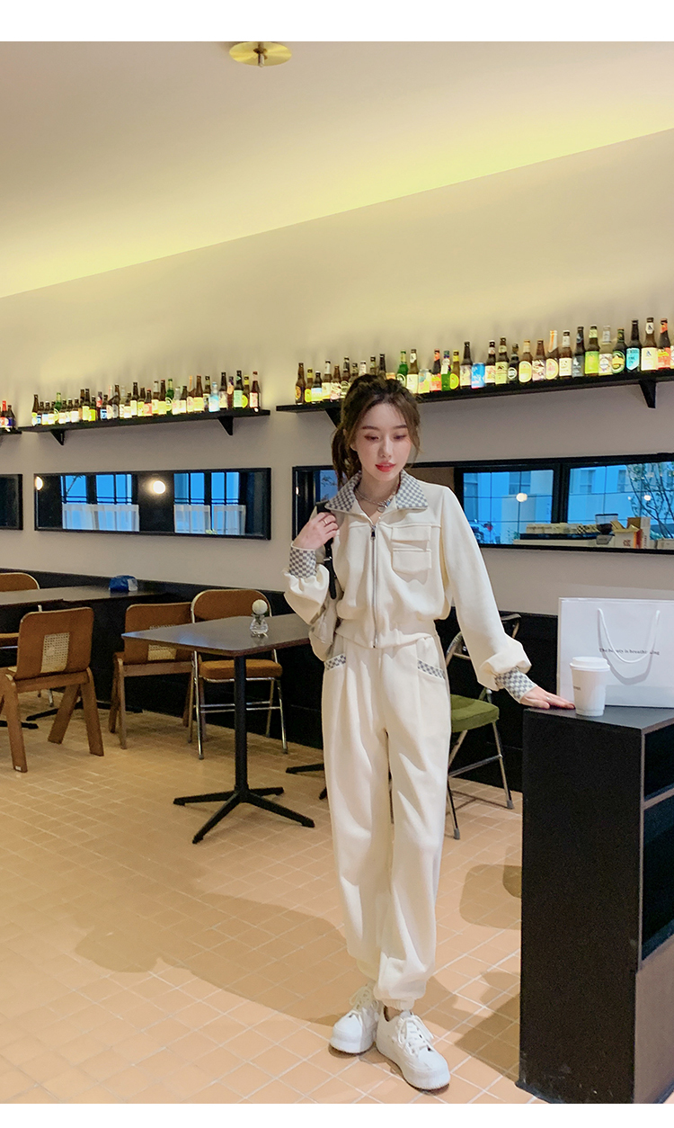 獨家訂製│韓系休閒感格紋翻領外套+休閒褲兩件式套裝組-2色(03H6032)