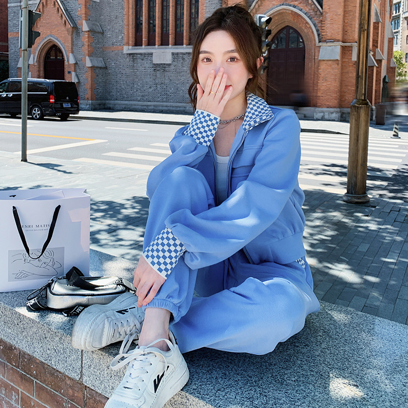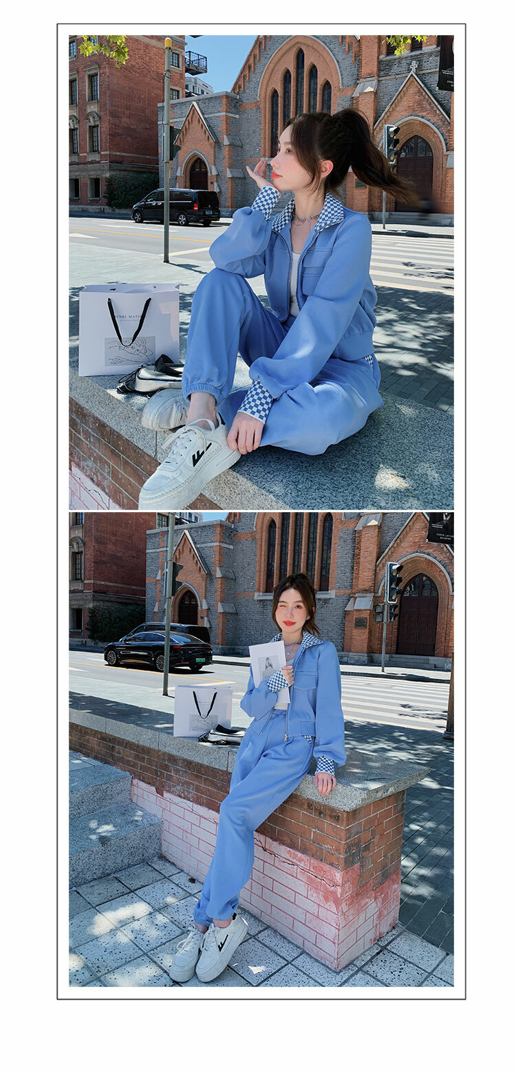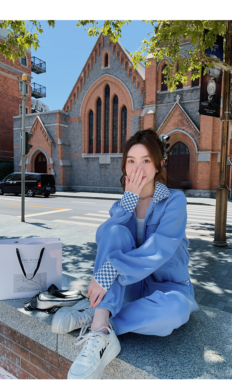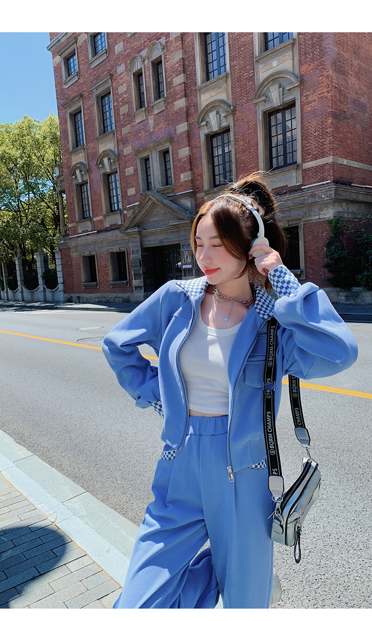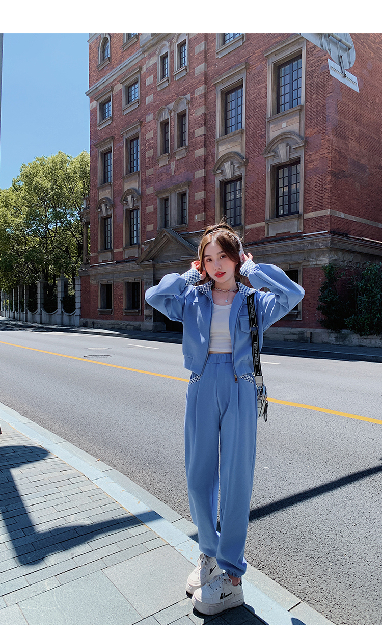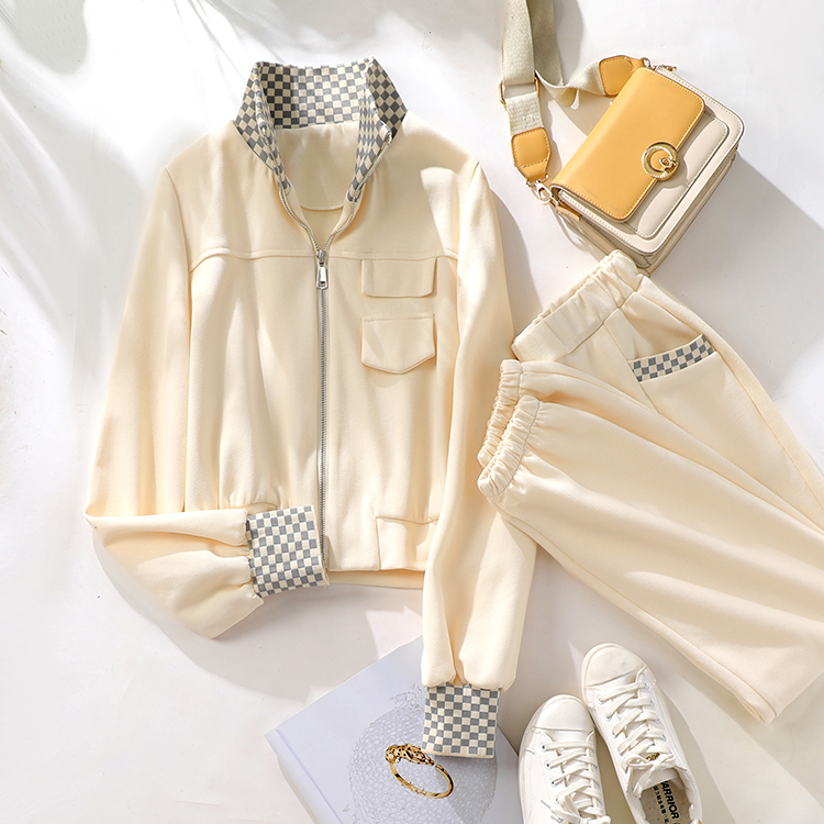 獨家訂製│韓系休閒感格紋翻領外套+休閒褲兩件式套裝組-2色(03H6032)