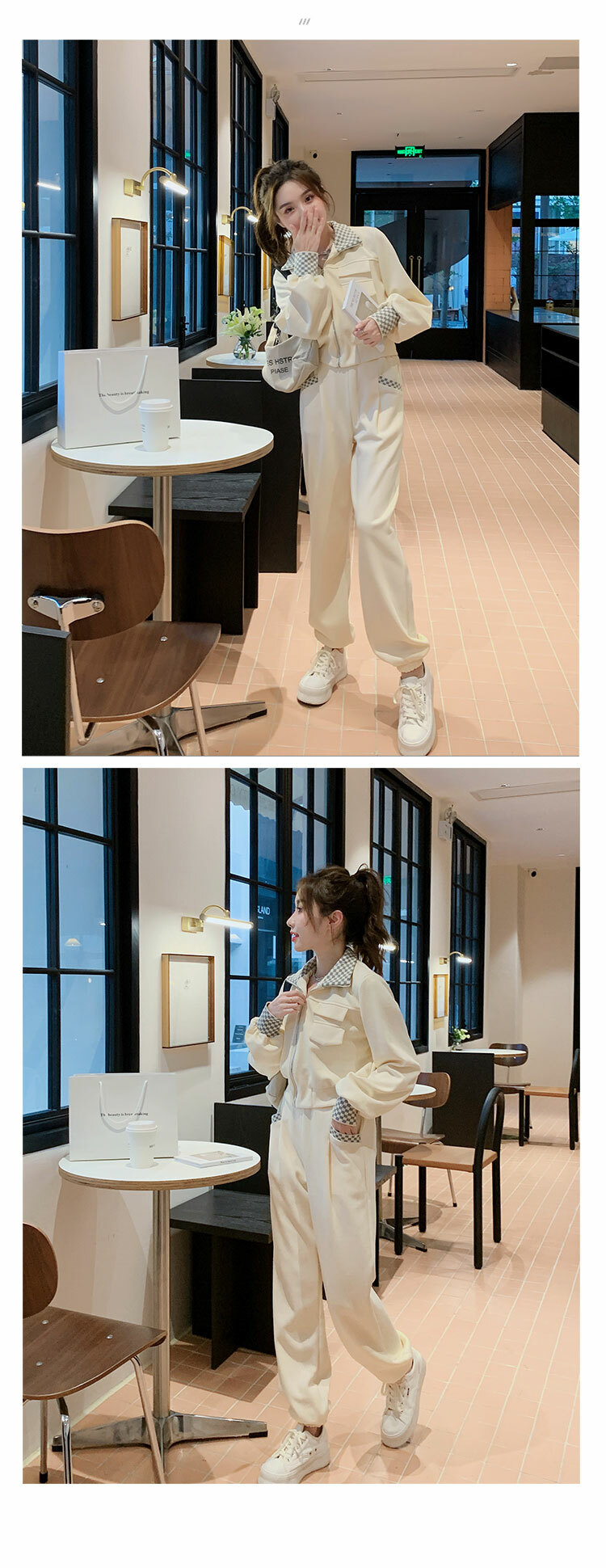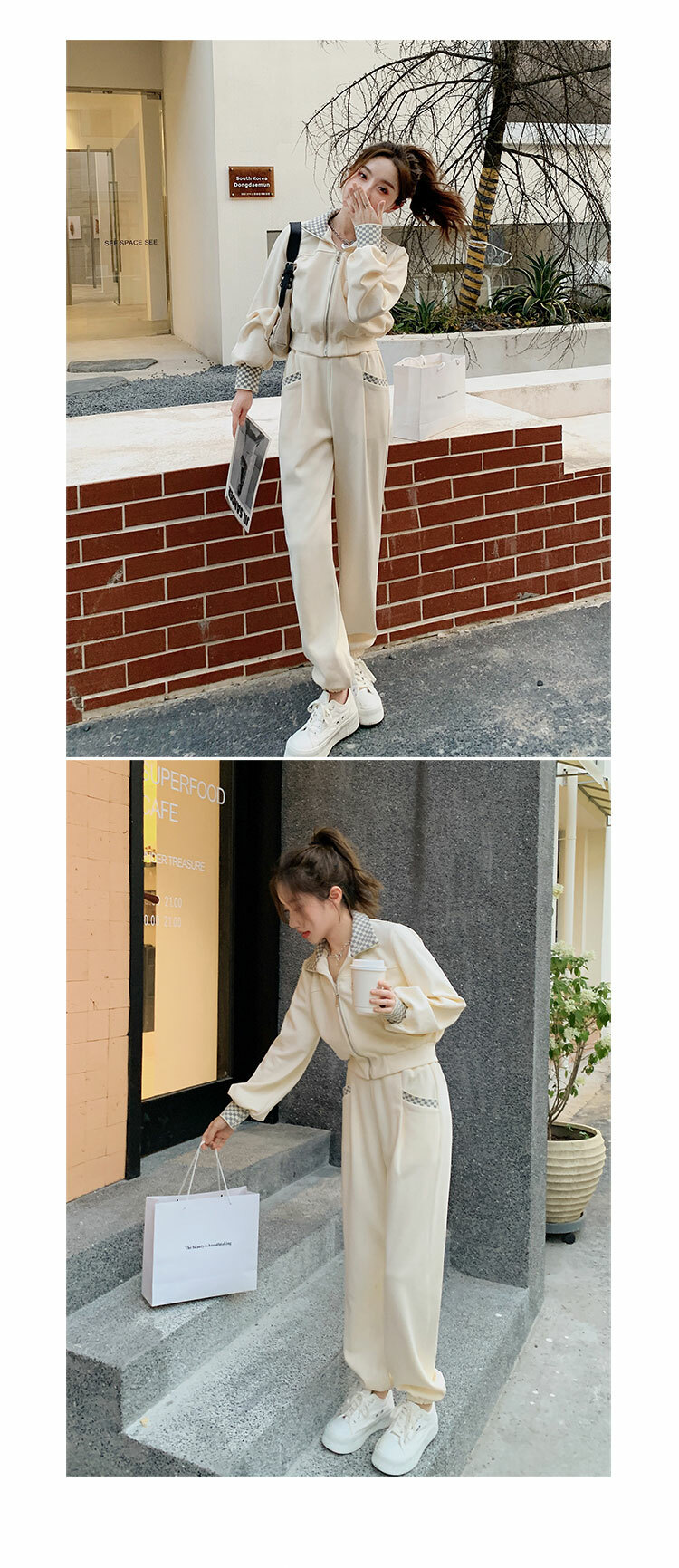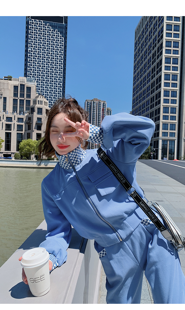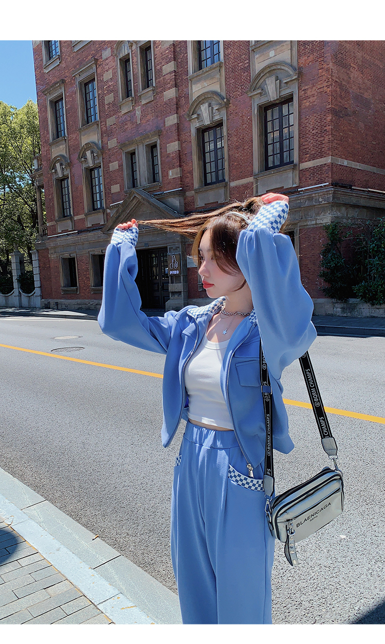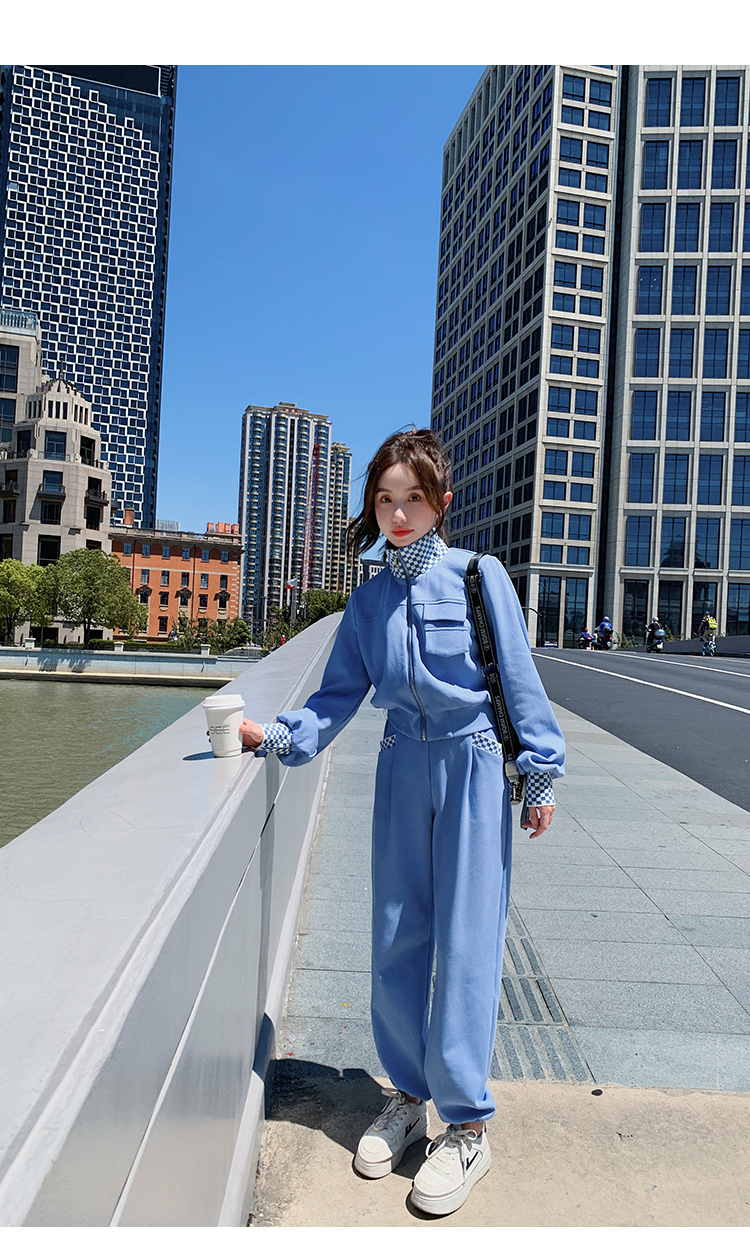 獨家訂製│韓系休閒感格紋翻領外套+休閒褲兩件式套裝組-2色(03H6032)